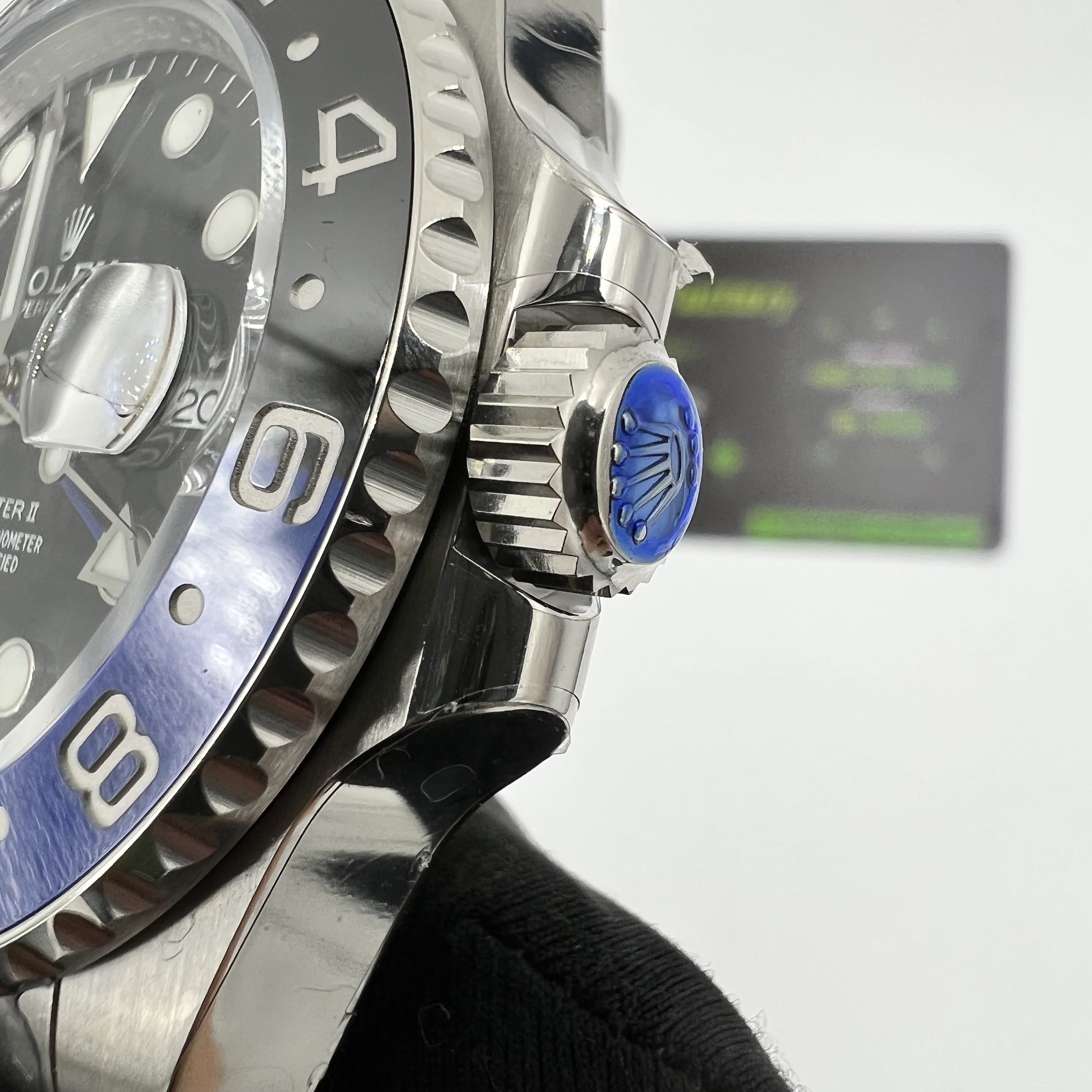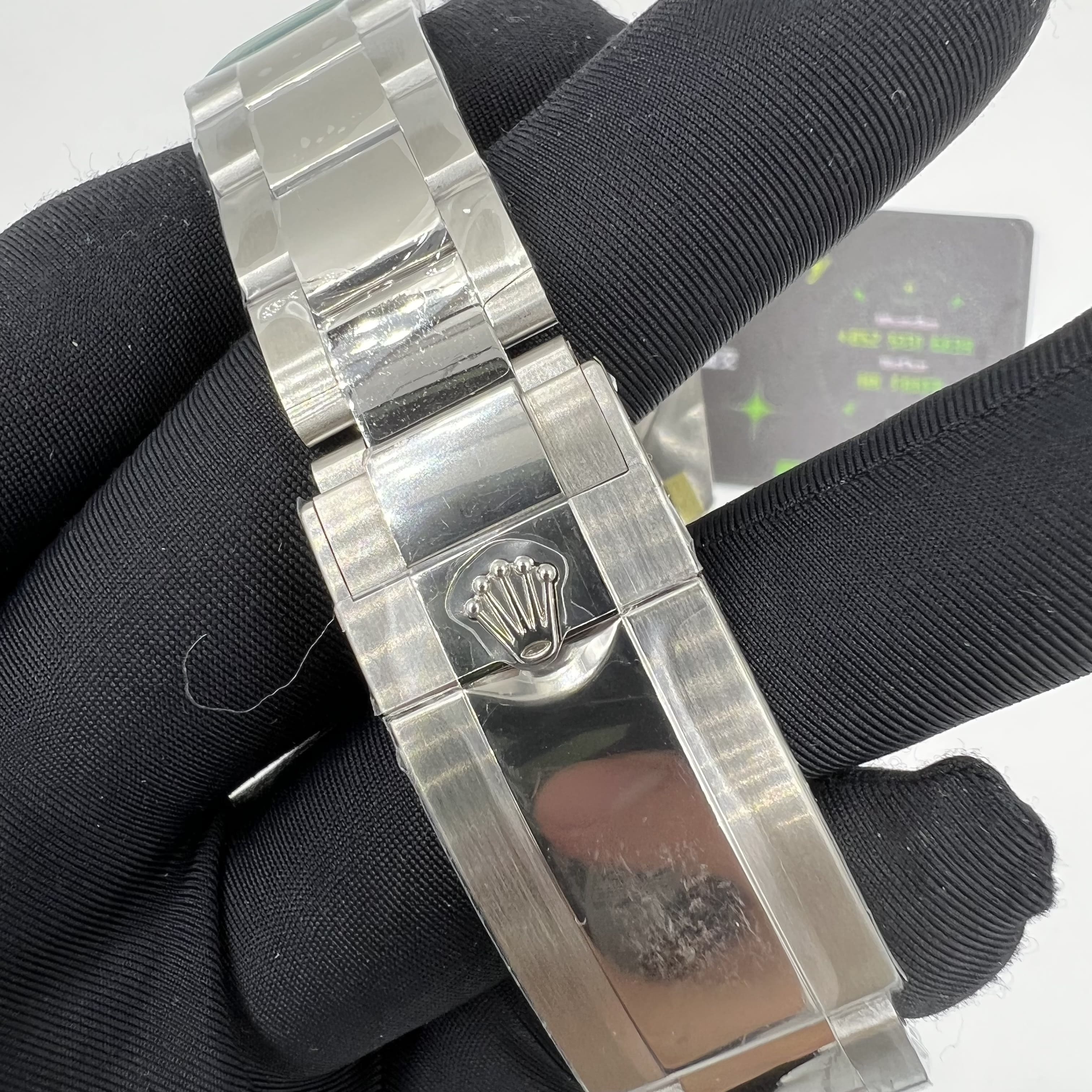 然後拉出一檔的功能是調教最短的時針,通過調教時針每轉動到12點過後日曆顯示也會隨著變動,丹東3285機芯是還原了順跳日曆,同步勞力士原版的日曆組成.然後再拔出到最外面的檔位,這個檔位是調教GMT指針和分針.GMT指針通常為彩色部分,以紅色或者綠色為主.可以看到GMT的圈口為雙色陶瓷圈口材質,Clean廠做的陶瓷圈口基本上不用多說了,你能找到比C廠勞力士做的好廠家,也就只有C廠的工藝能夠還原正品圈口.