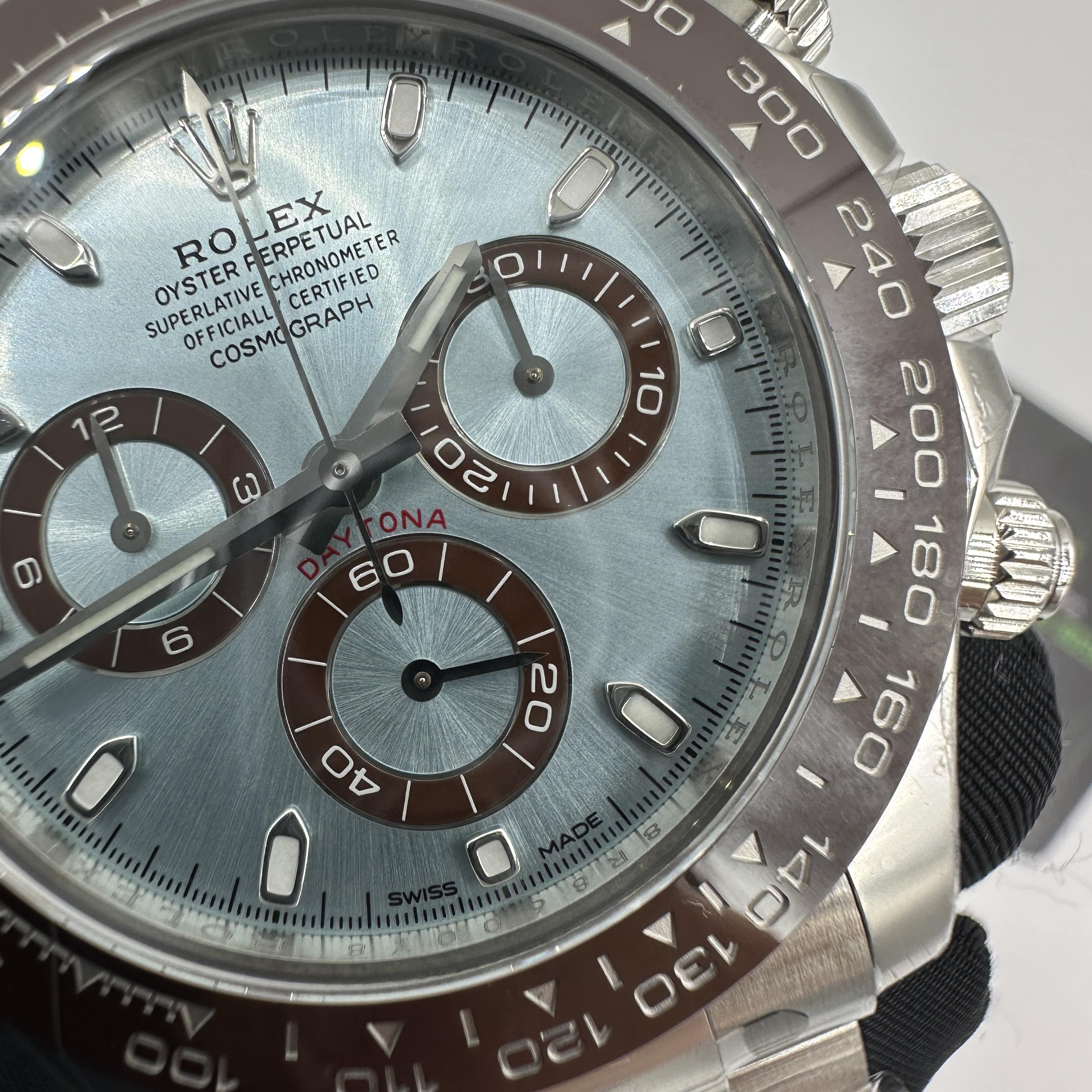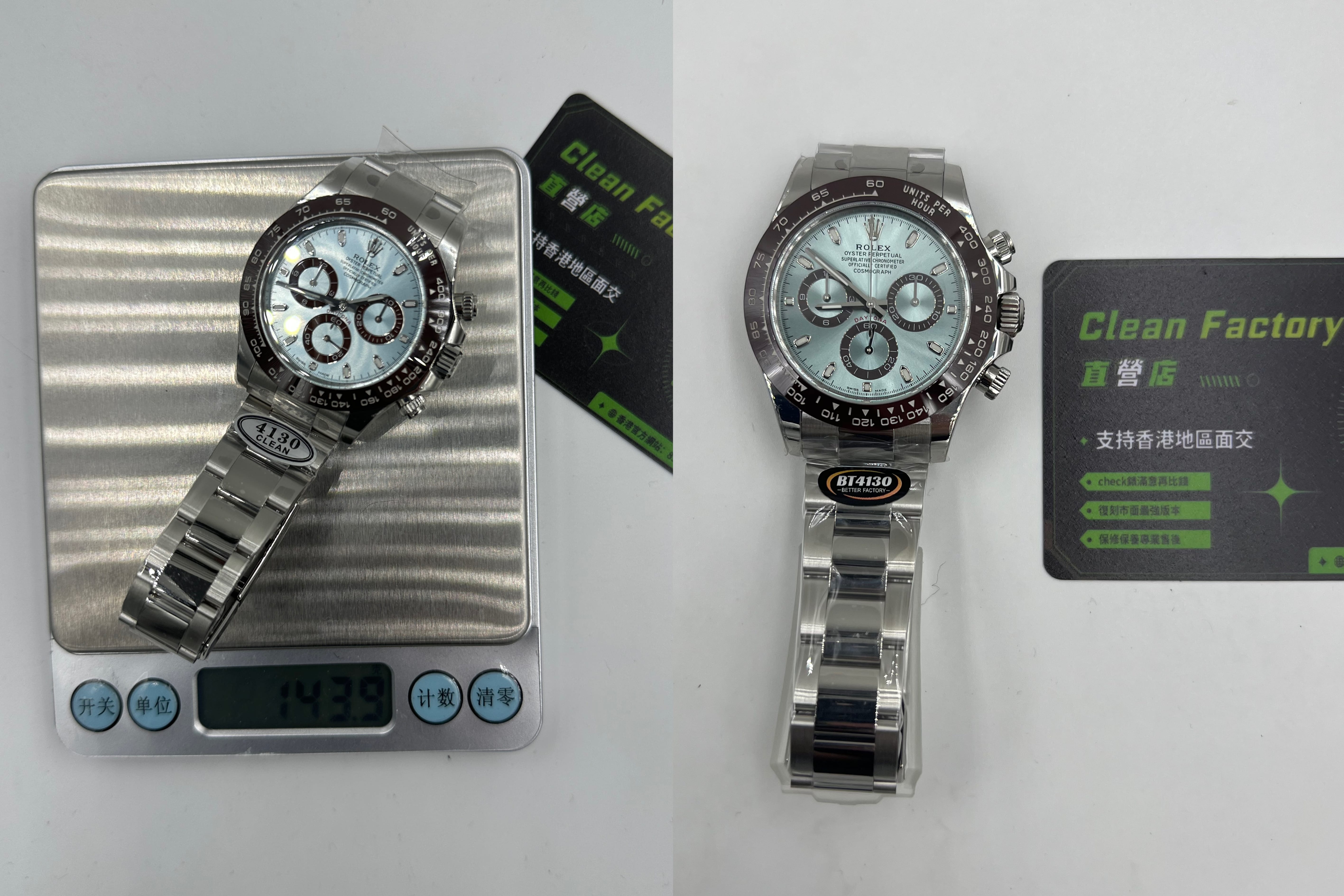 說到丹東4130機芯,為什麼C廠BT廠分別都會有同樣的機芯配置?這個故事說來話長,還要追溯到前5年前的時間段,是由N廠倒閉後手上有大量的丹東4130機芯,當時這一枚機芯是高仿Daytona最強且擁有超強穩定性的機芯配置,不僅還原正品機芯72小時續航動力,同時對於Daytona腕錶計時功能也是百分百能夠實現還原.