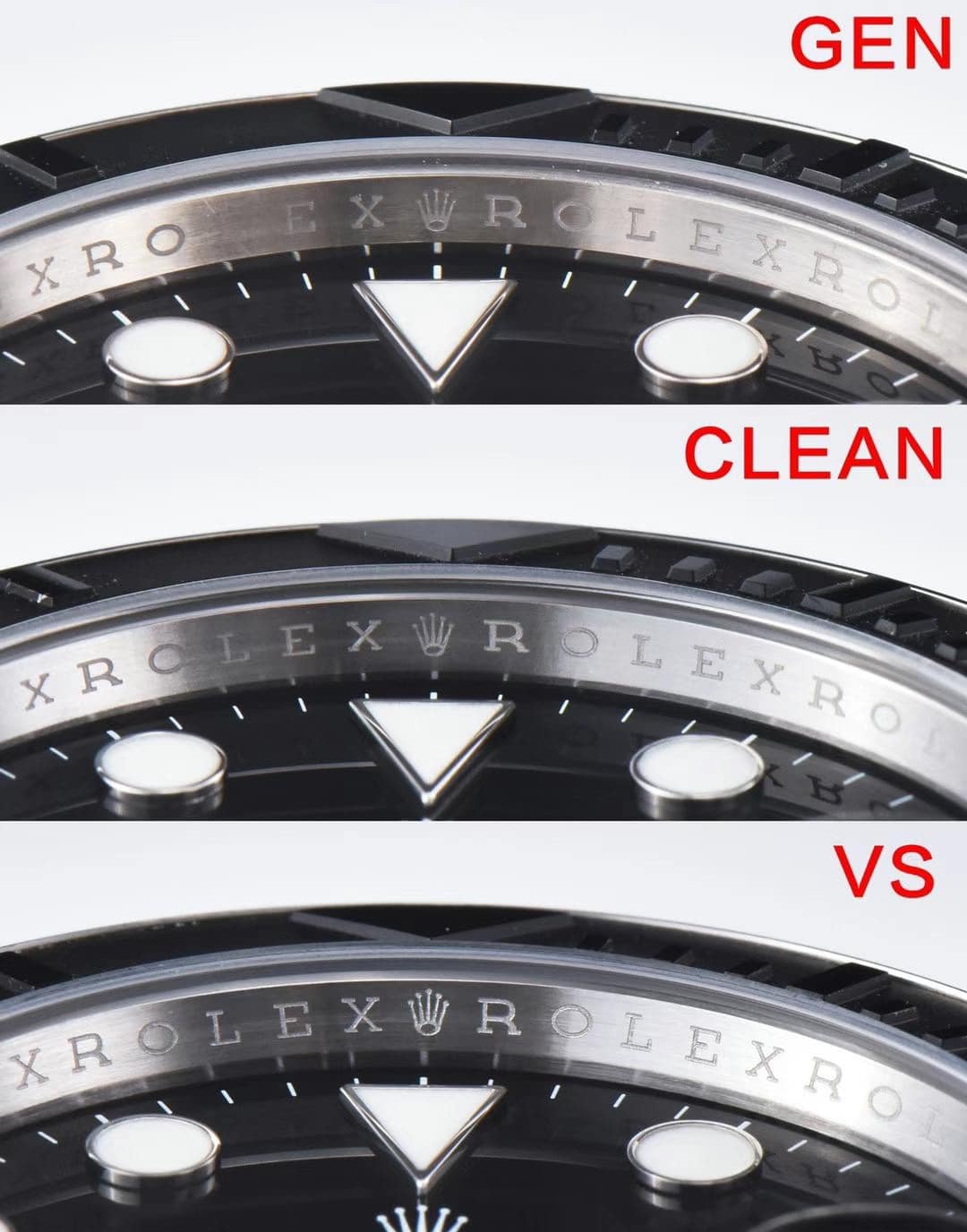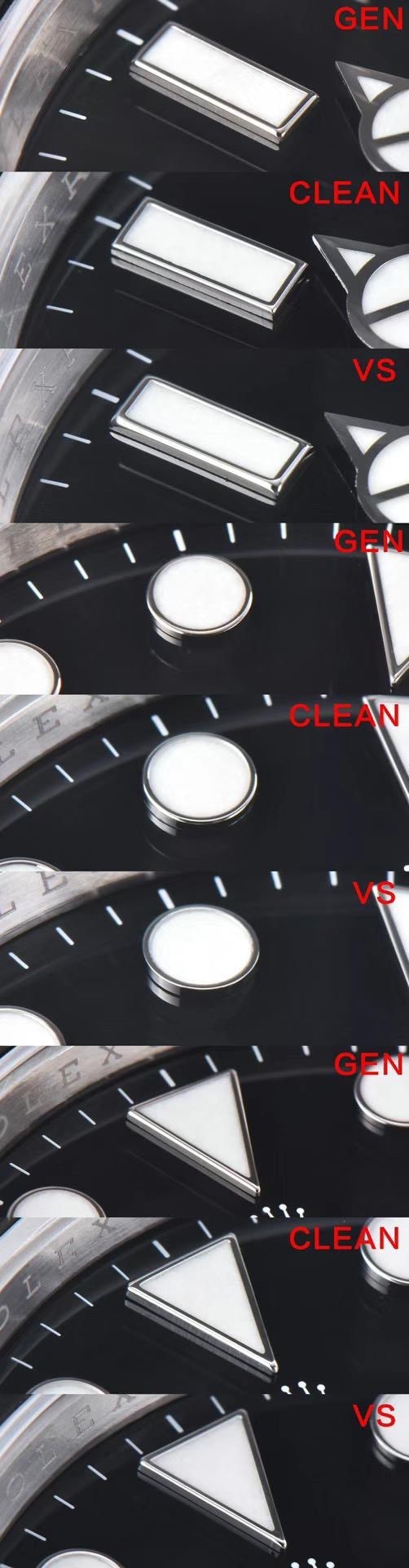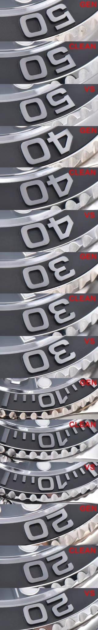 Clean厂劳力士游艇42毫米226659白金款係一隻經過全面修正嘅手錶,補充咗其他工廠所存在嘅不足之處。佢裝備咗3235機芯,配備特殊底紋處理嘅黑色凸字陶瓷圈,為您呈現獨特嘅風格同品質。而家,就嚟對比下Clean厂同VS工廠嘅42毫米226659白金遊艇手錶。我哋進行咗Genuine、Clean厂同VS工廠嘅YM對比攝影,發現咗一啲區別。首先,喺表殼形狀同齒圈打磨方面,Clean厂相對於原裝更加細緻,工藝處理更為精細。Clean厂注重每個細節嘅精確度,確保表殼嘅形狀同原裝相符,齒圈嘅打磨亦更加光滑細緻,呈現出高品質嘅外觀。