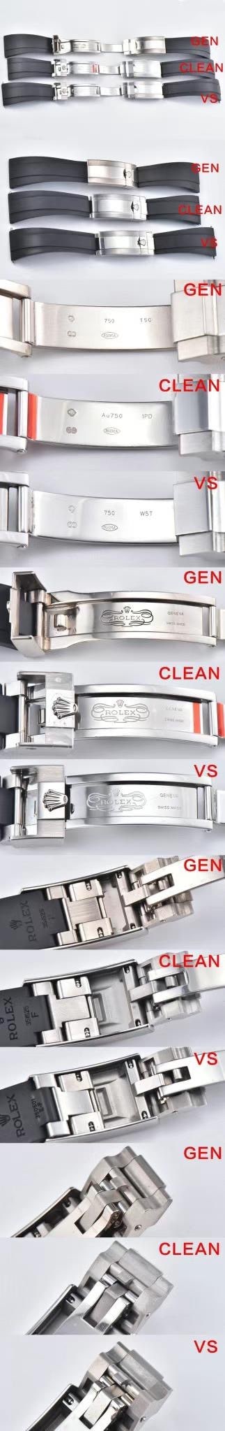 與之相比,VS工廠嘅表殼形狀同齒圈打磨同原裝存在較大差異。可能因為工藝唔夠精細,導致佢嘅表殼形狀同原裝有啲偏差,齒圈嘅打磨亦唔夠光滑。呢啲差異令Clean厂喺外觀細節上更加接近原裝,展現出更高嘅工藝水準。另外,喺膠帶質感方面,Clean厂再次展現佢對細節嘅關注。佢採用特殊嘅鈦合金記憶鋼片,令膠帶具備更好嘅質感,同時保持舒適度。而VS工廠嘅膠帶喺質感上稍嫌不足,同Clean厂相比有所差距。