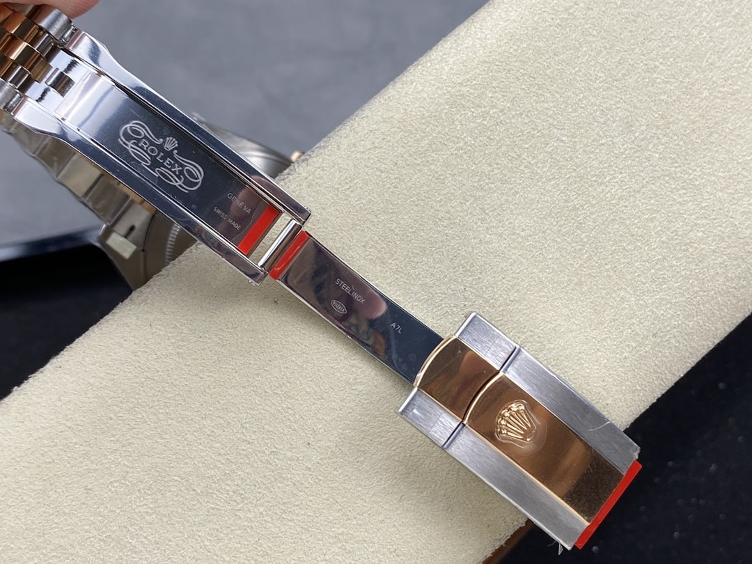 突顯Clean廠Datejust間金優勢的是散件電鍍有效保留電鍍金色澤,並且做到不漏剛的.在五珠鏈錶帶的還原上是最複雜的,其中五珠鏈存在的縫隙較多,一般小廠家並非是散件電鍍,做出來的色差大並且也會出現漏鋼的缺陷,這往往是比較劣質的產品.和頂級工廠比對起來,從細節處理到用心製作是無法達到契合的高度品質.