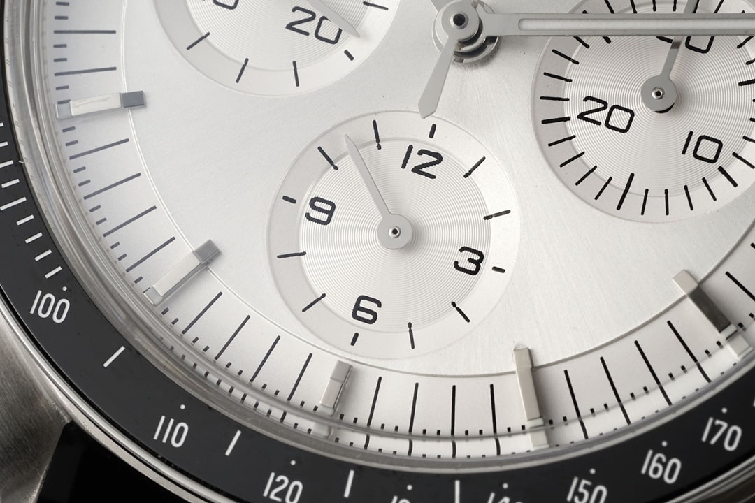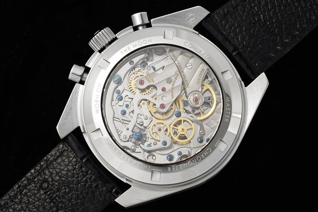 配備了實心中軸,中心點突出的形狀,鏤空狀態與原版一致.三個小圈部分則是正常的兩圈一秒,9點鐘位置的小圈是秒針顯示,其他兩個小圈是正常的計時功能,由右邊3點鐘位置的上下兩個按鍵,擰開之後即可實施計時功能.不過對於歐米茄復刻錶個人不建議太經常使用計時功能,避免機芯的損壞.