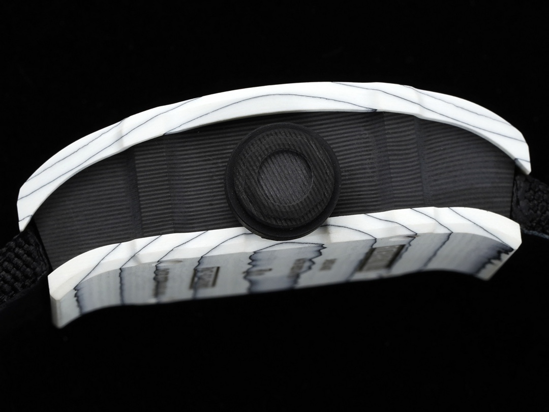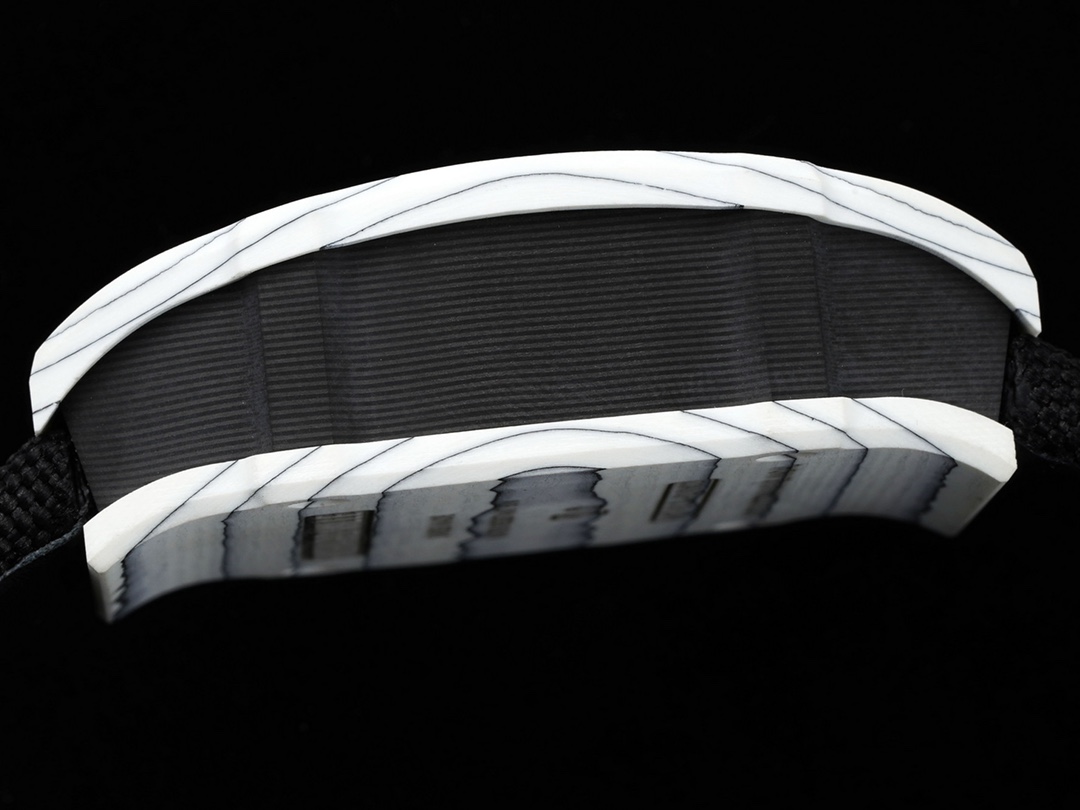 RICHARD MILLE從賽車底盤中得到啟發,將機芯的的鏤空主夾板和錶殼進行「一體化」設計,從而大幅提高抗衝擊能力。 為了讓腕表更輕盈,Richard Mille還與North Thin Ply Technology合作,開發出堅硬耐磨的「石英纖維」超輕資料來製作錶殼,整枚錶的重量猶如簿紙,並呈現大馬士革鋼一樣的粗獷紋理。