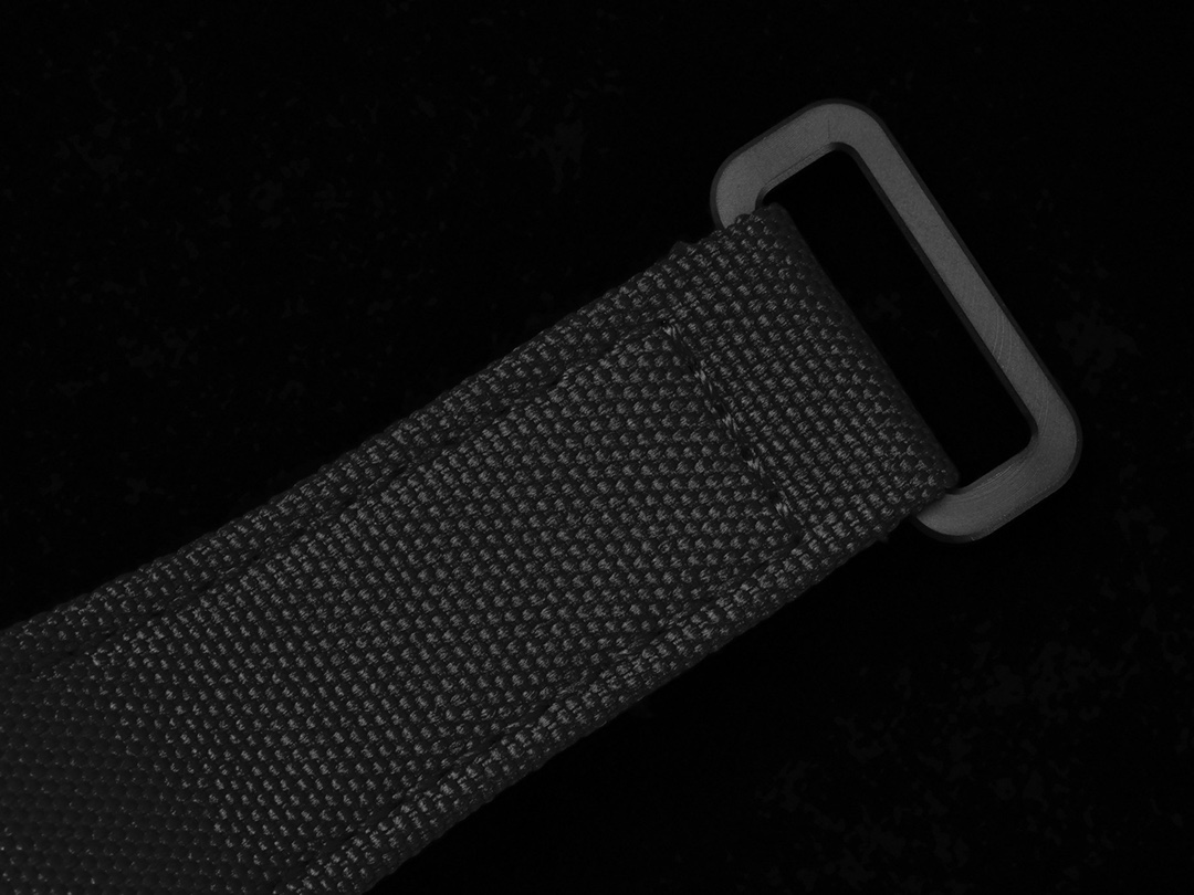 白色錶圈通過12顆五級鈦螺絲與錶殼固定,搭配橙色的錶帶和紅色錶冠,為了提高閱讀辨識性,時分針的末端也用明亮的橙黃色進行強調。