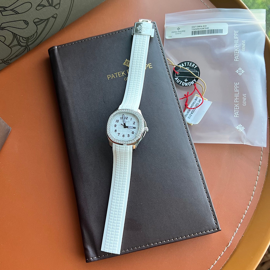 百達翡麗手雷Aquanaut Luce,義大利語“光”,經過重新演繹的現代休閒時尚風格的造型,採用拋光和拉砂CNC雕刻的圓形八角形美感錶殼,擁有優雅的氣質。 點亮它邊框的48顆鑽石,在精鋼與緞面的裝潢下搭配一體成型集合複合錶帶,達其獨特魅力! 搭配以瑞士原裝石英機芯與浮雕圖案字面更是Aquanaut的經典延伸,融合了現代休閒時尚與優雅,啞光珍珠塗層與同色系錶帶相得益彰。 5267-200A鋼配010永恒的馬特白/ 001經典的優雅黑/ 011大膽的卡其綠,搭配38.8mm的全新尺寸更完美貼合手型,獨家定制原最新折疊式錶扣配以四枚獨立鎖扣固定。 認准細節品質