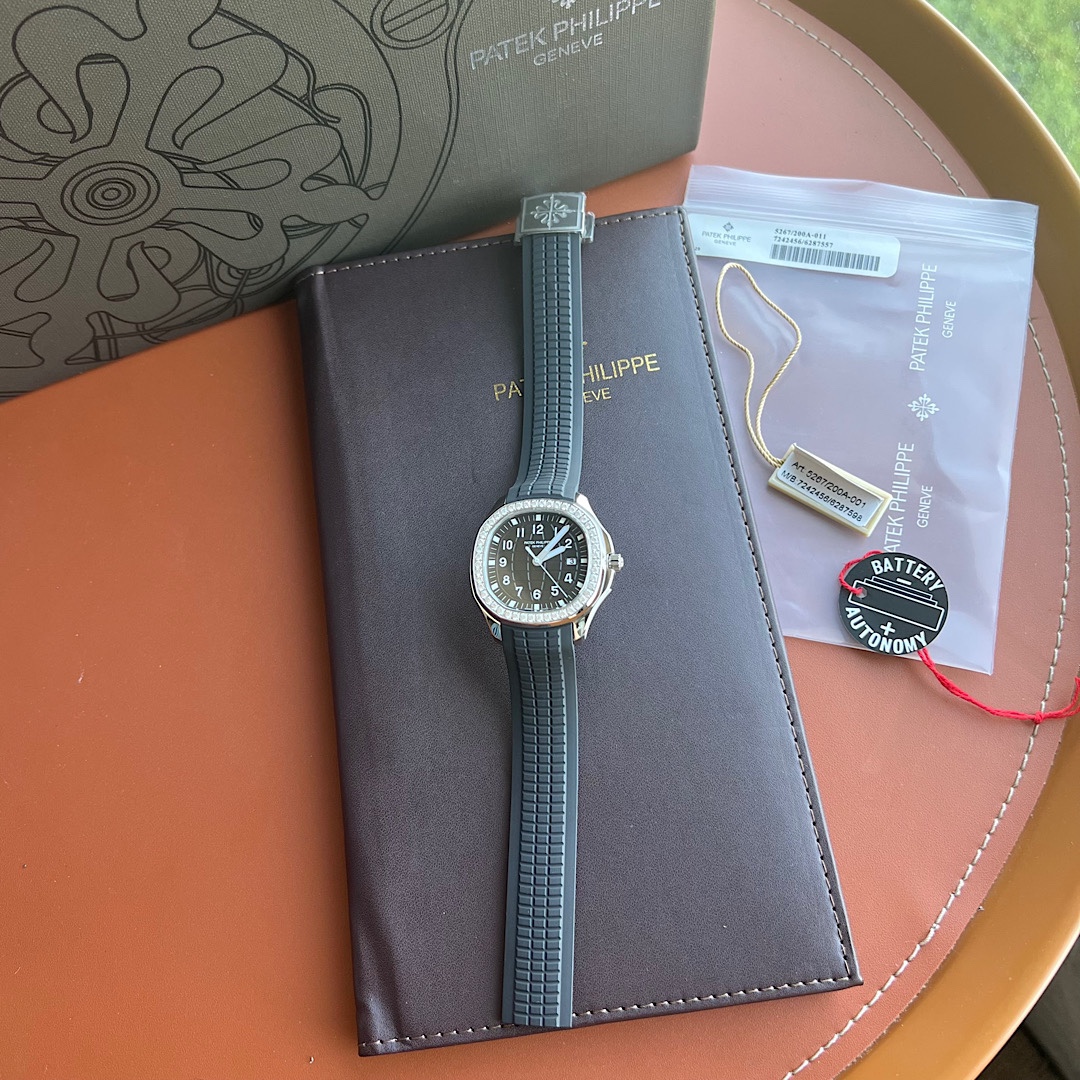 百達翡麗手雷Aquanaut Luce,義大利語“光”,經過重新演繹的現代休閒時尚風格的造型,採用拋光和拉砂CNC雕刻的圓形八角形美感錶殼,擁有優雅的氣質。 點亮它邊框的48顆鑽石,在精鋼與緞面的裝潢下搭配一體成型集合複合錶帶,達其獨特魅力! 搭配以瑞士原裝石英機芯與浮雕圖案字面更是Aquanaut的經典延伸,融合了現代休閒時尚與優雅,啞光珍珠塗層與同色系錶帶相得益彰。 5267-200A鋼配010永恒的馬特白/ 001經典的優雅黑/ 011大膽的卡其綠,搭配38.8mm的全新尺寸更完美貼合手型,獨家定制原最新折疊式錶扣配以四枚獨立鎖扣固定。 認准細節品質