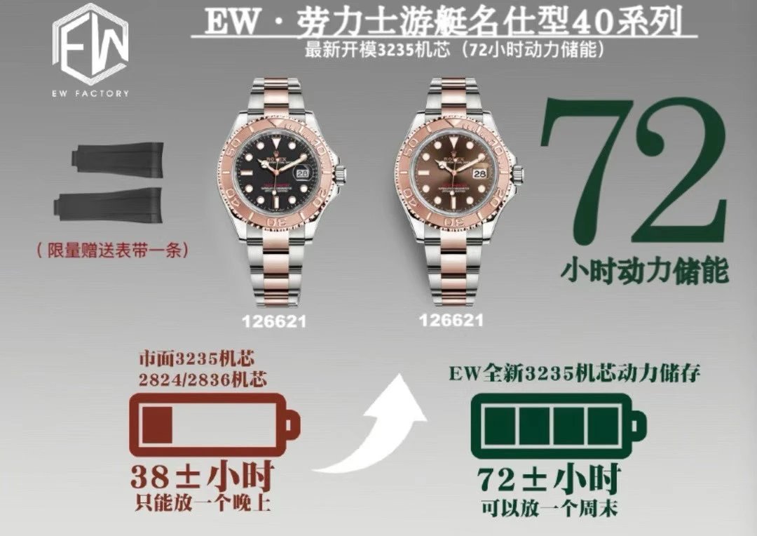EW【匠心之作】最強 勞力士 遊艇名仕型40系列 ①獨家定制3235機芯,動能儲存高達72小時,品質穩定可靠; ②表殼:尺寸厚度原裝一致,厚度僅為11.5(市場版本一眼假); ③字面:頂級瑞士冰藍色夜光,底紋細膩,顏色對版; ④玻璃:藍寶石玻璃搭配2.5倍放大鏡效果,玻璃通透; ⑤鋼帶:904精鋼錶帶,每條錶帶與表耳完美契合,給予手腕最高舒適度; 福利【下單可以獲贈天然橡膠錶帶一副】EW出品,必然精品,每一個極致的細節都是EW工廠匠心開發的誠意;