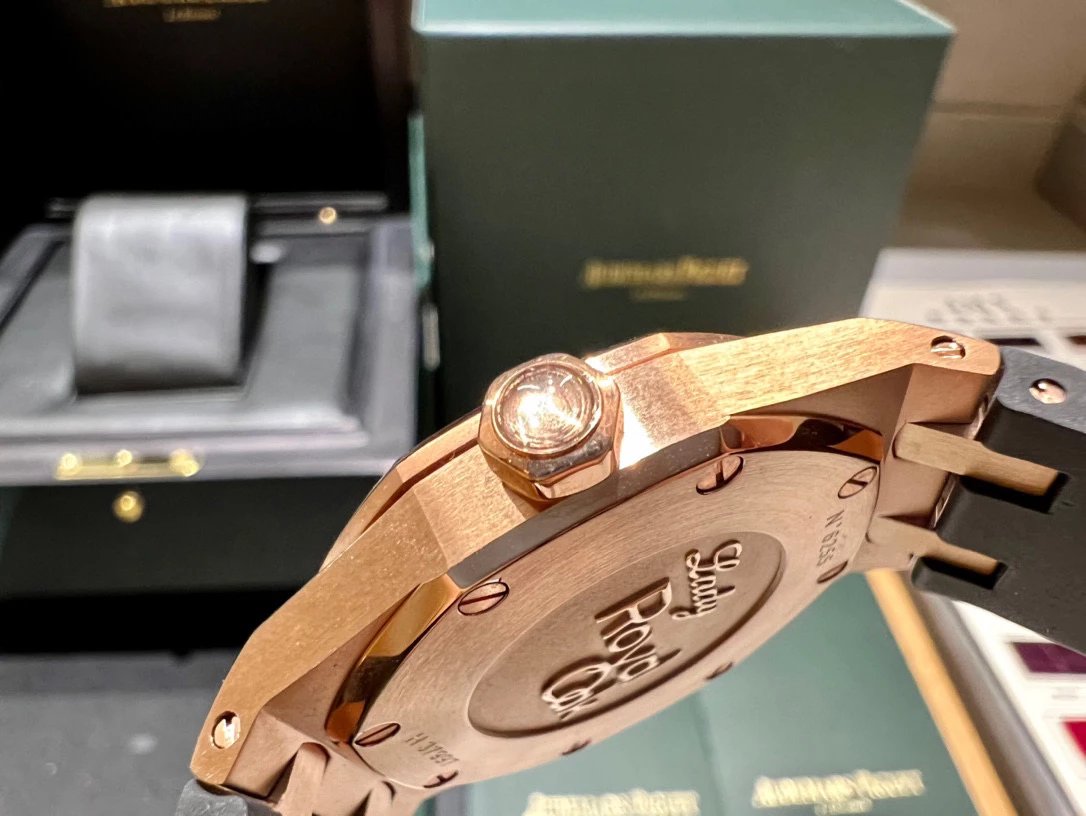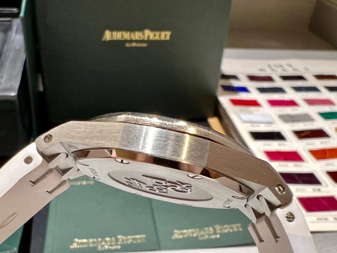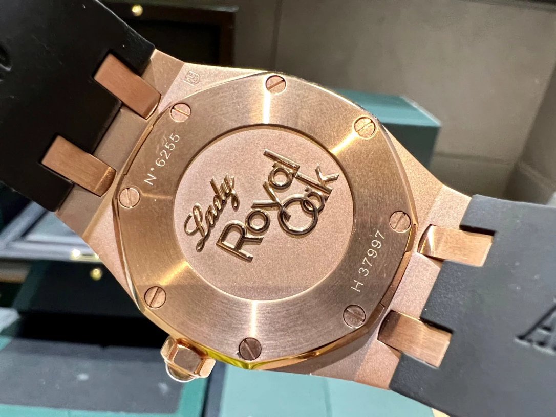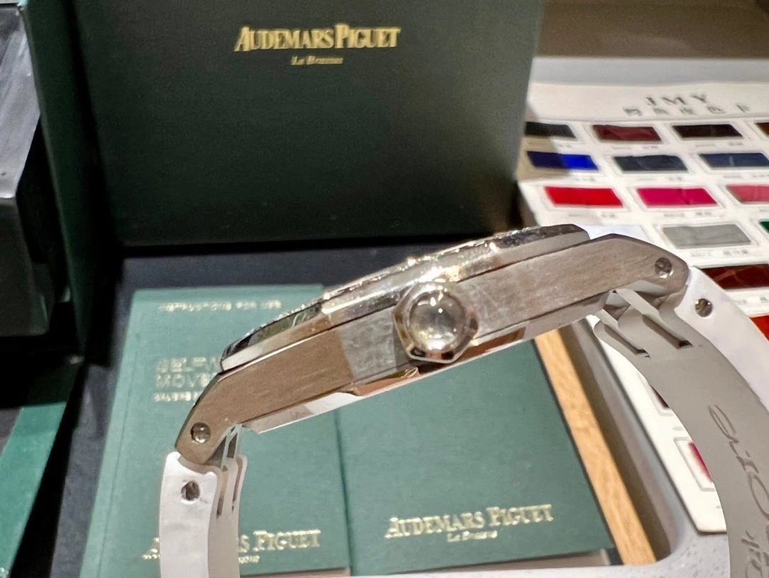 皇家橡樹系列型號67601石英腕表,皇家橡樹系列獨有的八角形外觀還擁有愛彼獨特的設計風格也將女士優雅風格融入其中,深受女明星們的愛戴,即使只有33毫米的小尺寸,也將愛彼獨有的純淨美感與剛毅線條展現的淋漓盡致 而鑲滿鑽石的表圈也為佩戴的女士增添了更多的柔美。巴蒂鑲嵌一枚半透明凸面藍寶石,搭載瑞士進口石英機芯,擁有實用的日曆顯示功能,女士們佩戴起來不會顯得沉重 !這種貨一般數量不是很多哦