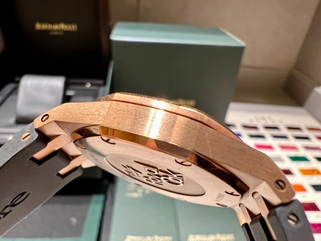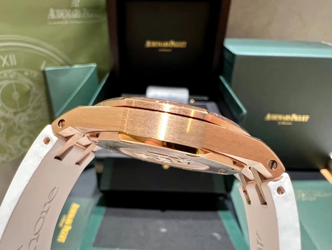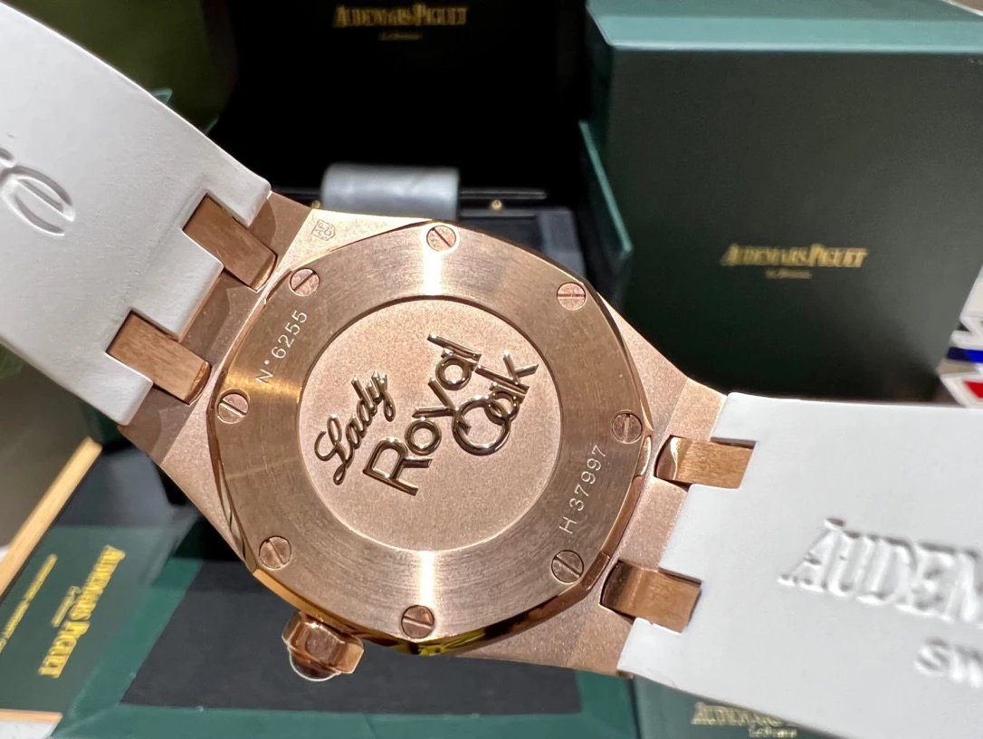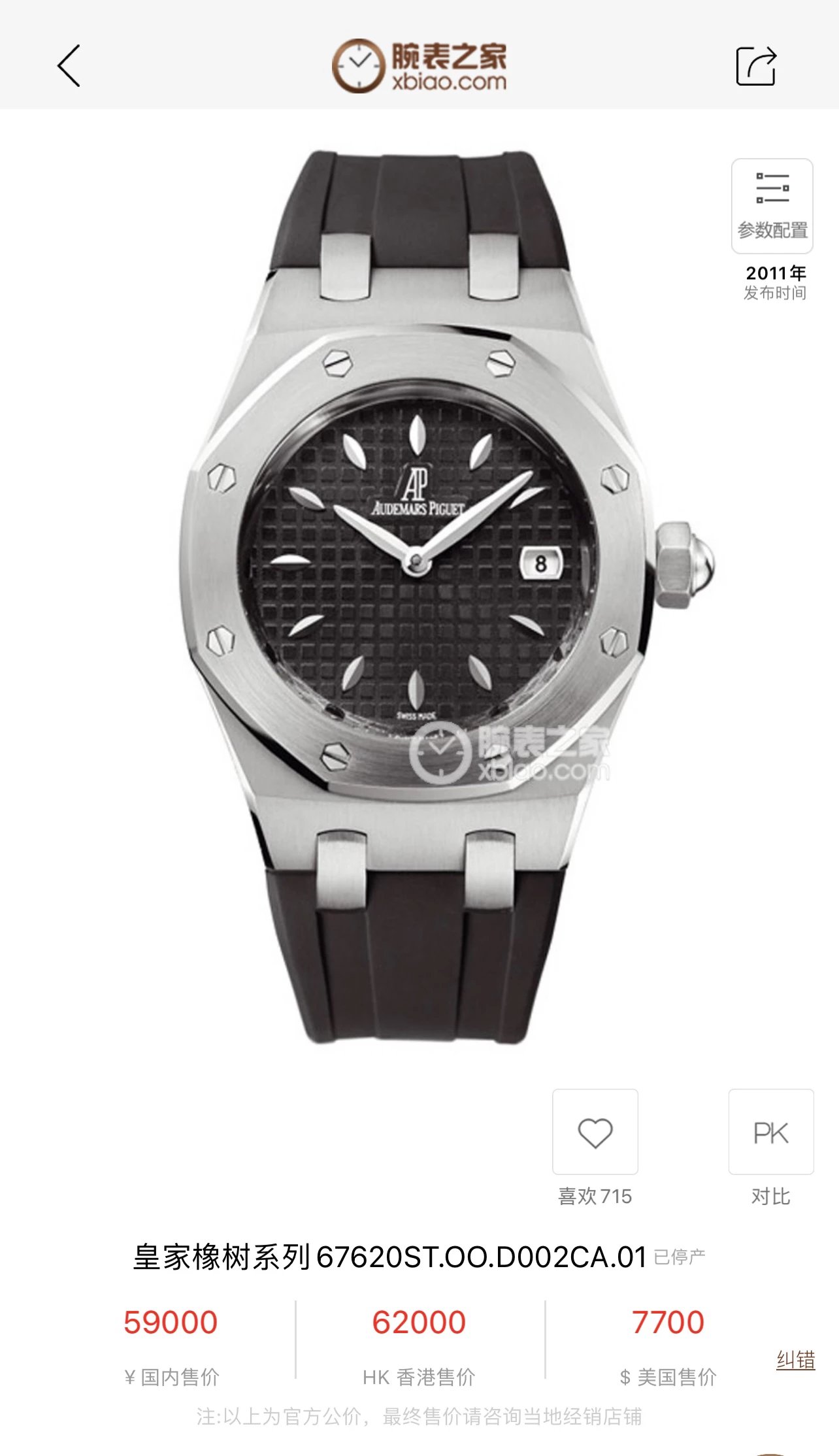 皇家橡樹系列型號67601石英腕表,皇家橡樹系列獨有的八角形外觀還擁有愛彼獨特的設計風格也將女士優雅風格融入其中,深受女明星們的愛戴,即使只有33毫米的小尺寸,也將愛彼獨有的純淨美感與剛毅線條展現的淋漓盡致 而鑲滿鑽石的表圈也為佩戴的女士增添了更多的柔美。巴蒂鑲嵌一枚半透明凸面藍寶石,搭載瑞士進口石英機芯,擁有實用的日曆顯示功能,女士們佩戴起來不會顯得沉重 !這種貨一般數量不是很多哦