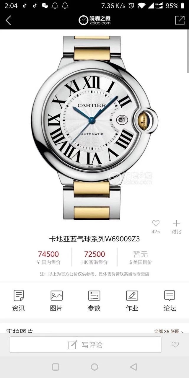 V9廠卡地亞藍氣球系列W69009Z3包金間金鋼帶男士機械手表