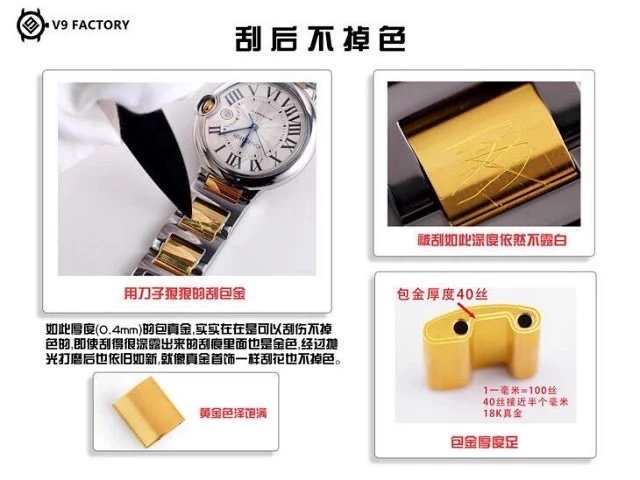 V9卡18K包金藍 42mm黃間金鋼帶款,40絲厚金包金刮花不露白不退色,大號搭載進口9015改原裝1847自動機械機芯男士腕表