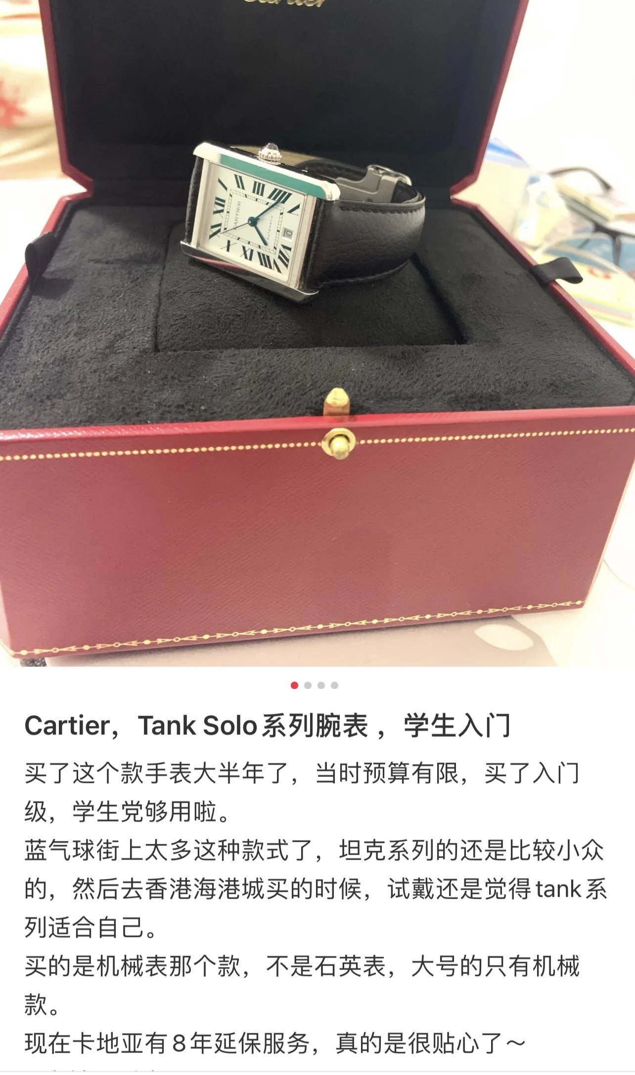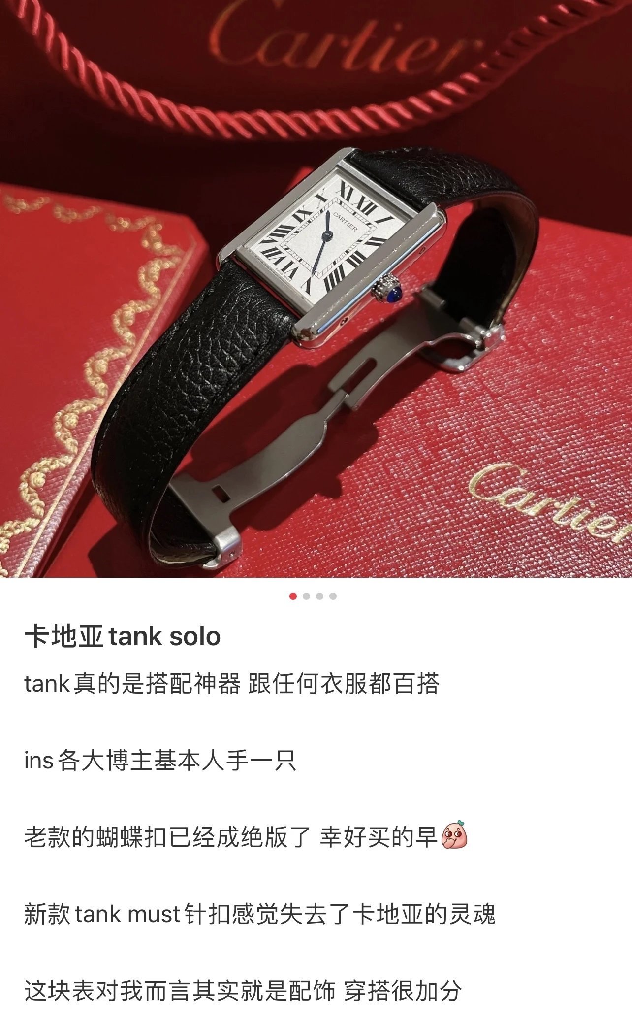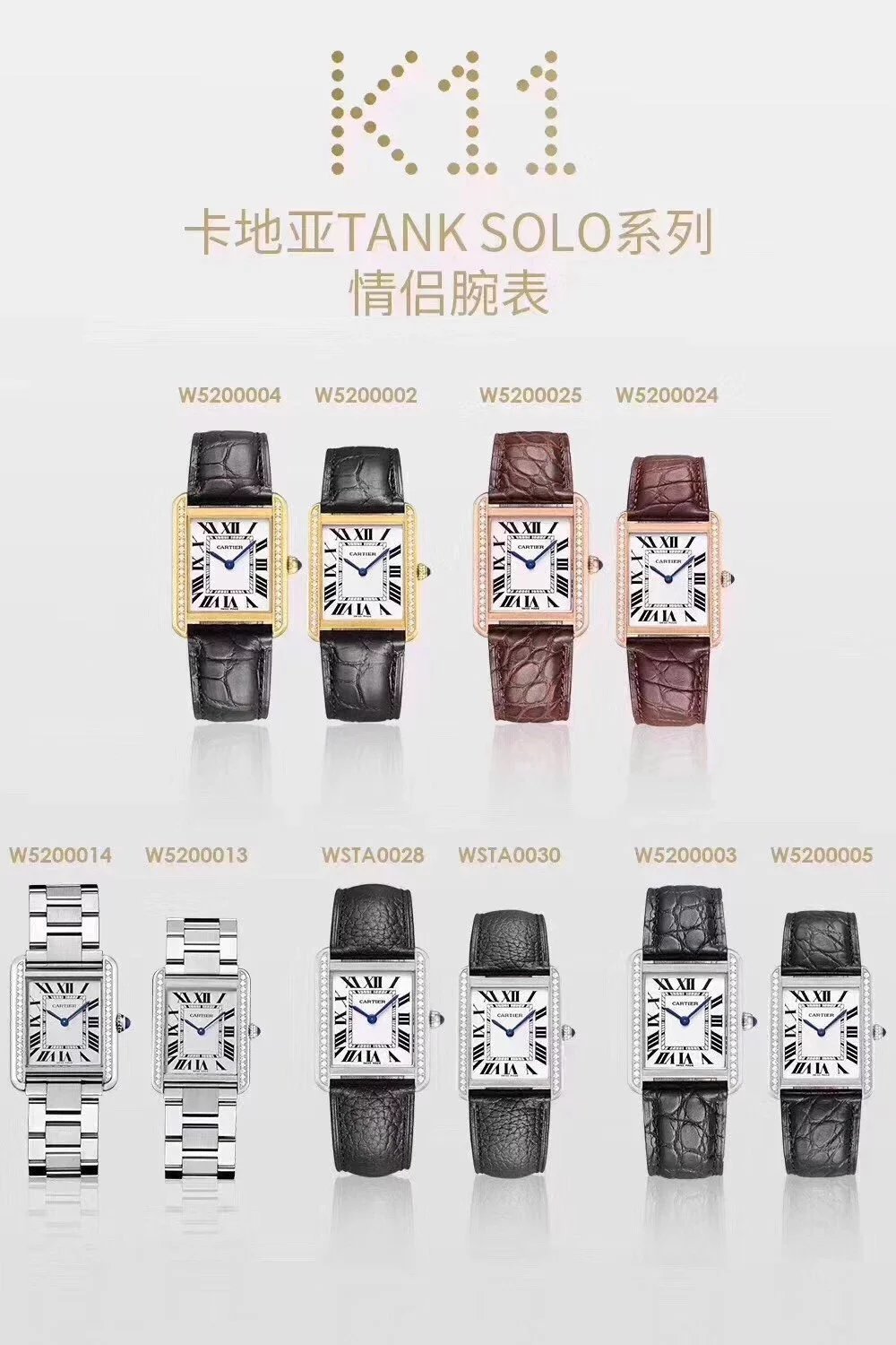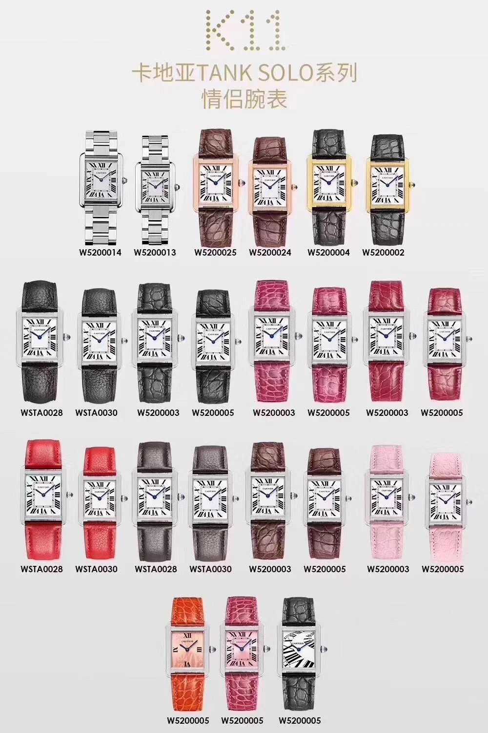 需要別的顏色可以聯繫客服確認大號33*27mm表徑,小號31*24mm,卡地亞是代購圈裏有名的搶手貨,尤其是卡地亞藍氣球,作為表圈裏最火的表款之一,一直保持著屹立不倒的姿態。與爆款相比,卡地亞坦克顯然就低調的多,無論是價格上還是款式上,都很難與藍氣球爭鋒。但它悠久的歷史依然掩蓋不住它的鋒芒,卡地亞坦克腕表誕生於1917年,今年恰好是它問世的一百周年紀念,稱得上是歷經百年的一款腕表了。它的設計靈感來自坦克剛勁有力的線條,那時正值第一次世界大戰,融入這樣的元素是非常有歷史意義的,也是身處和平年代的我們永遠無法理解的。但這並不影響它成為傳世經典之作,它用淩厲的線條和腕表的美學打造了一款極致優雅的腕表。獨家貨源中號