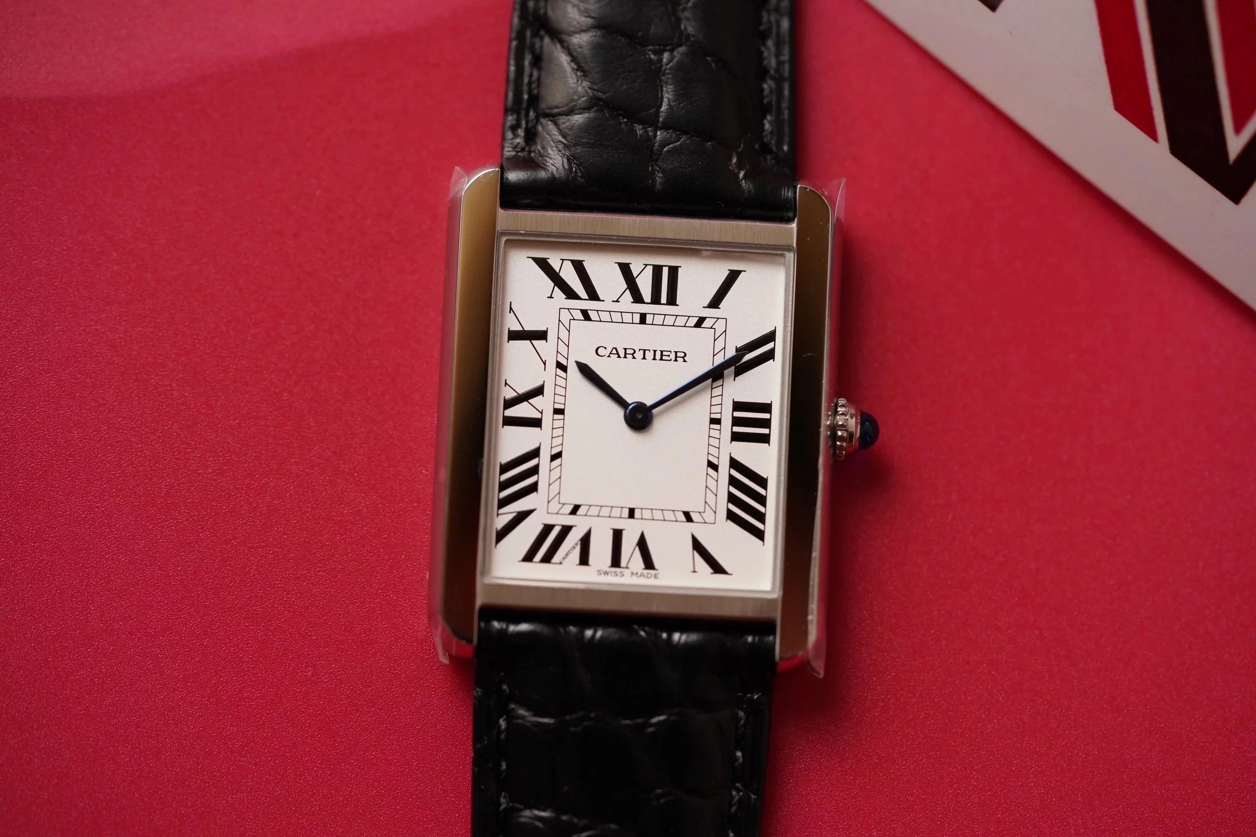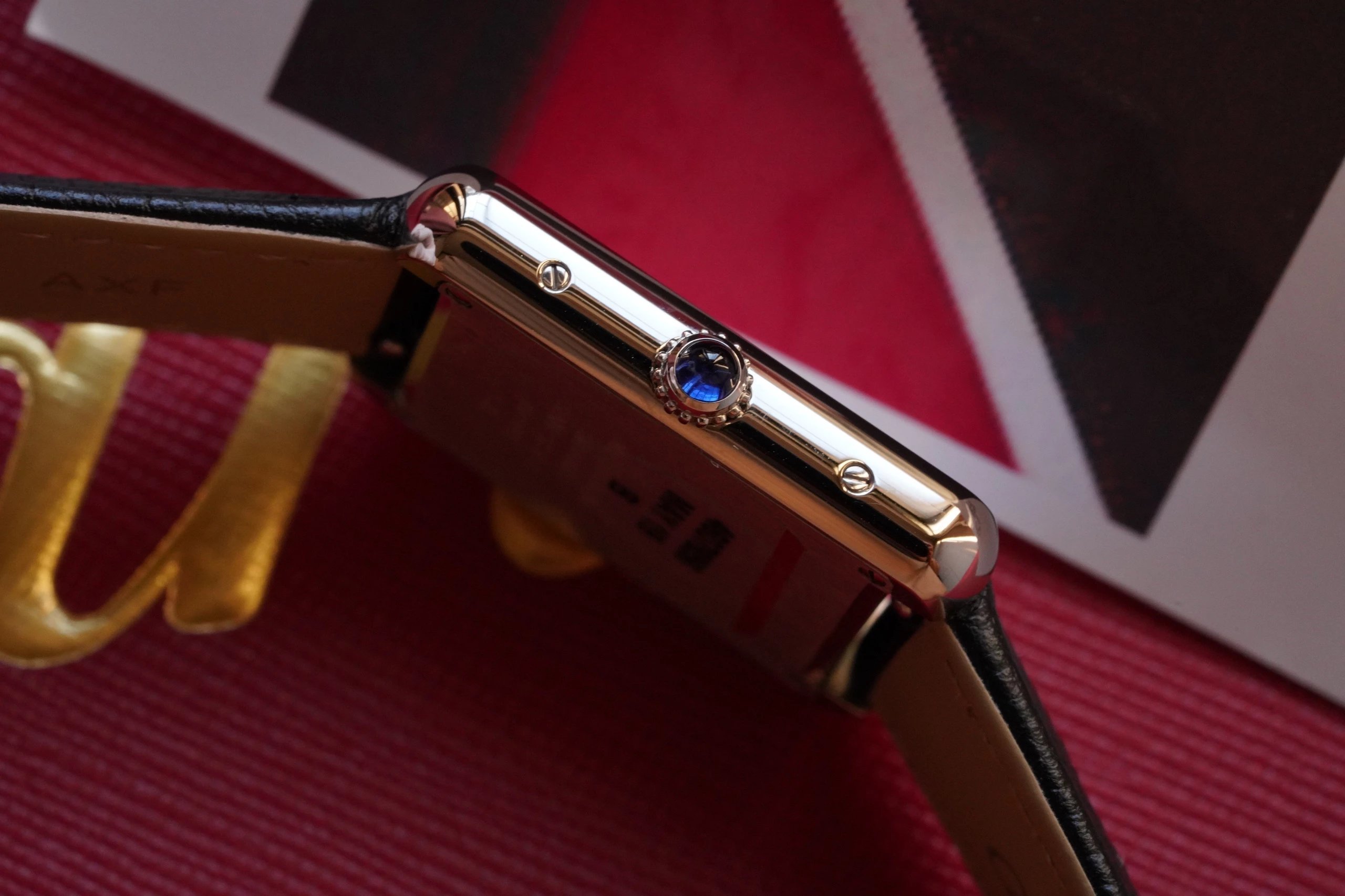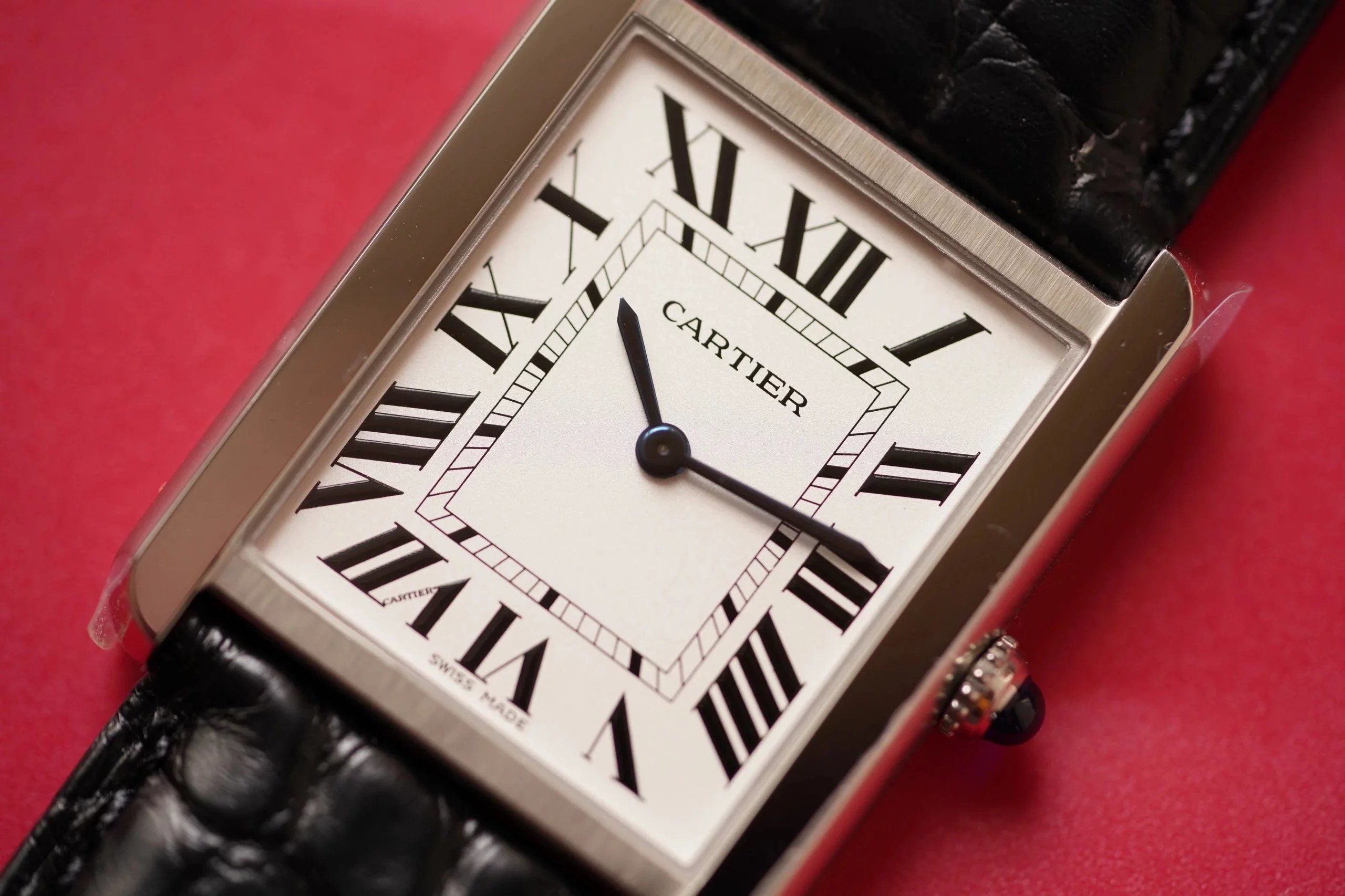 卡地亞坦克(TANK)複K女表採用與正品同樣材質的真鱷魚皮錶帶,精鋼表扣,裏面採用磨砂處理,表扣上刻字清晰。