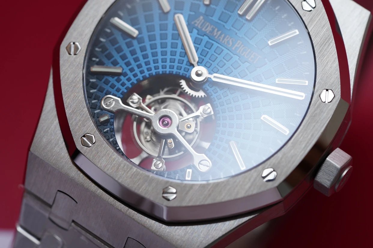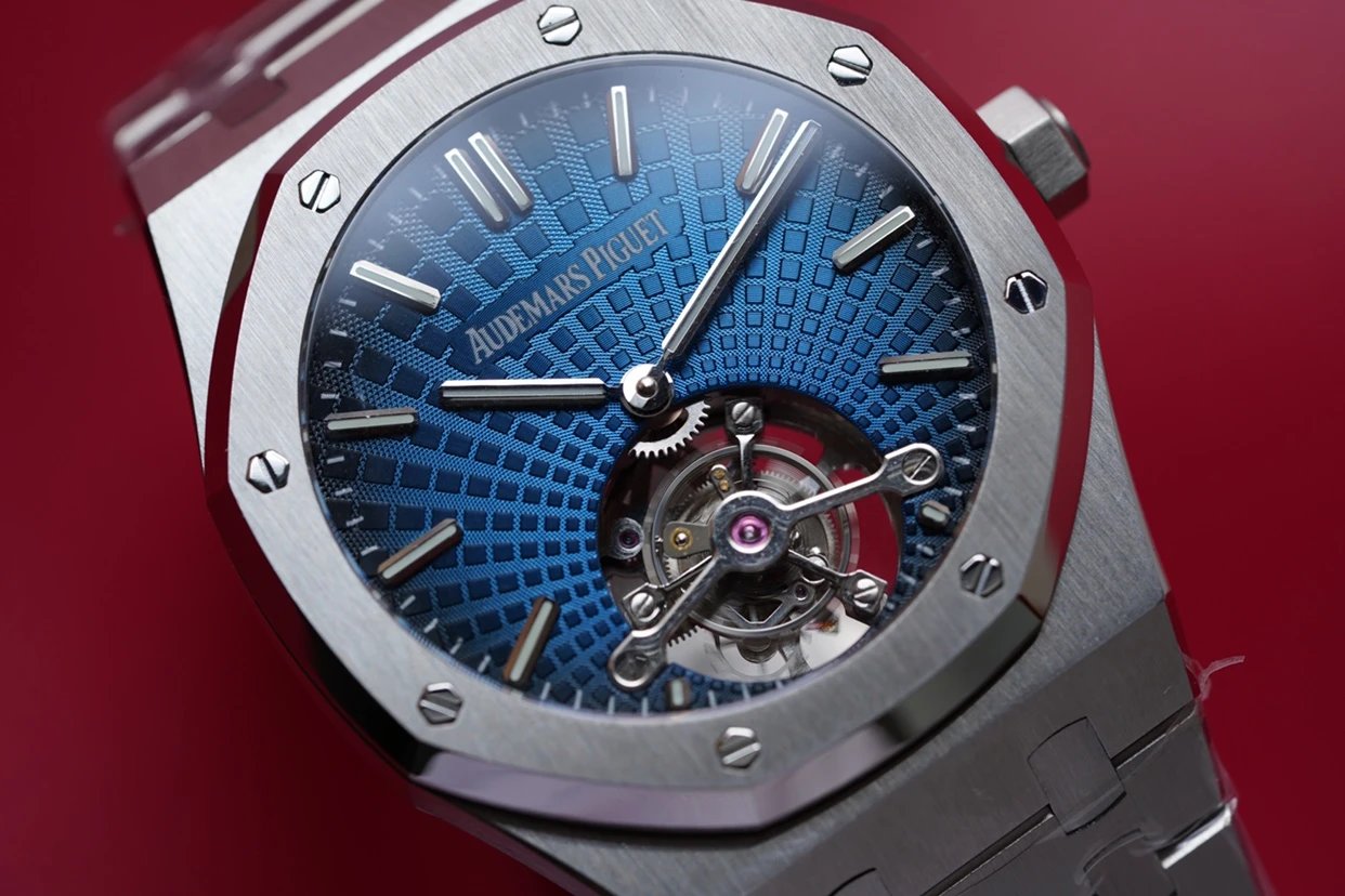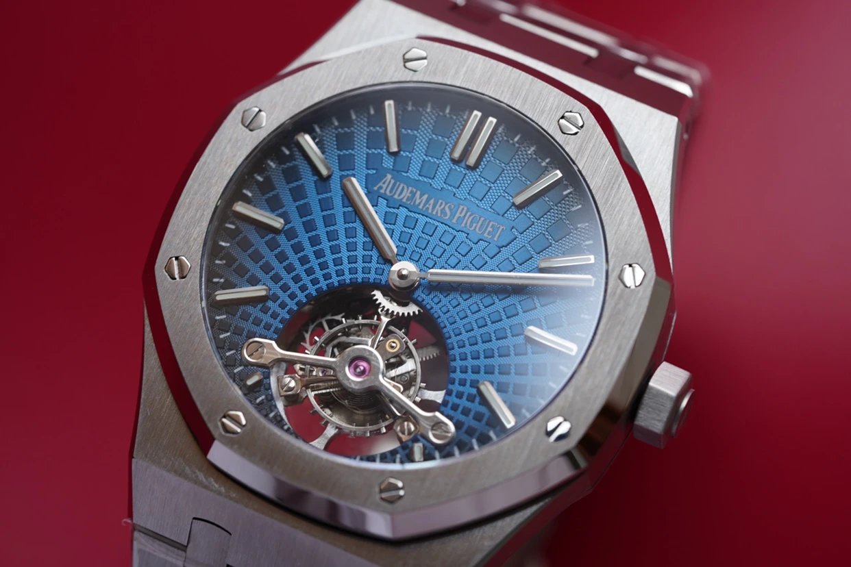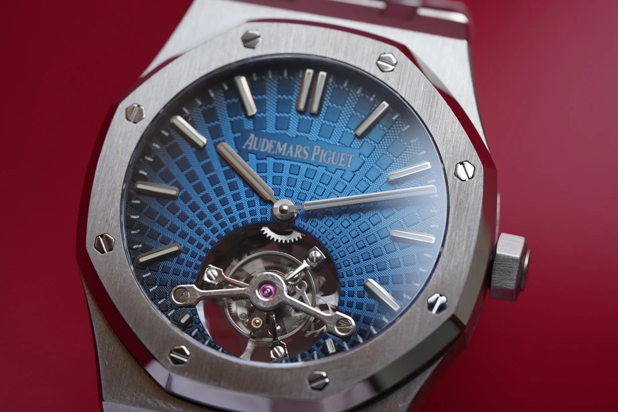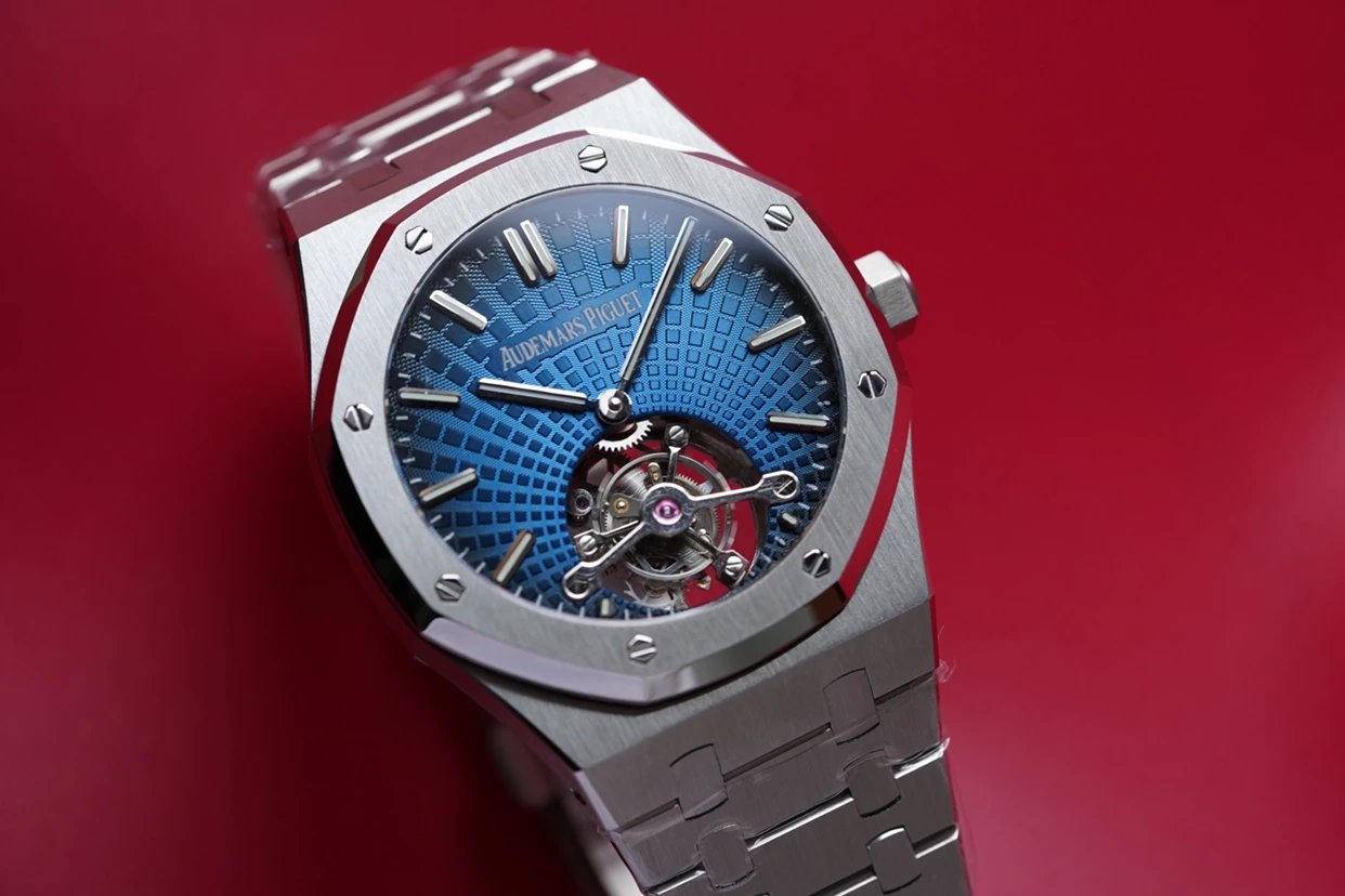 最新力作.AP 【 愛彼 陀飛輪 腕表】型號:26522OR.OO.120OR.01千變萬化的圖案,對比與色彩,探索全新途徑,心靈與眼眸共同領略的高級製錶傳奇。愛彼標誌性的“Tapisseris”格紋設計演變為光彩奪目的放射紋圖案,首次推出五枚全新陀飛輪腕表。搭配Cal.2924陀飛輪手動上鏈機芯,動力儲存為80小時,表殼直徑41mm厚度12.4毫米。