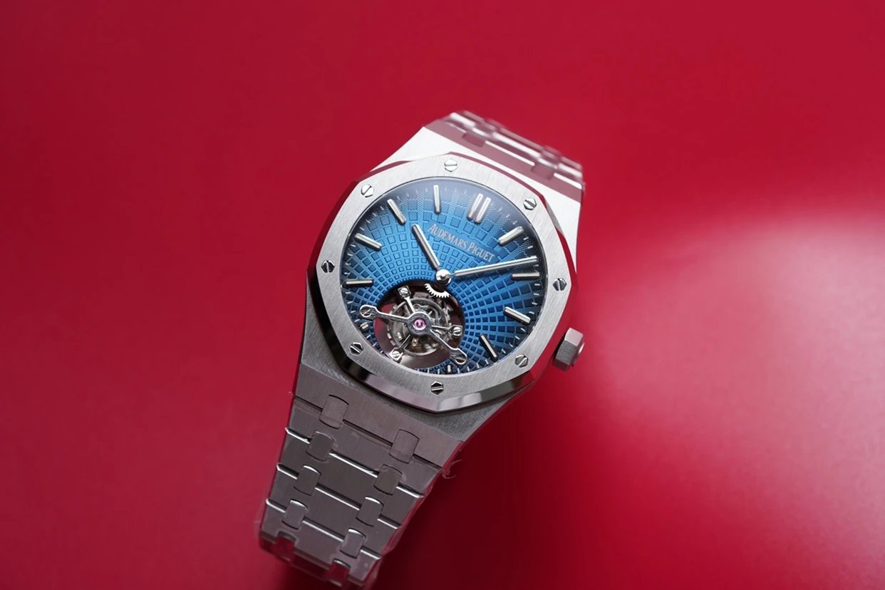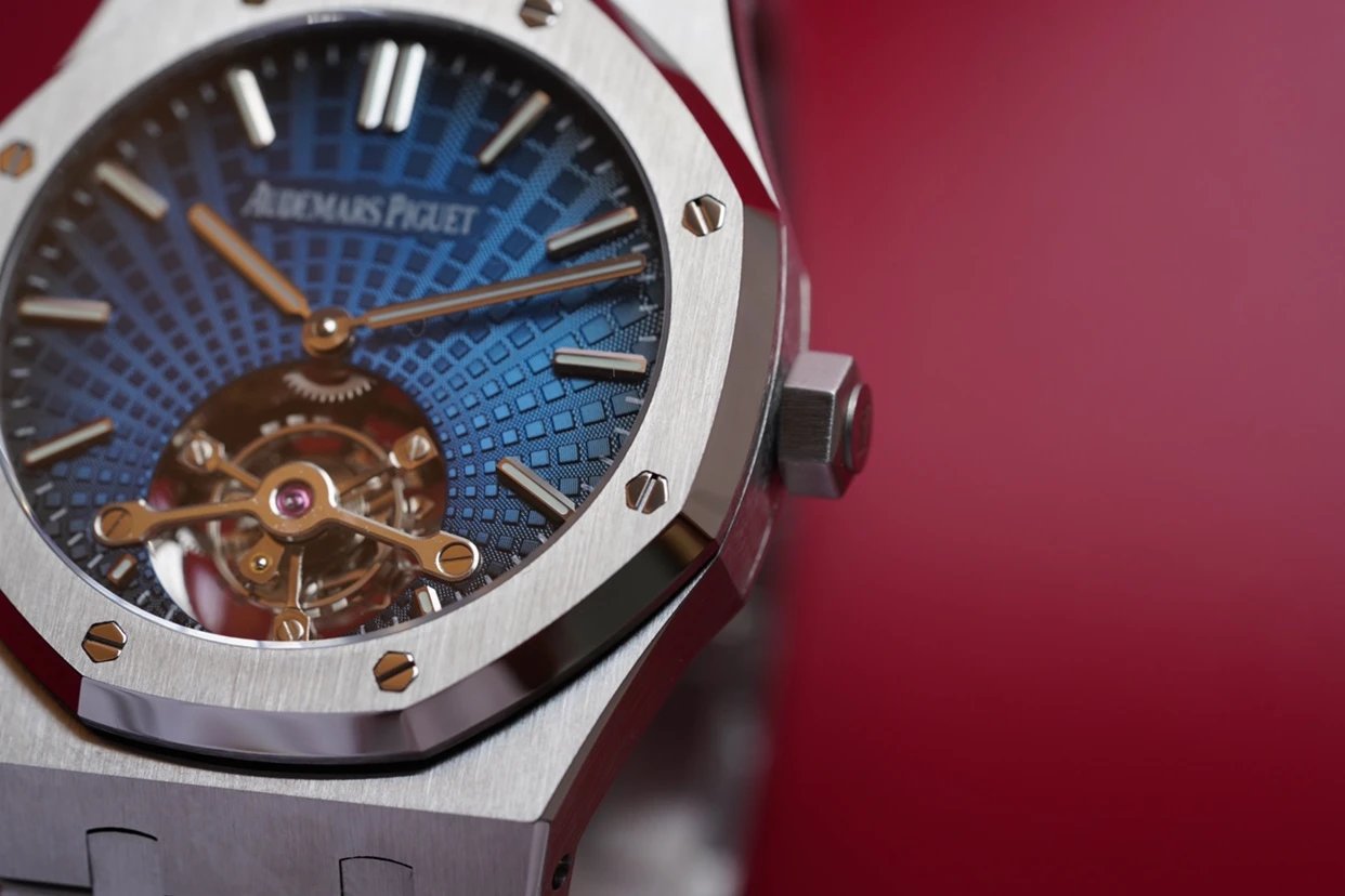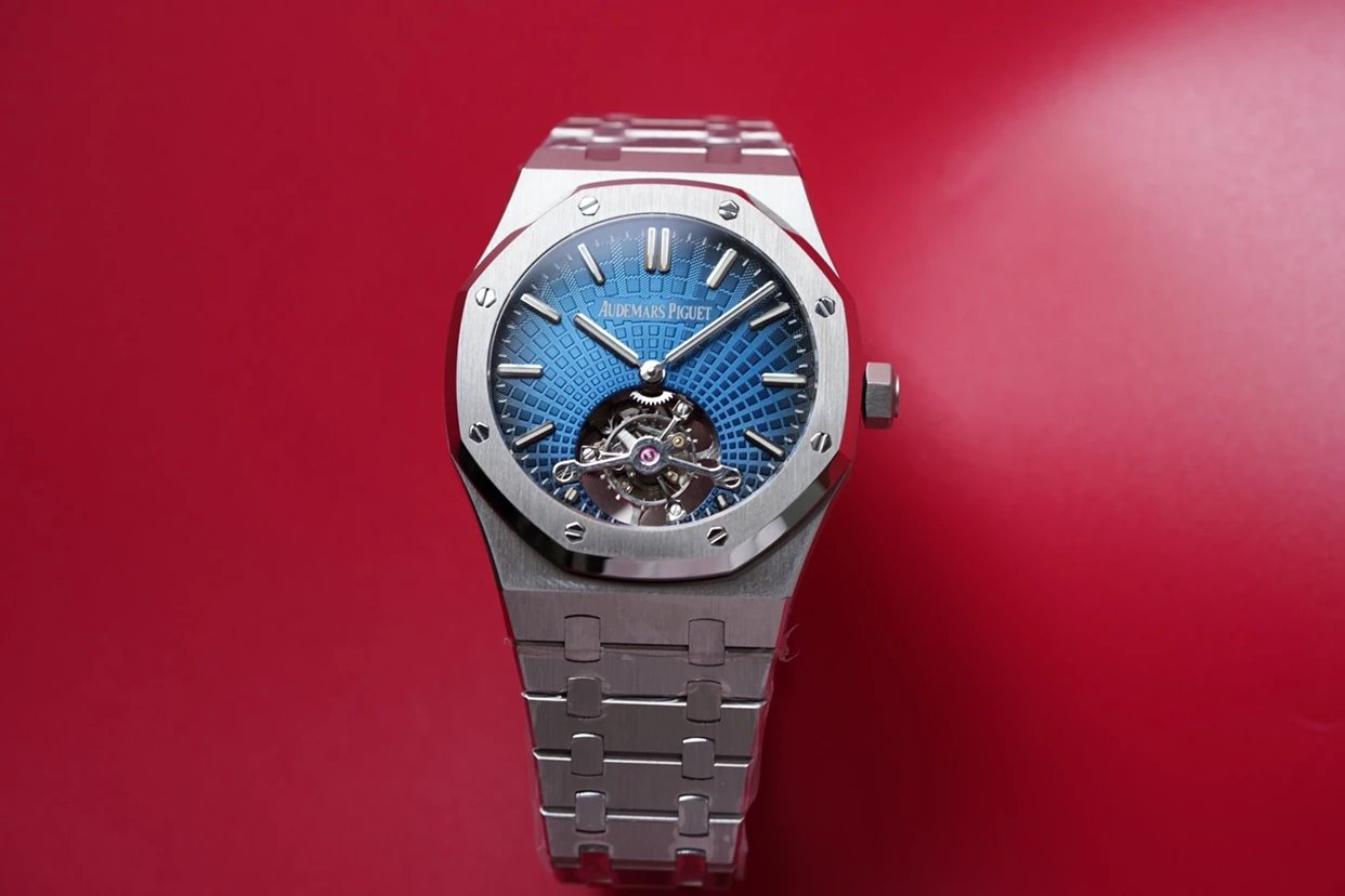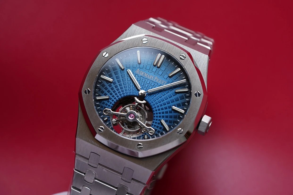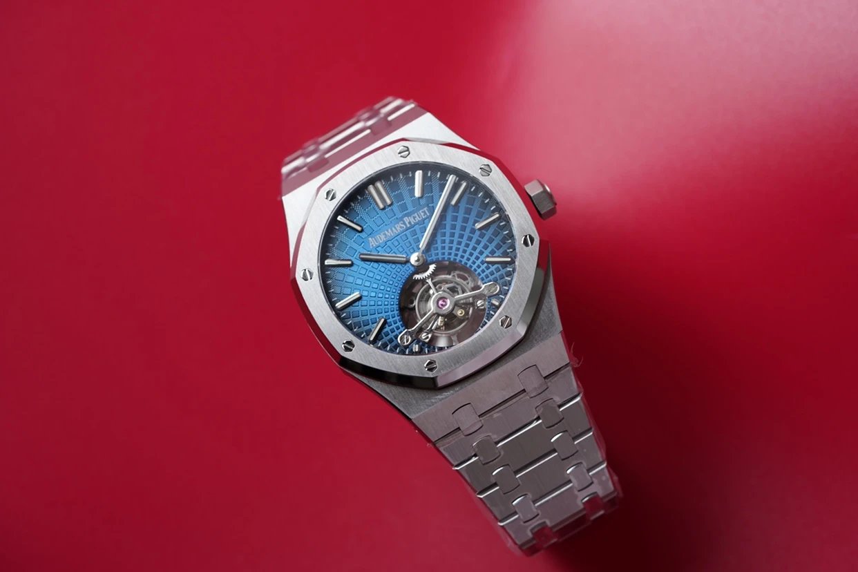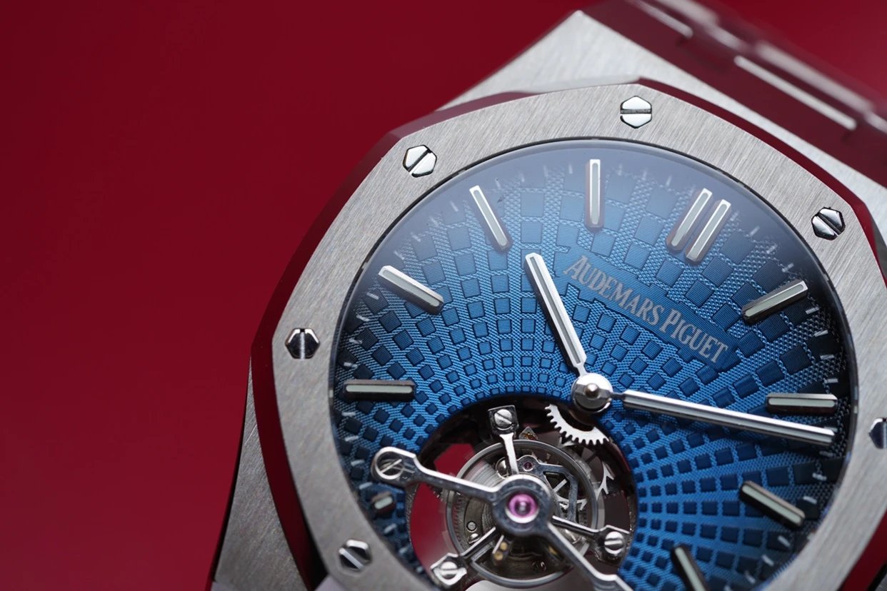 最新力作.AP 【 愛彼 陀飛輪 腕表】型號:26522OR.OO.120OR.01千變萬化的圖案,對比與色彩,探索全新途徑,心靈與眼眸共同領略的高級製錶傳奇。愛彼標誌性的“Tapisseris”格紋設計演變為光彩奪目的放射紋圖案,首次推出五枚全新陀飛輪腕表。搭配Cal.2924陀飛輪手動上鏈機芯,動力儲存為80小時,表殼直徑41mm厚度12.4毫米。