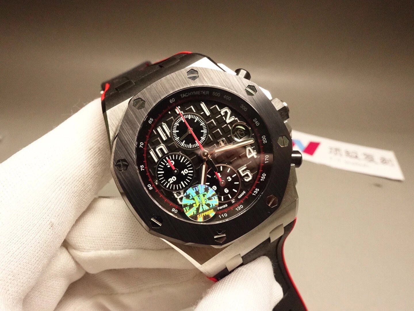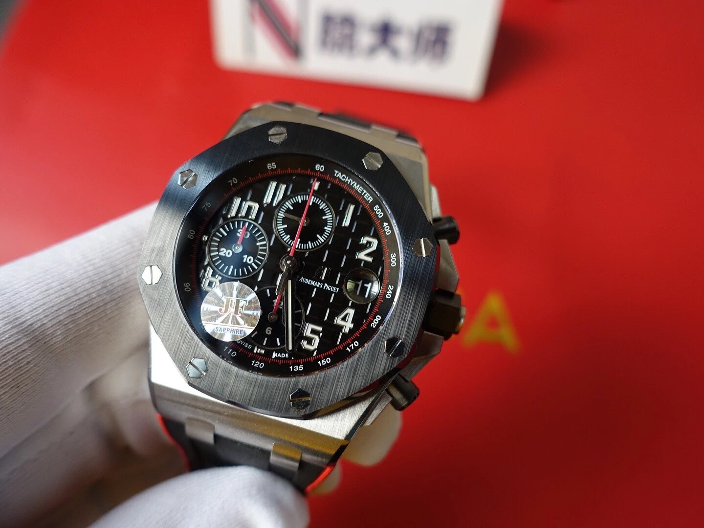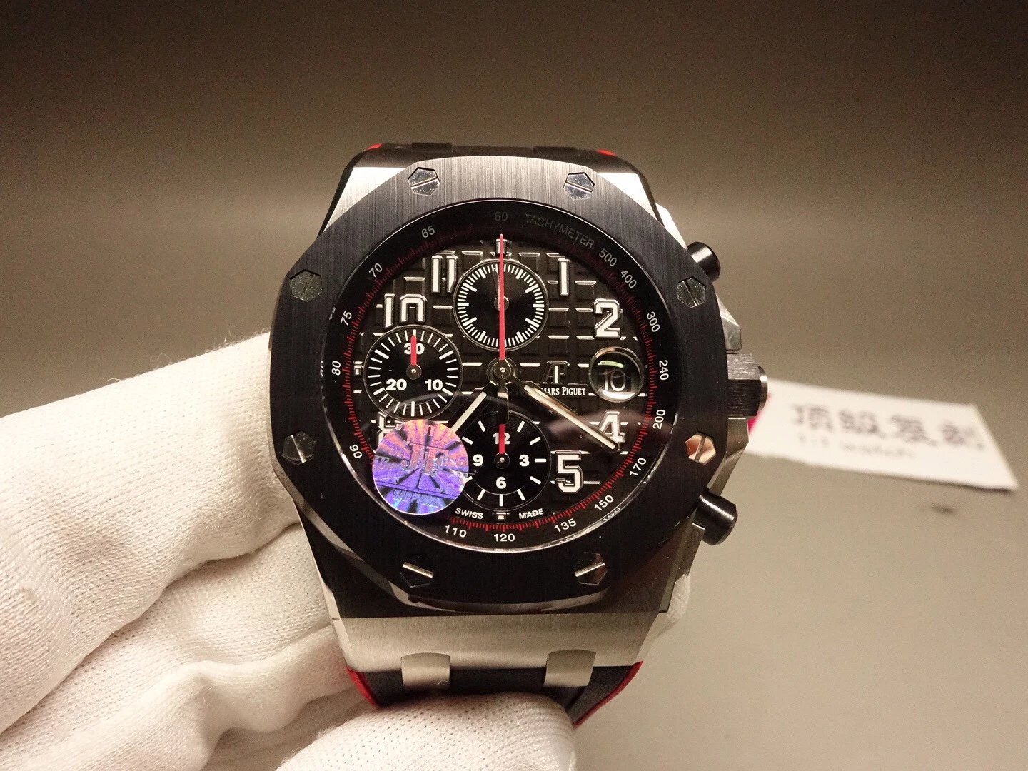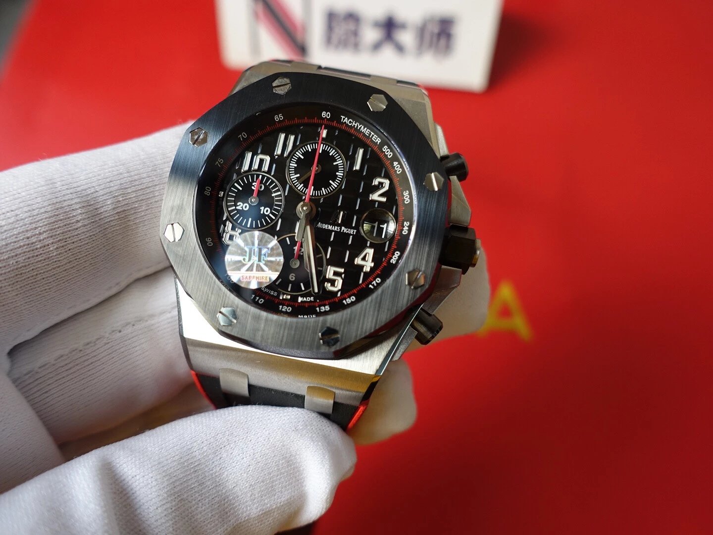 JF 最新巨作 AP26470鋼殼陶瓷圈新品.直徑42毫米!陶瓷把頭陶瓷按的,搭載訂製版12H計時3126機芯,特製的頂級黑紅橡膠帶。 最強版26470系列【JF出品】
