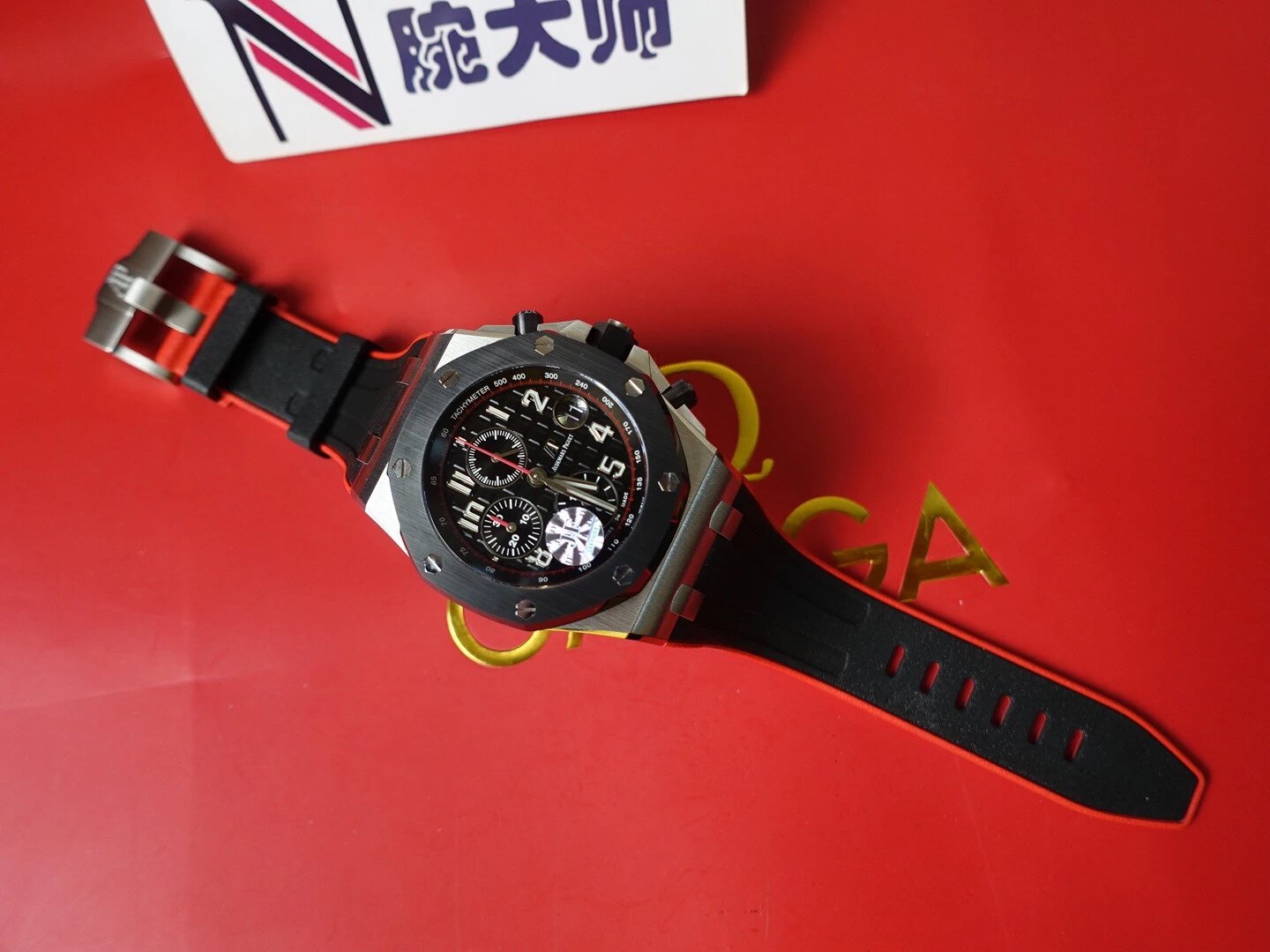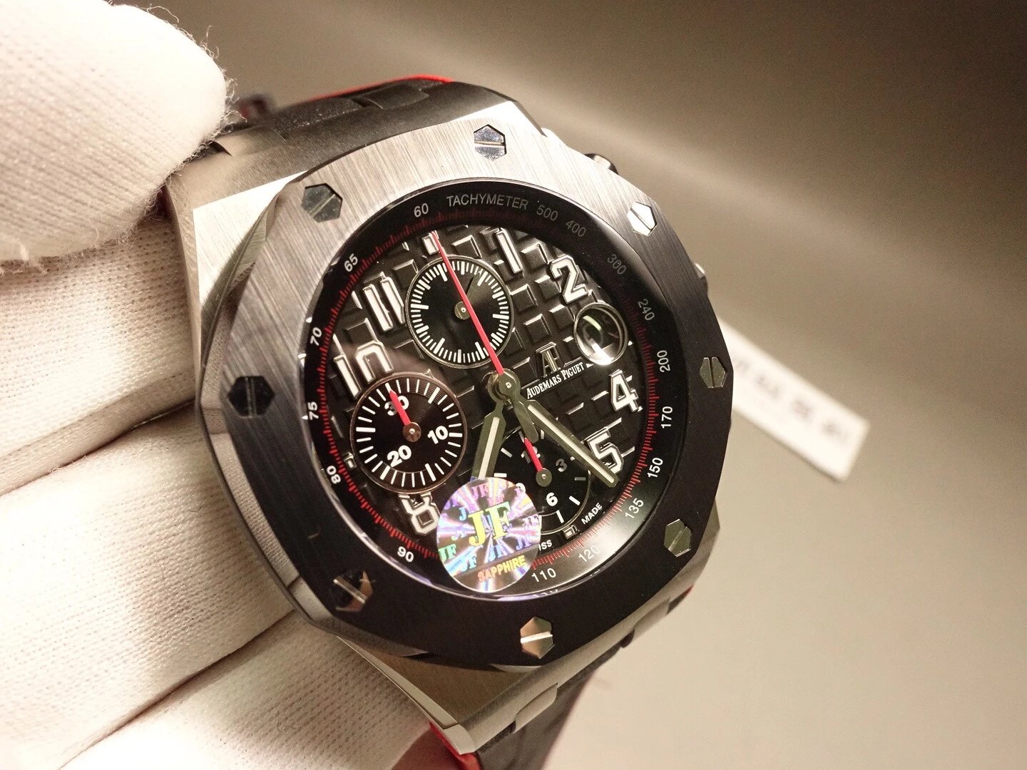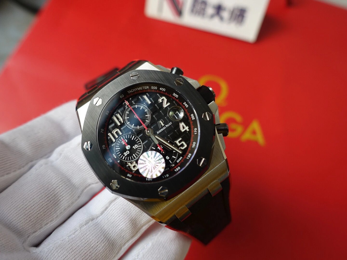 JF 最新巨作 AP26470鋼殼陶瓷圈新品.直徑42毫米!陶瓷把頭陶瓷按的,搭載訂製版12H計時3126機芯,特製的頂級黑紅橡膠帶。 最強版26470系列【JF出品】