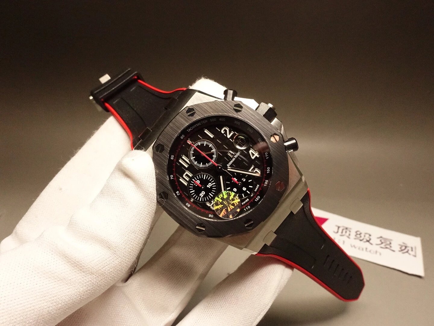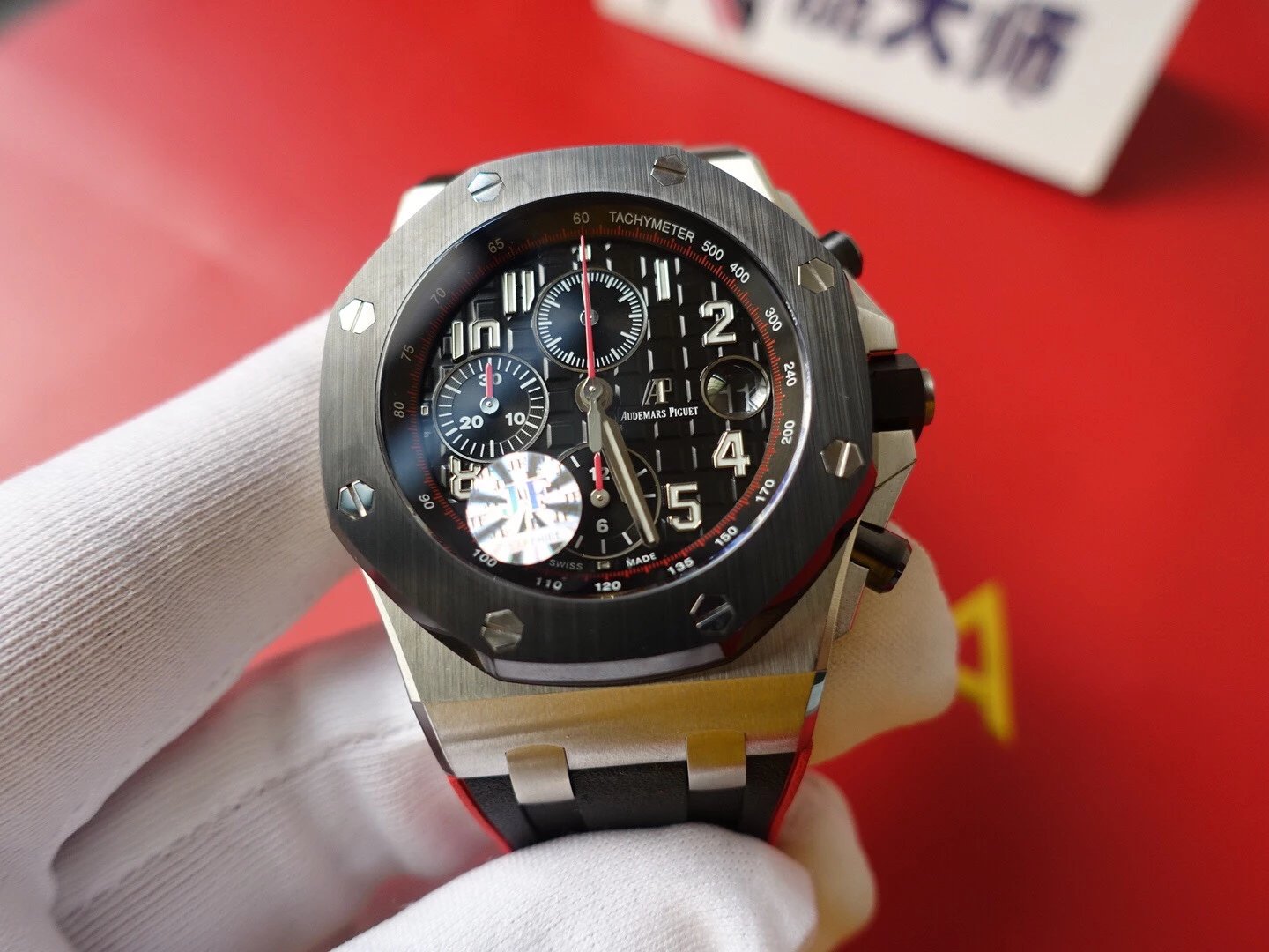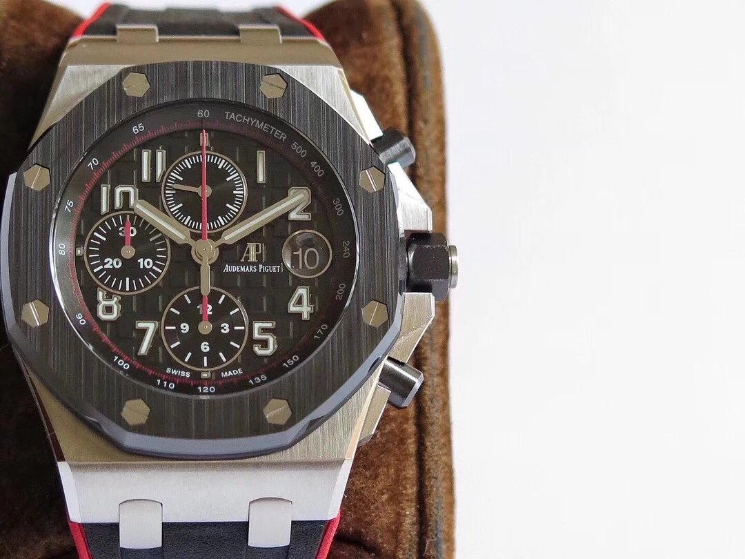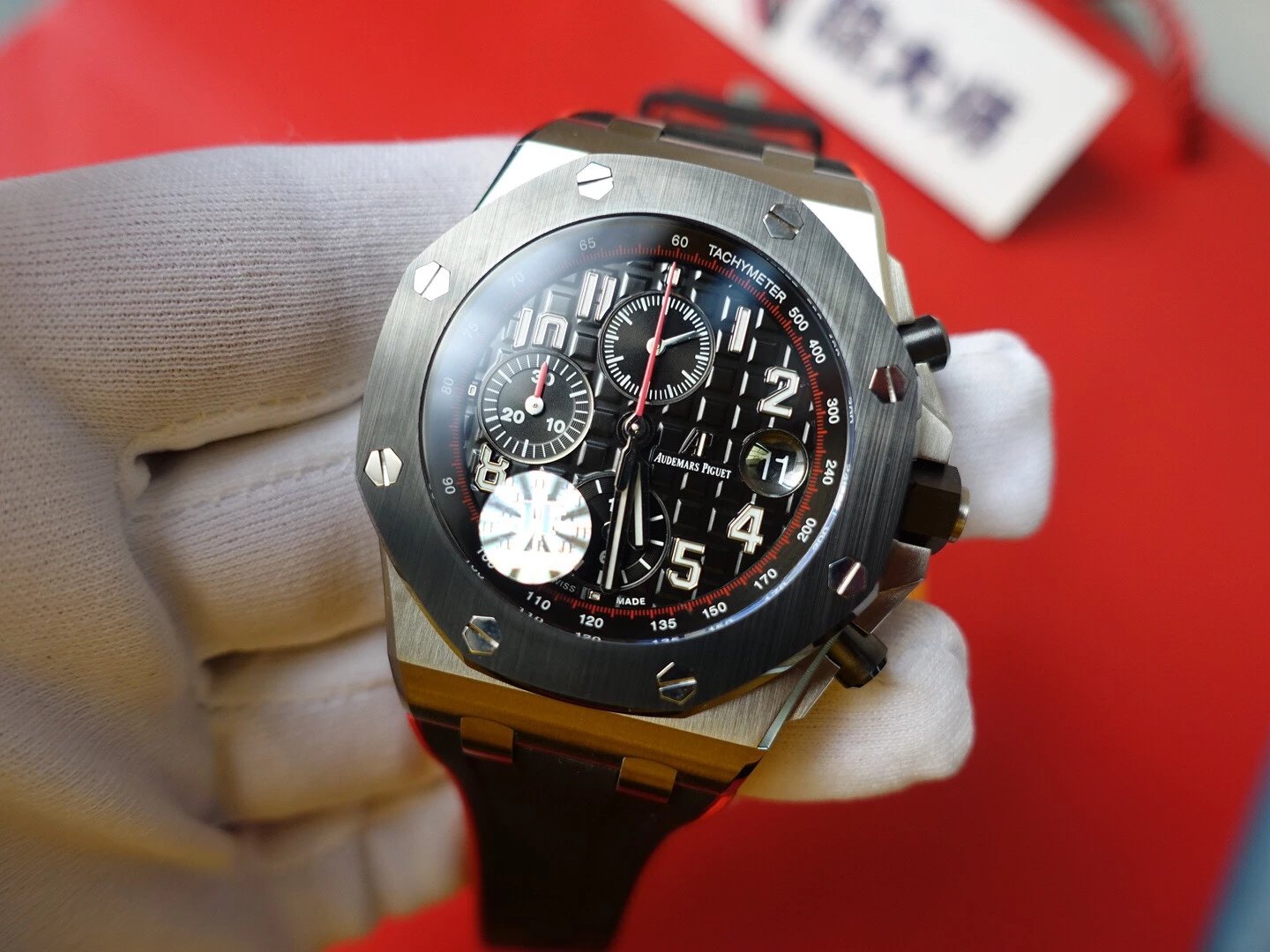 JF 最新巨作 AP26470鋼殼陶瓷圈新品.直徑42毫米!陶瓷把頭陶瓷按的,搭載訂製版12H計時3126機芯,特製的頂級黑紅橡膠帶。 最強版26470系列【JF出品】