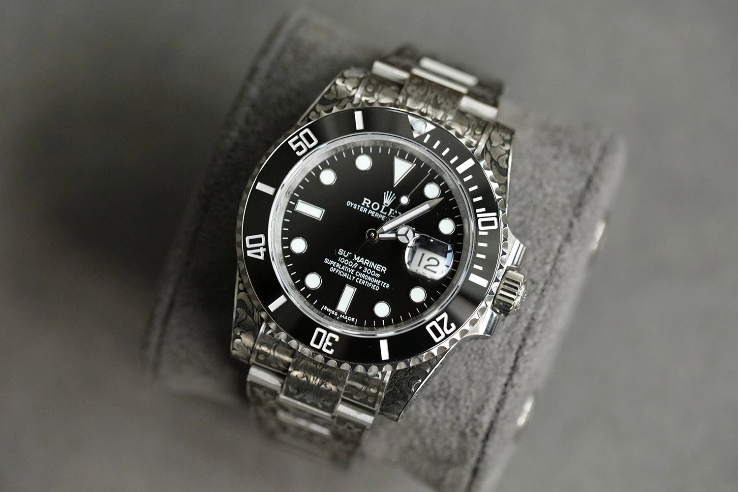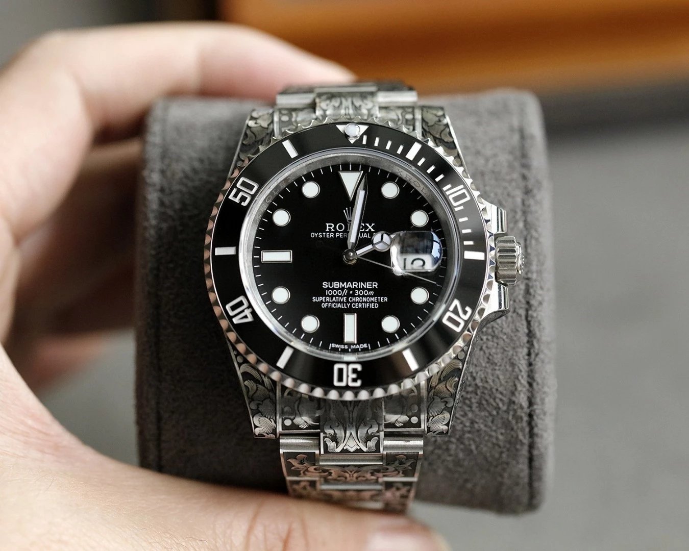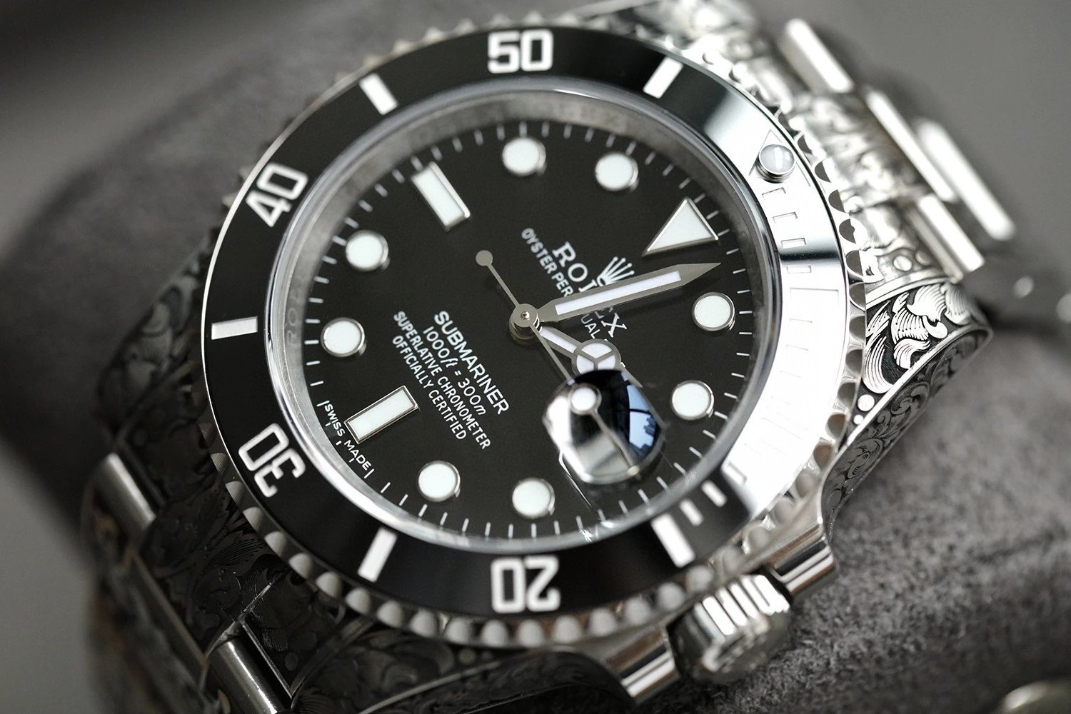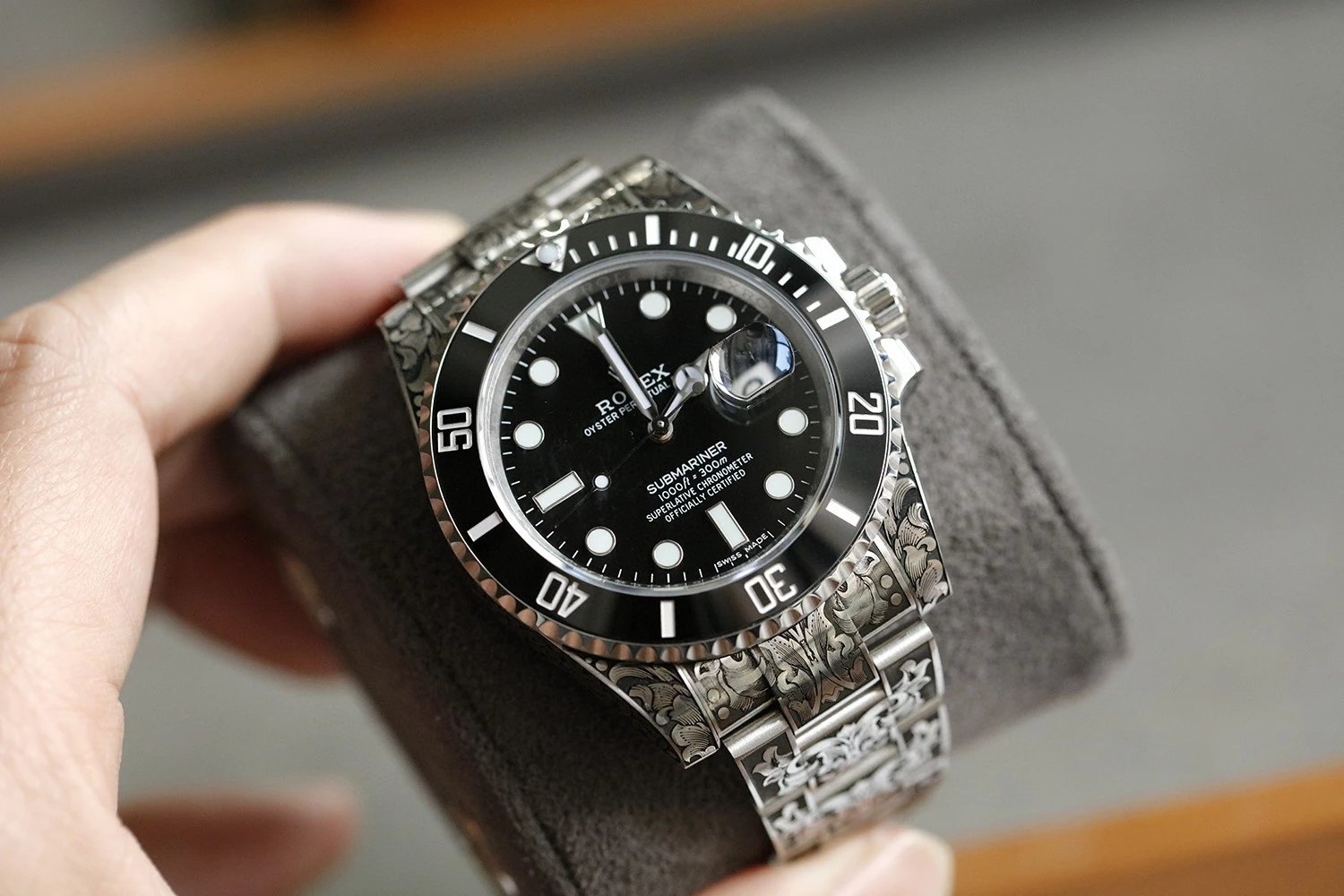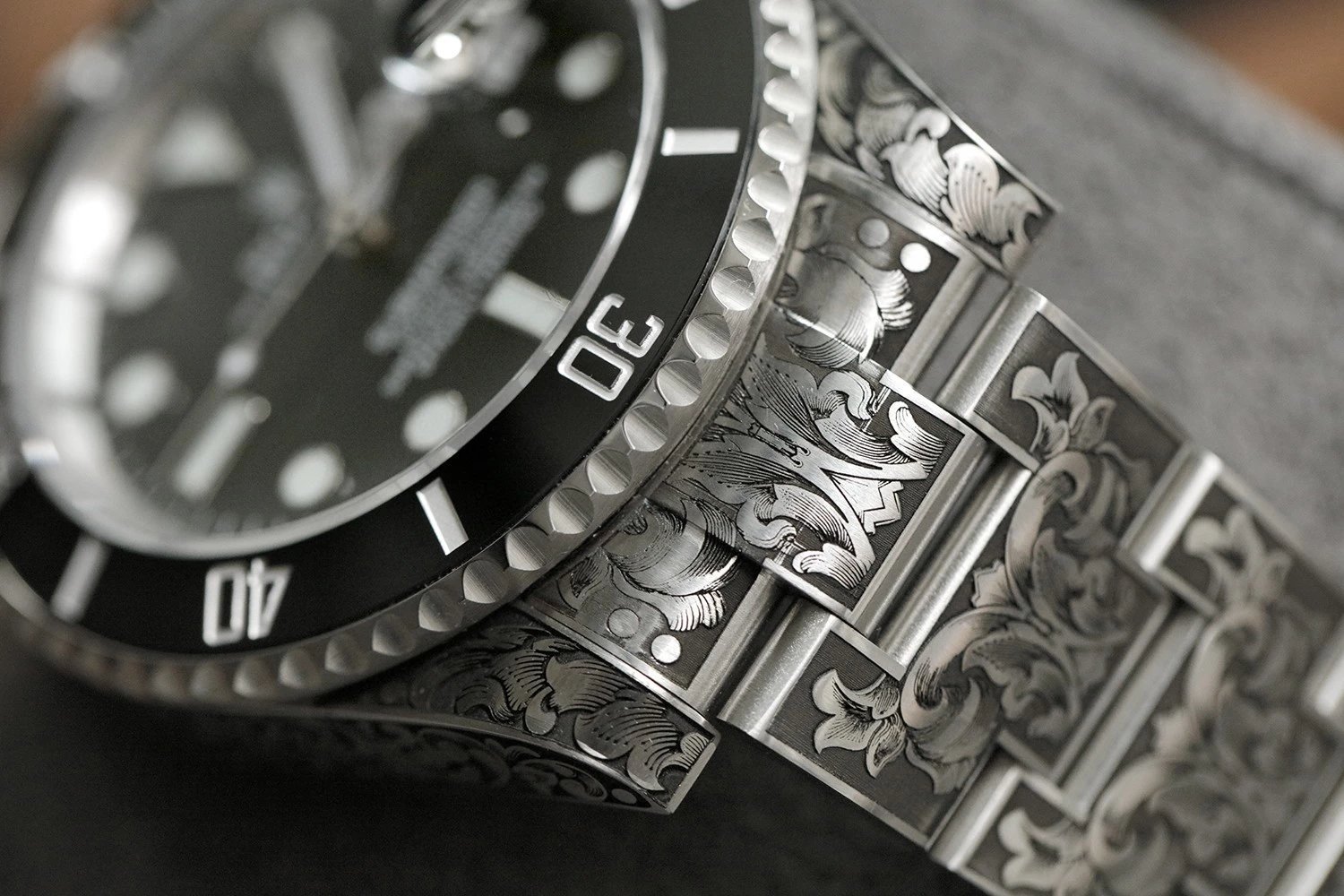 • 勞力士黑水鬼雕花錶帶表殼 改裝版的勞力士黑水鬼