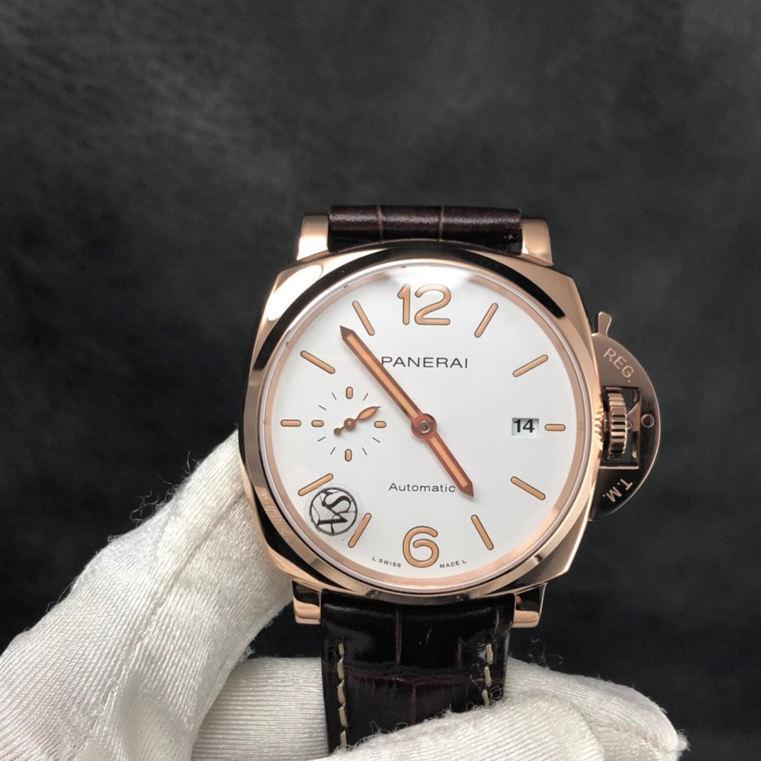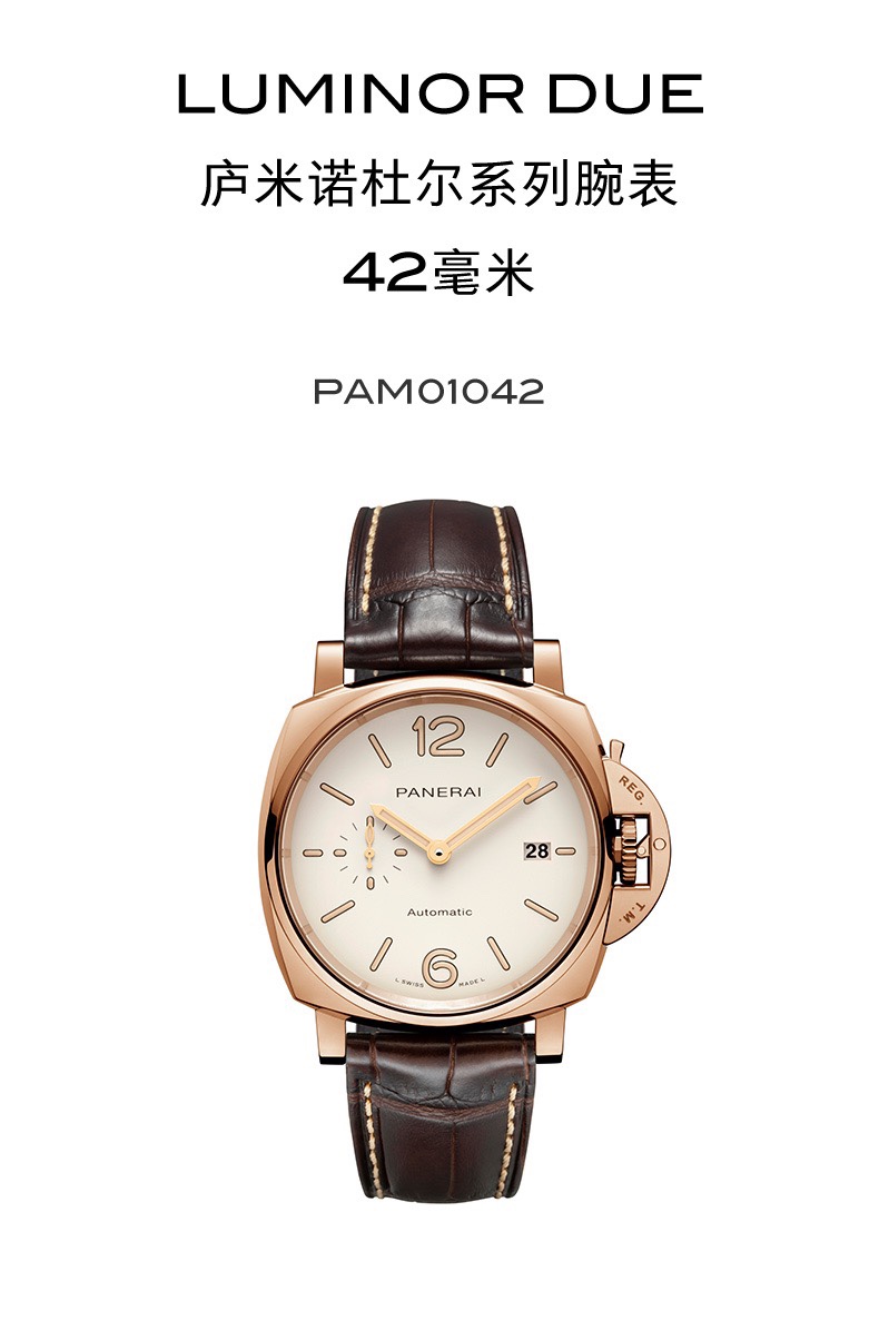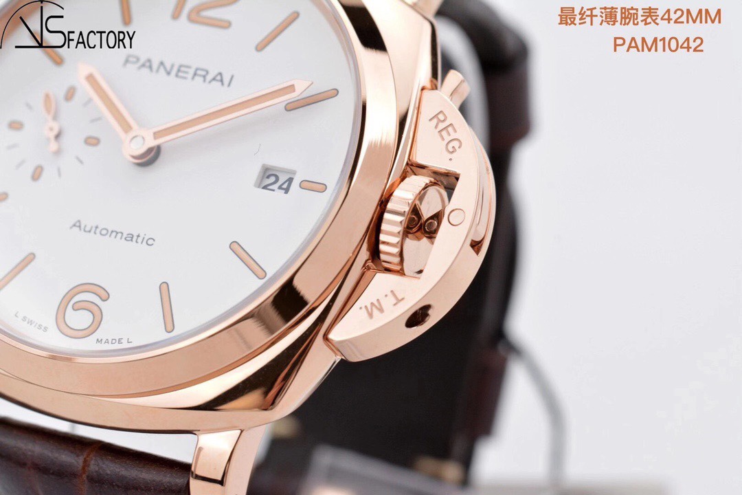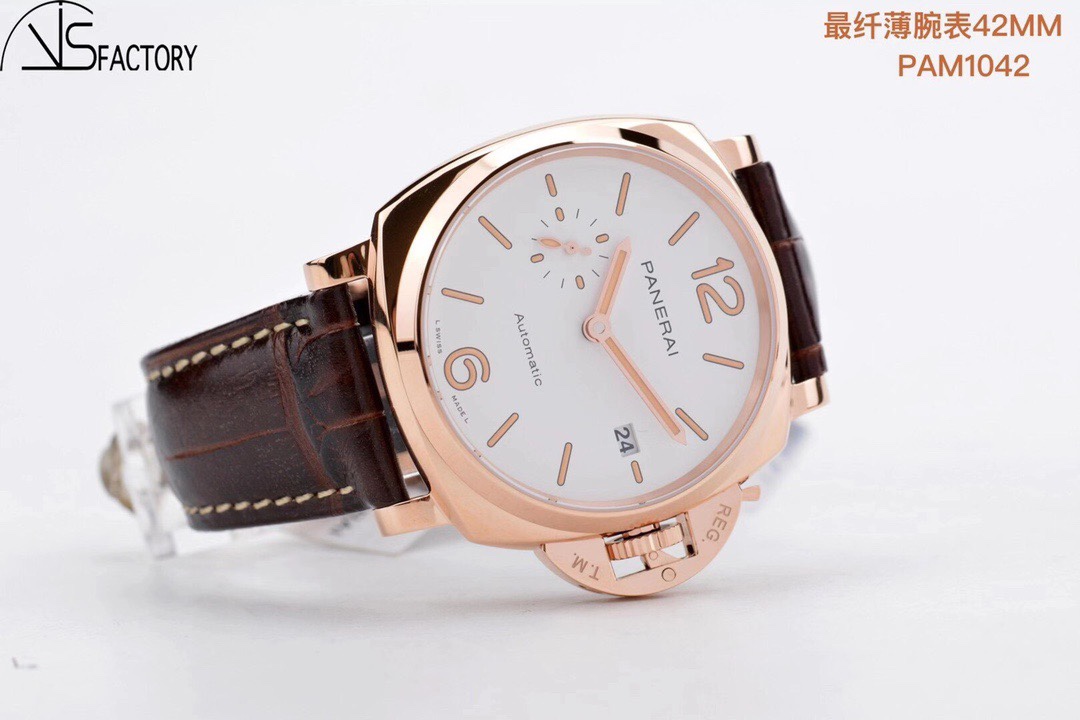 VS新品:沛呐海 Luminor Due 小紅金 42MM 最纖薄PAM 1042 這是沛呐海最薄的款~ 貼緊手腕不厚重佩戴非常舒服~送禮小紅金 男女都可佩戴哦~