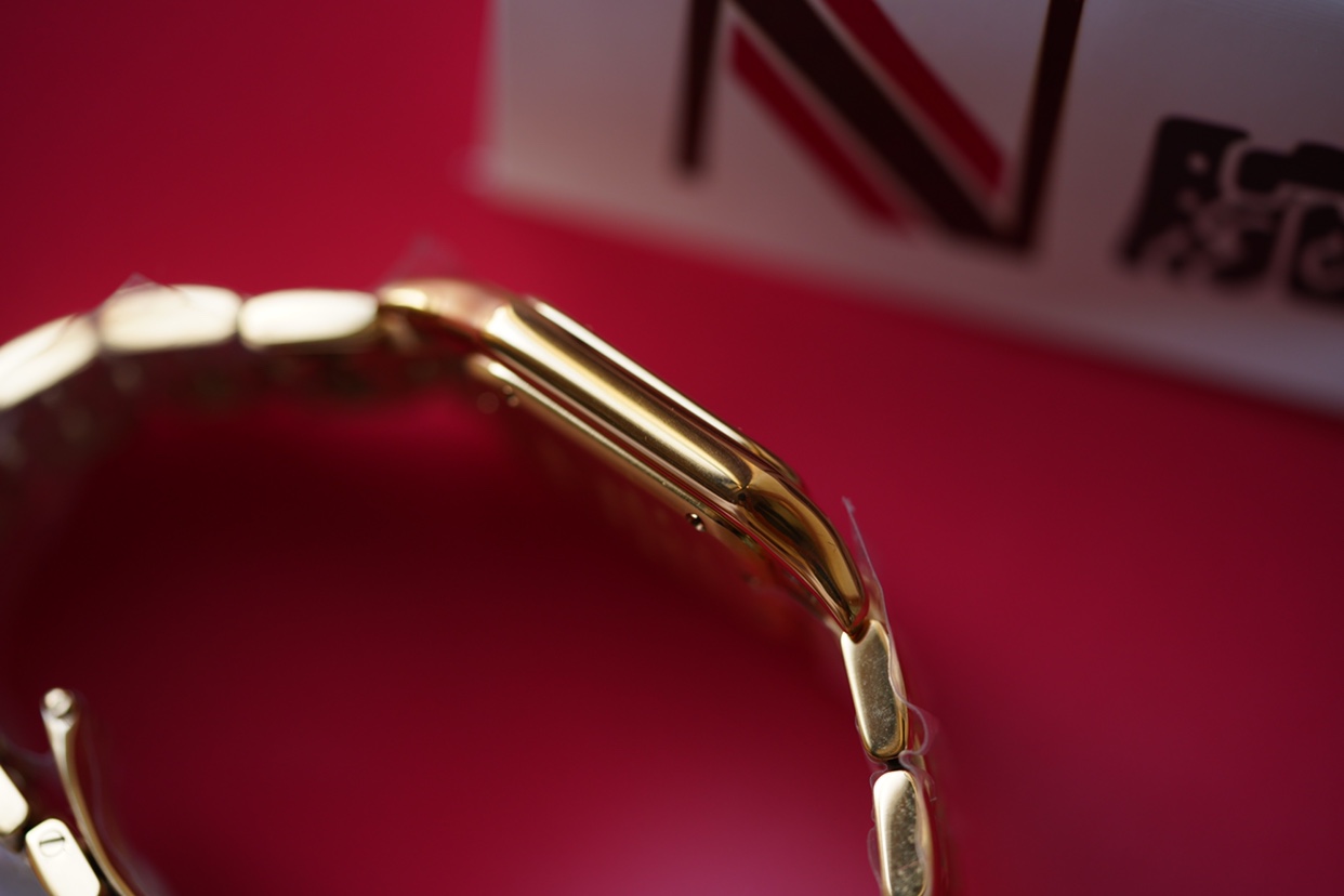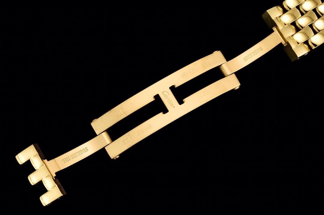 以精湛技藝,原裝開模,打造出與正品無異的精美流線表耳,與表殼一體成型。搭載瑞士朗達石英機芯,316L精鋼殼套,尺寸:27 x 37毫米,厚度:6毫米,表冠鑲嵌一顆合成藍色尖晶石,鍍銀錶盤,劍形藍鋼指針,100%三度防水。搭配專櫃旅行包裝物料。