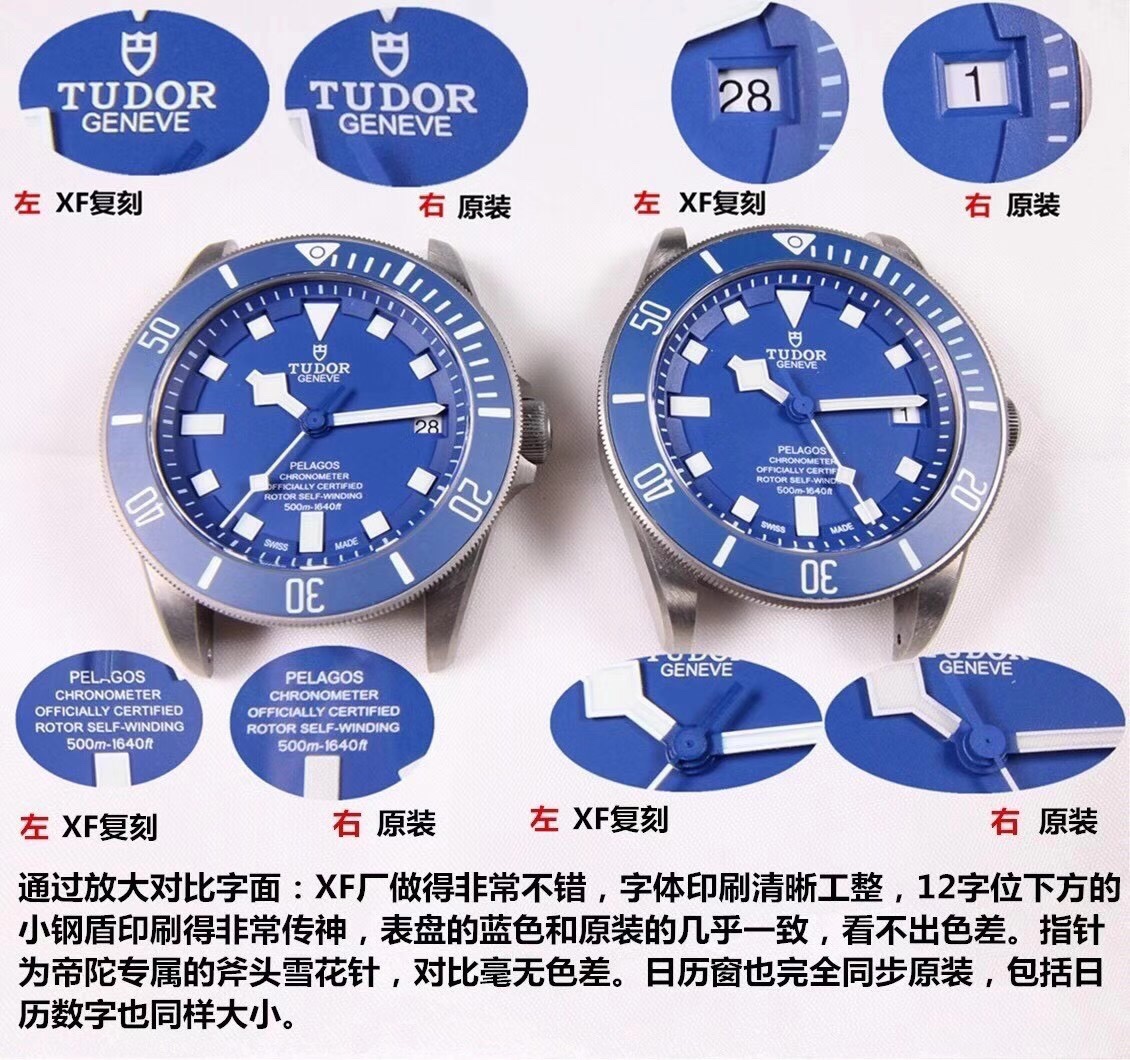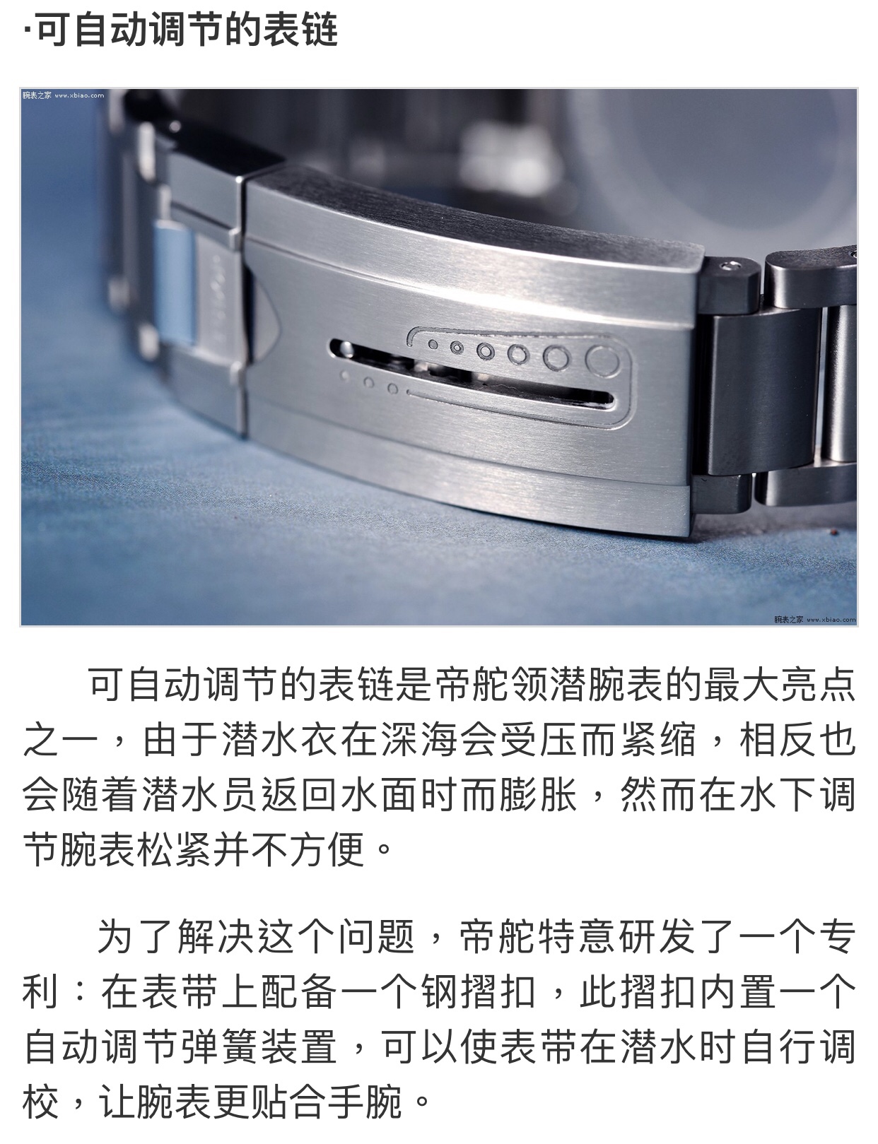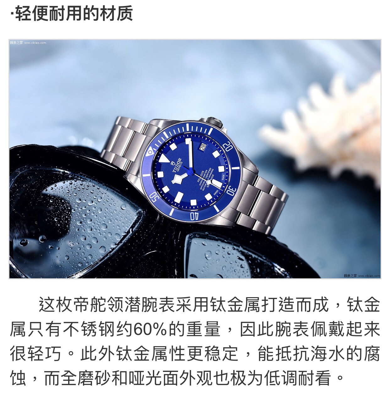 XF 致敬經典傳奇- 帝舵 領潛型藍色戰斧。 一,具有潛水標誌特色的“雪花”指針。 二,鈦金屬錶帶和自動調節表扣,並配送天然橡膠帶一副。 三,升級並且加強了圈口和字面的藍光刻度,夜光不輸黑水鬼。