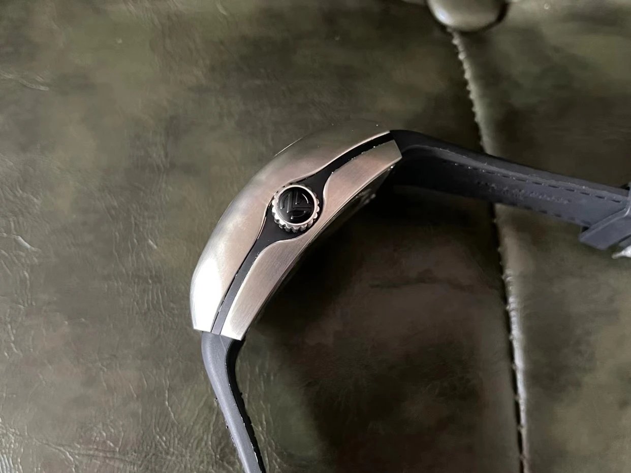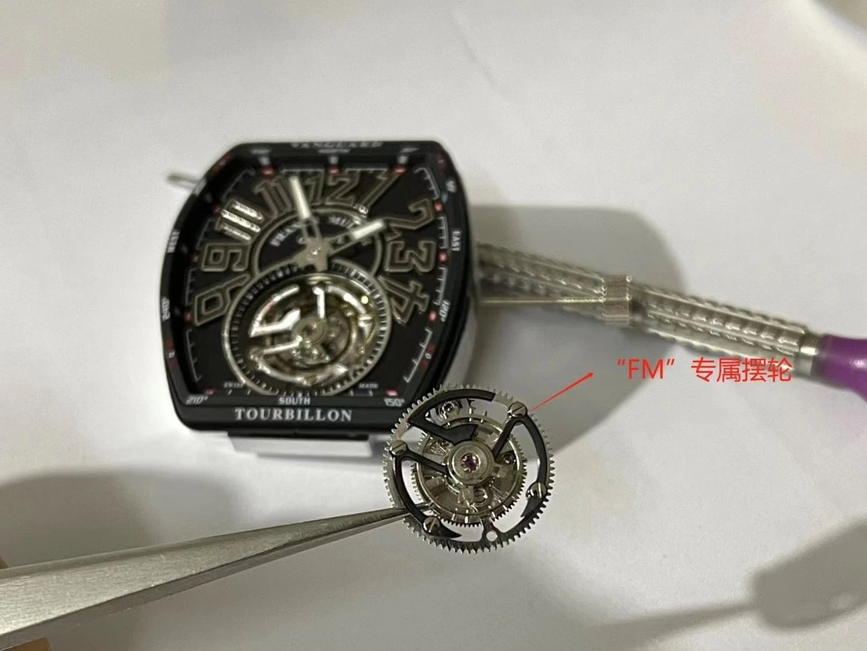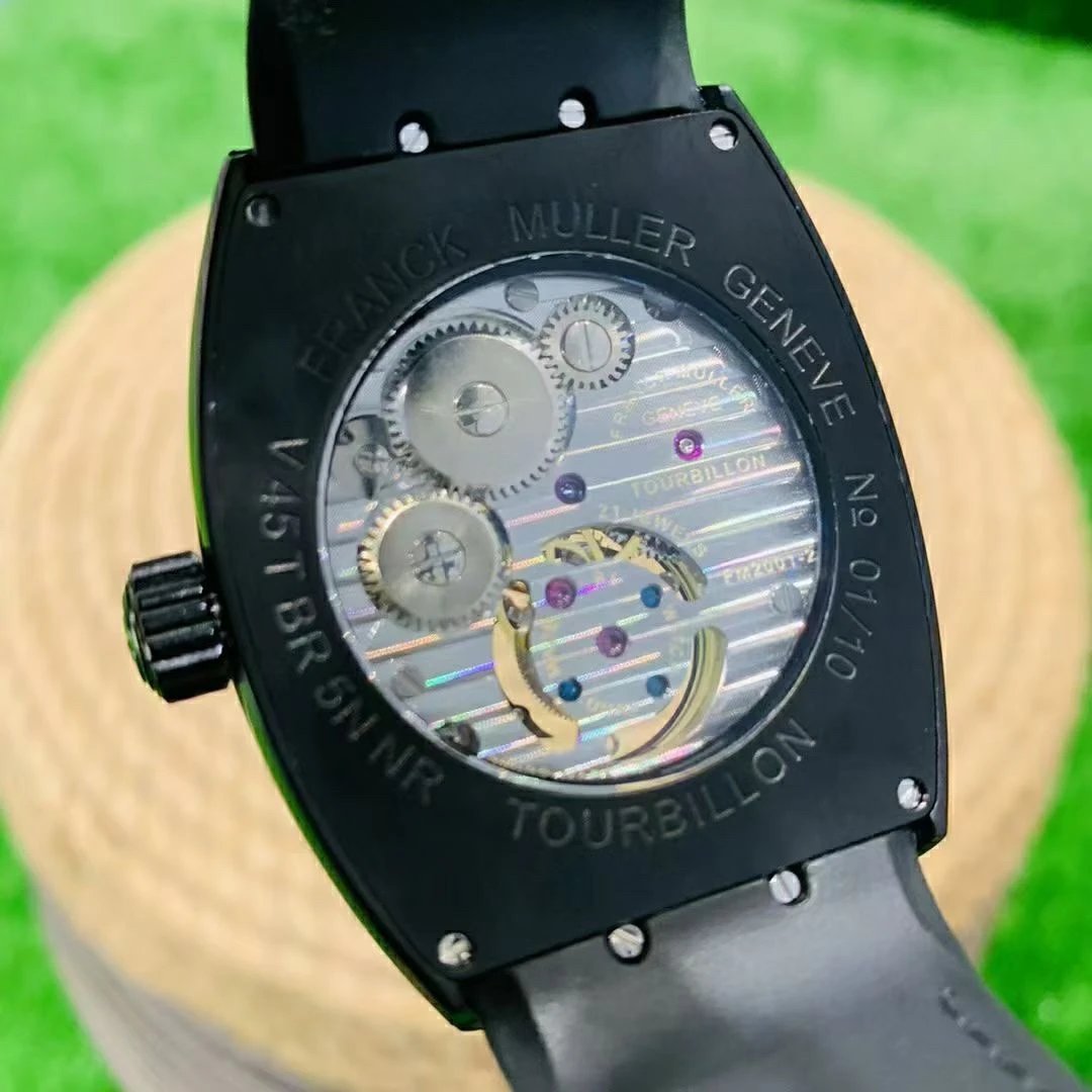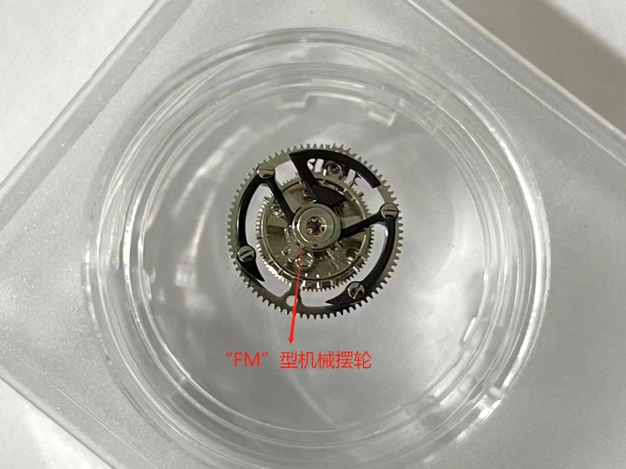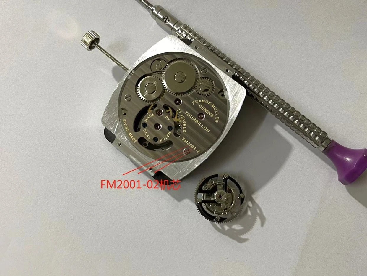 複刻原裝一致FM2001-02 手動機械機芯和定制"FM"型專屬擺輪。機芯印有品牌標誌,飛輪△旋轉帶秒針讀數,經典桶型表殼連接一整塊高通透雙橋藍寶石玻璃,透視底蓋可見機械齒輪運轉。值得入手和收藏的一款陀飛輪腕表。