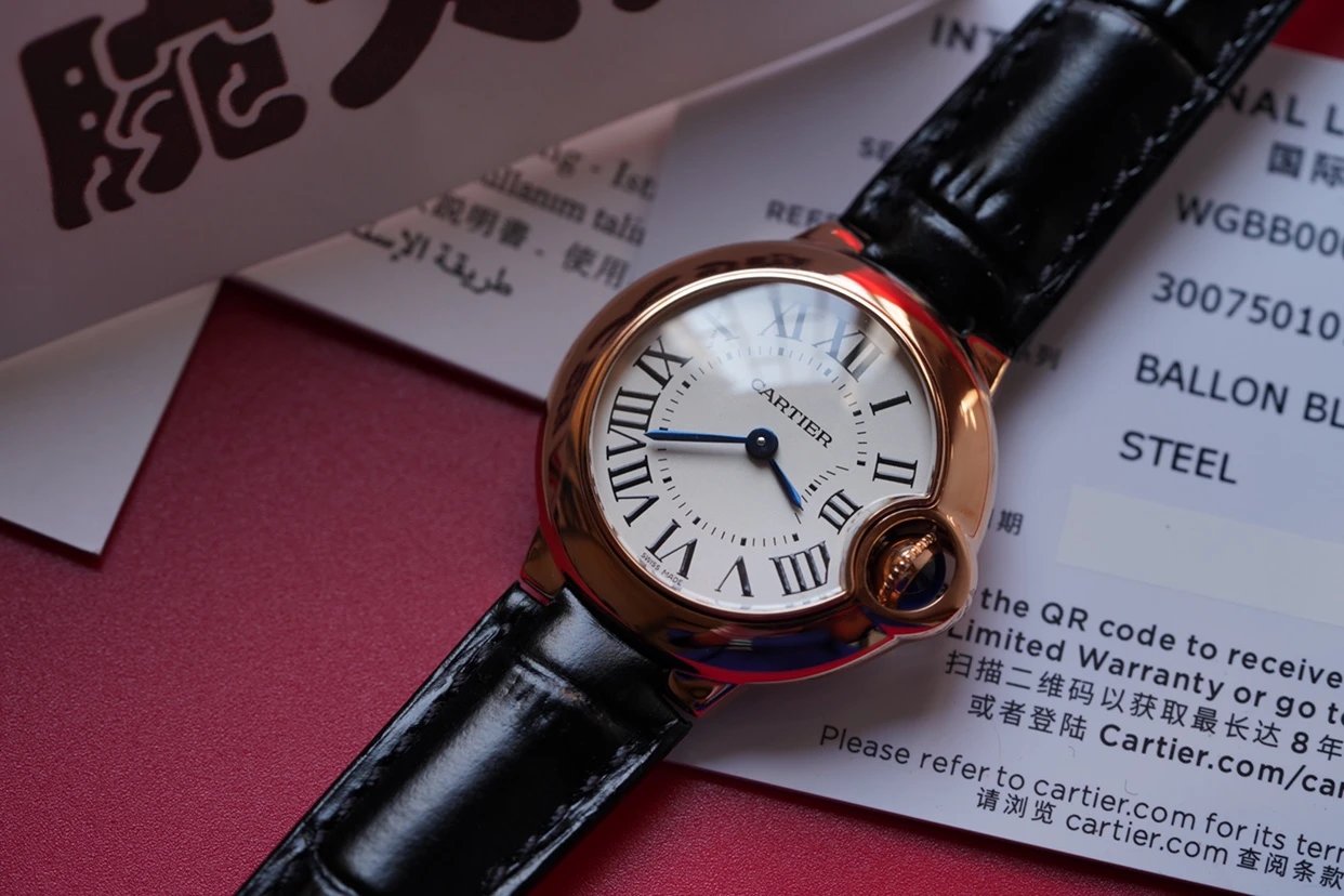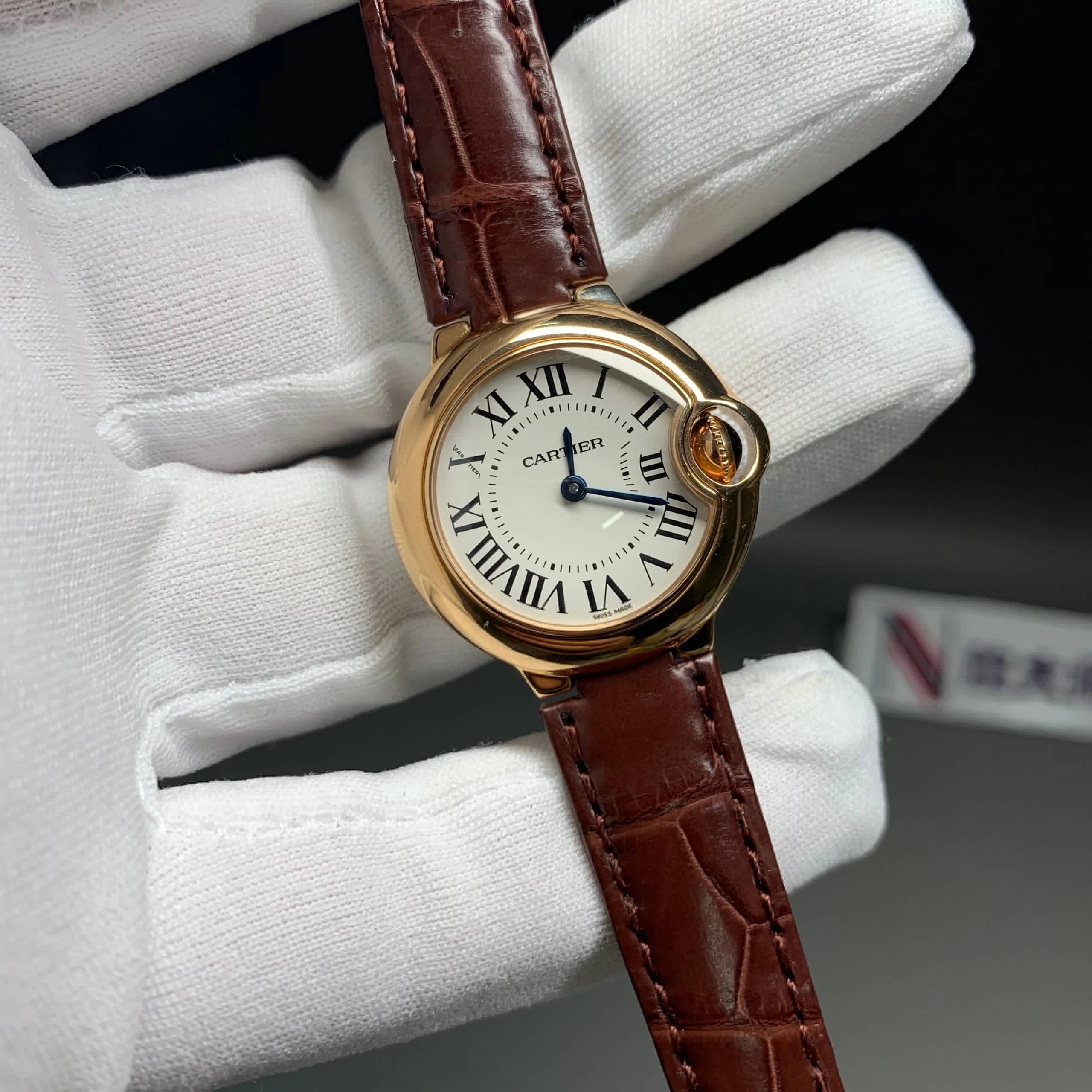 V6廠最高版本玫瑰金小號藍氣球28mm,玫瑰金女士腕表 鱷魚皮錶帶