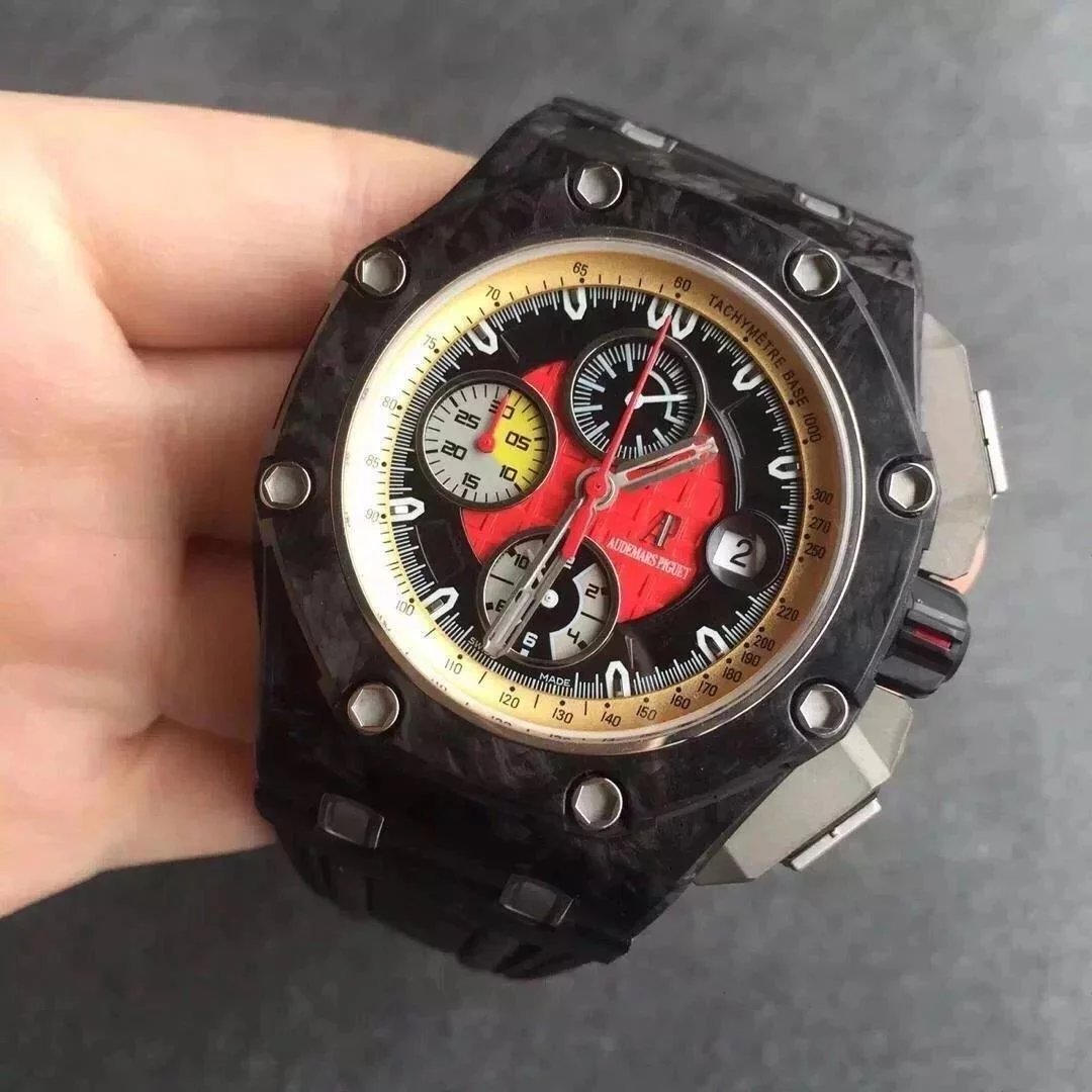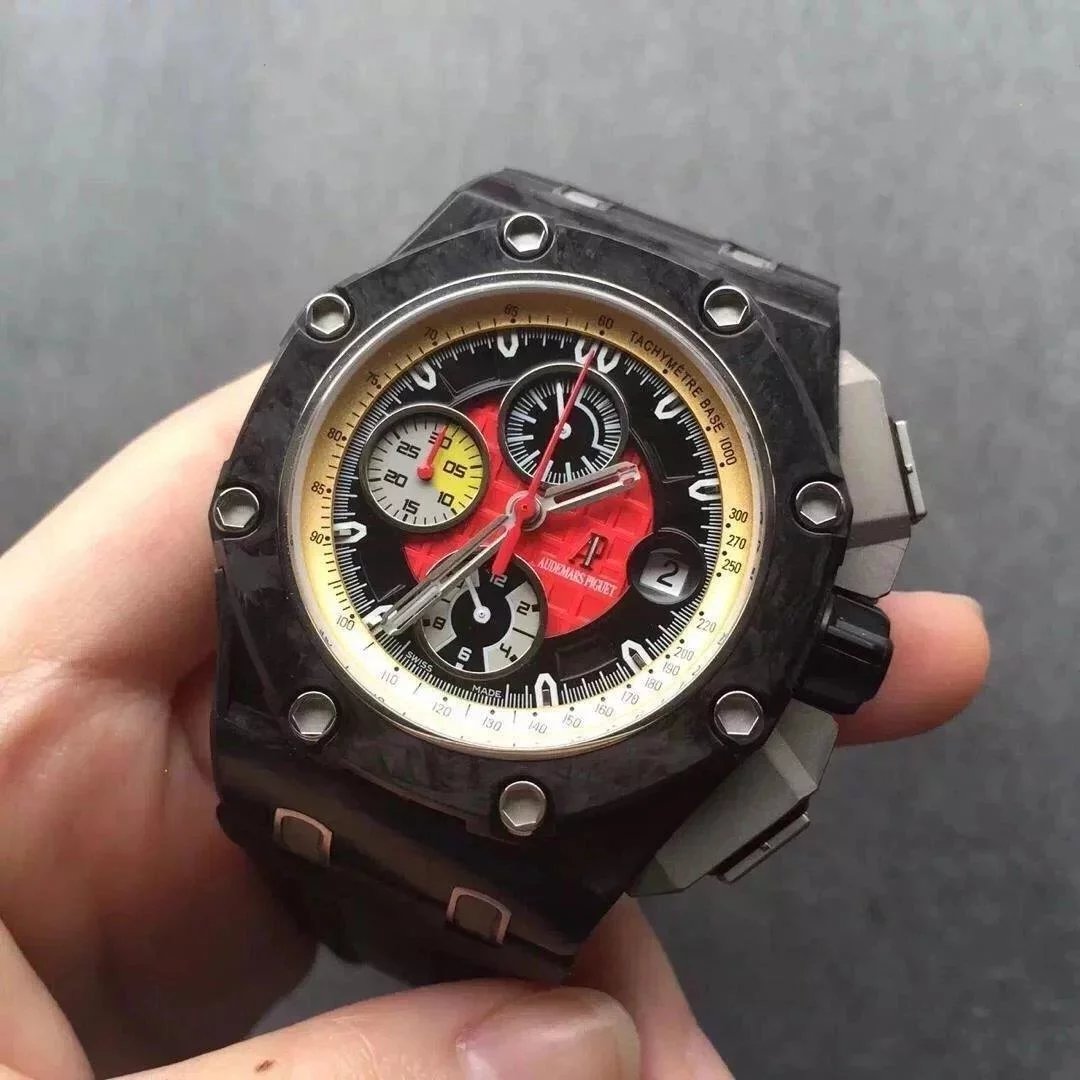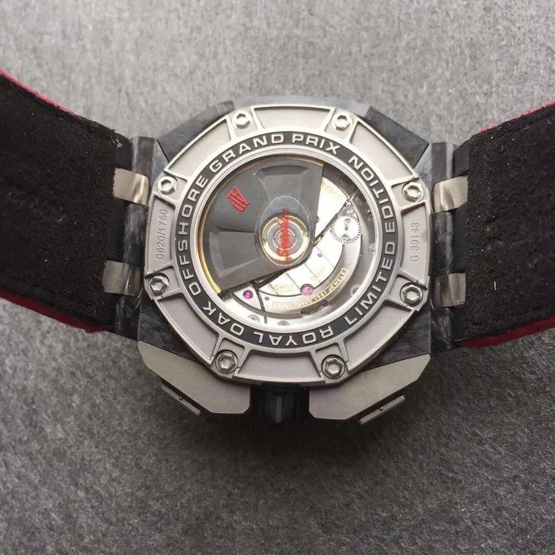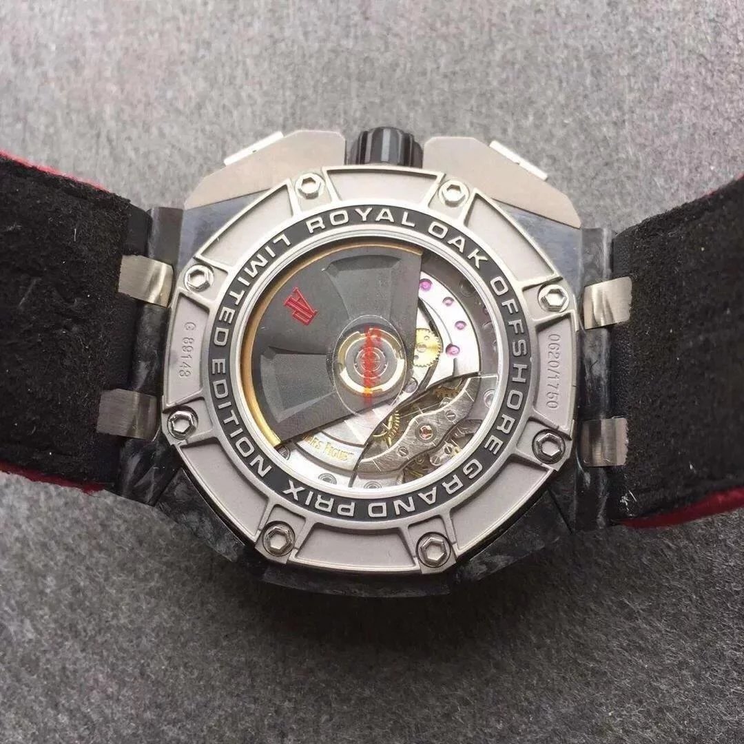 AP 愛彼 皇家橡樹離岸型GrandPrix系列鍛造碳表殼, JF廠 出品,44x16mm,7750改cal.3126自動機械計時機芯,鍛造碳表殼,藍寶石鏡面,牛皮錶帶,針扣,防水50米