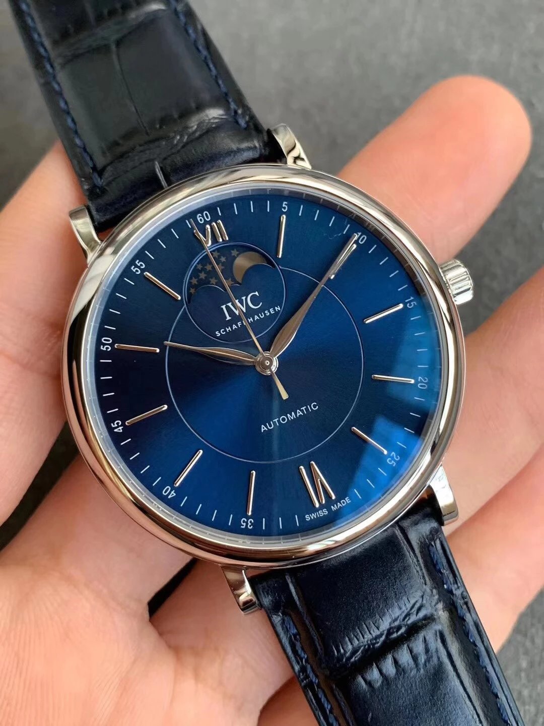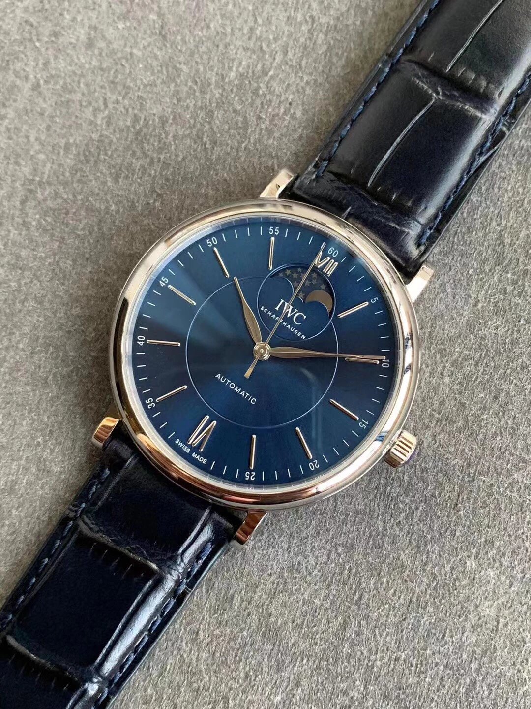 奢表庫小林對 MKS萬國柏濤菲諾系列IW459402月相藍盤皮帶男士機械手表 一比一複刻表 圖文評測