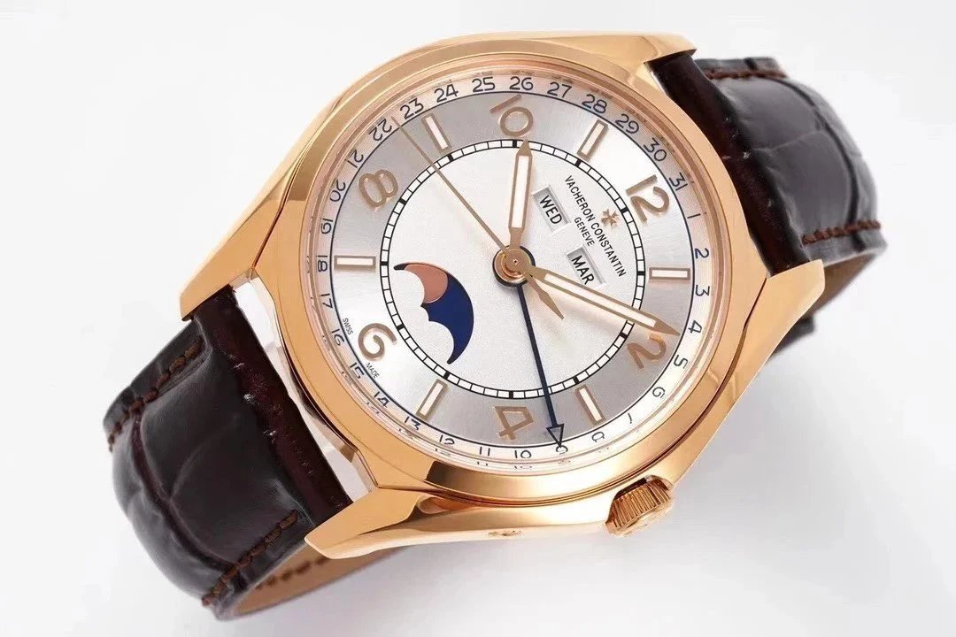 ZF廠江詩丹頓伍陸之型系列4000E/000R-B438金色白盤月相皮帶男士機械表
