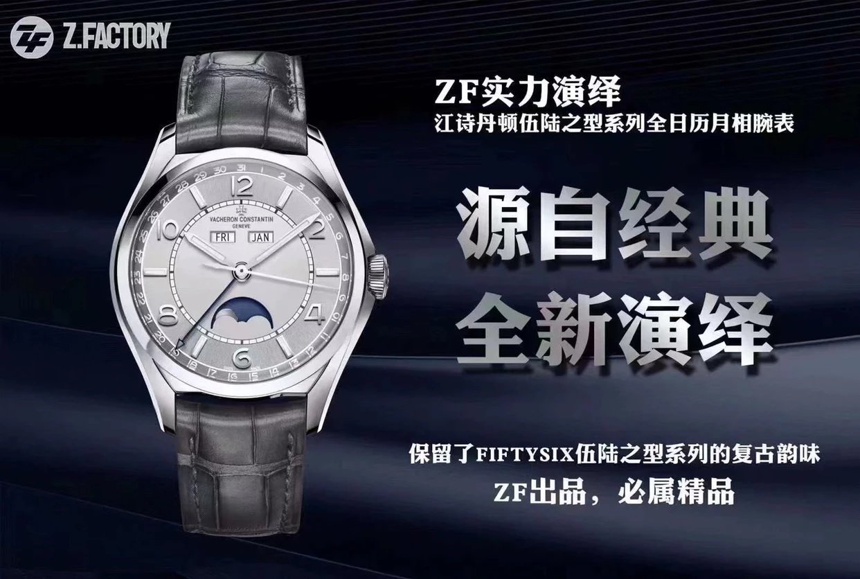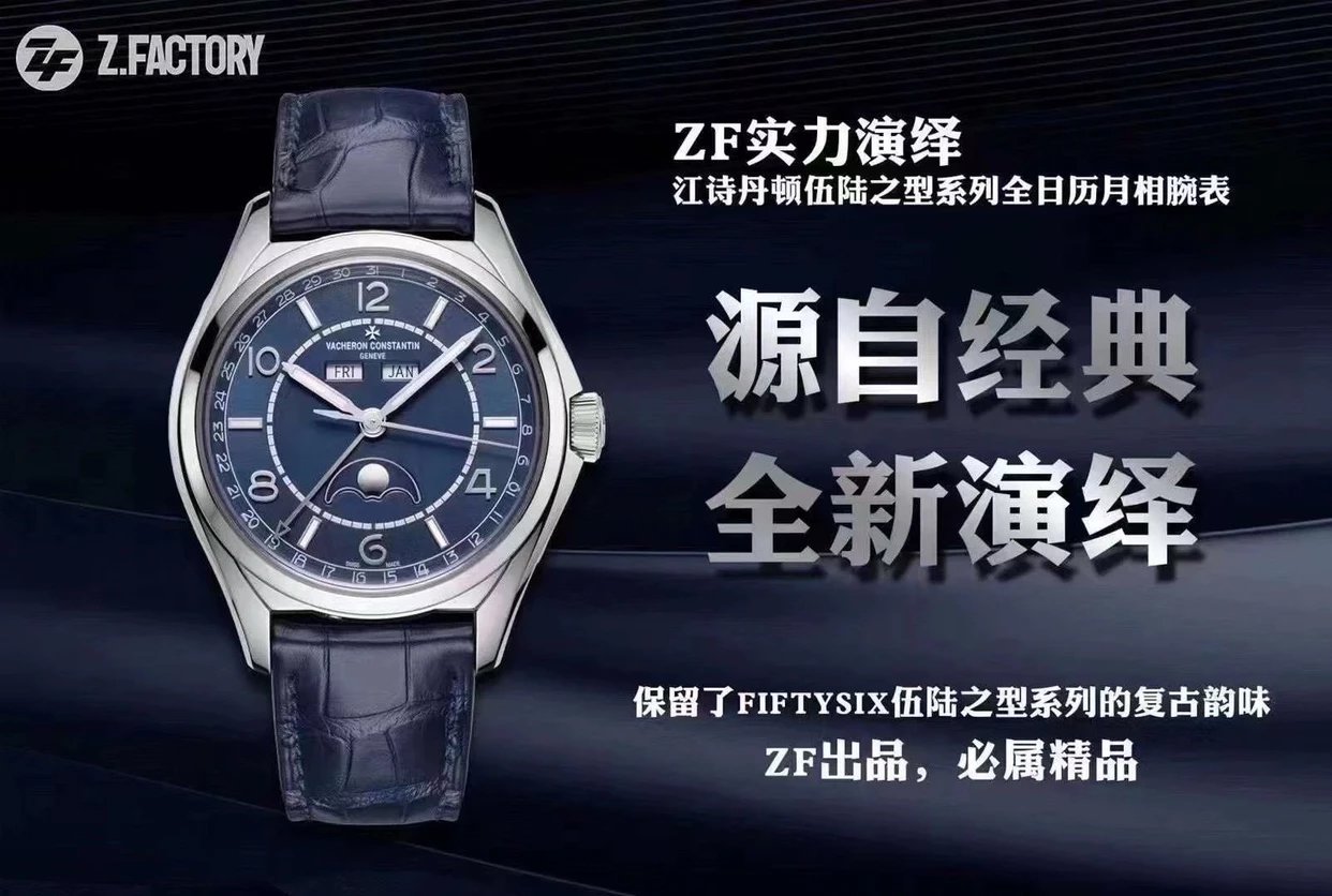 【 ZF廠 出品】 江詩丹頓 伍陸之型系列全日曆月相腕表,穩重優雅,尺寸吻合原裝,40x11.6mm,定制2460 QCL/1自動上鏈機芯,316精鋼表殼,藍寶石鏡面,夜光錶盤指針,鱷魚皮錶帶
