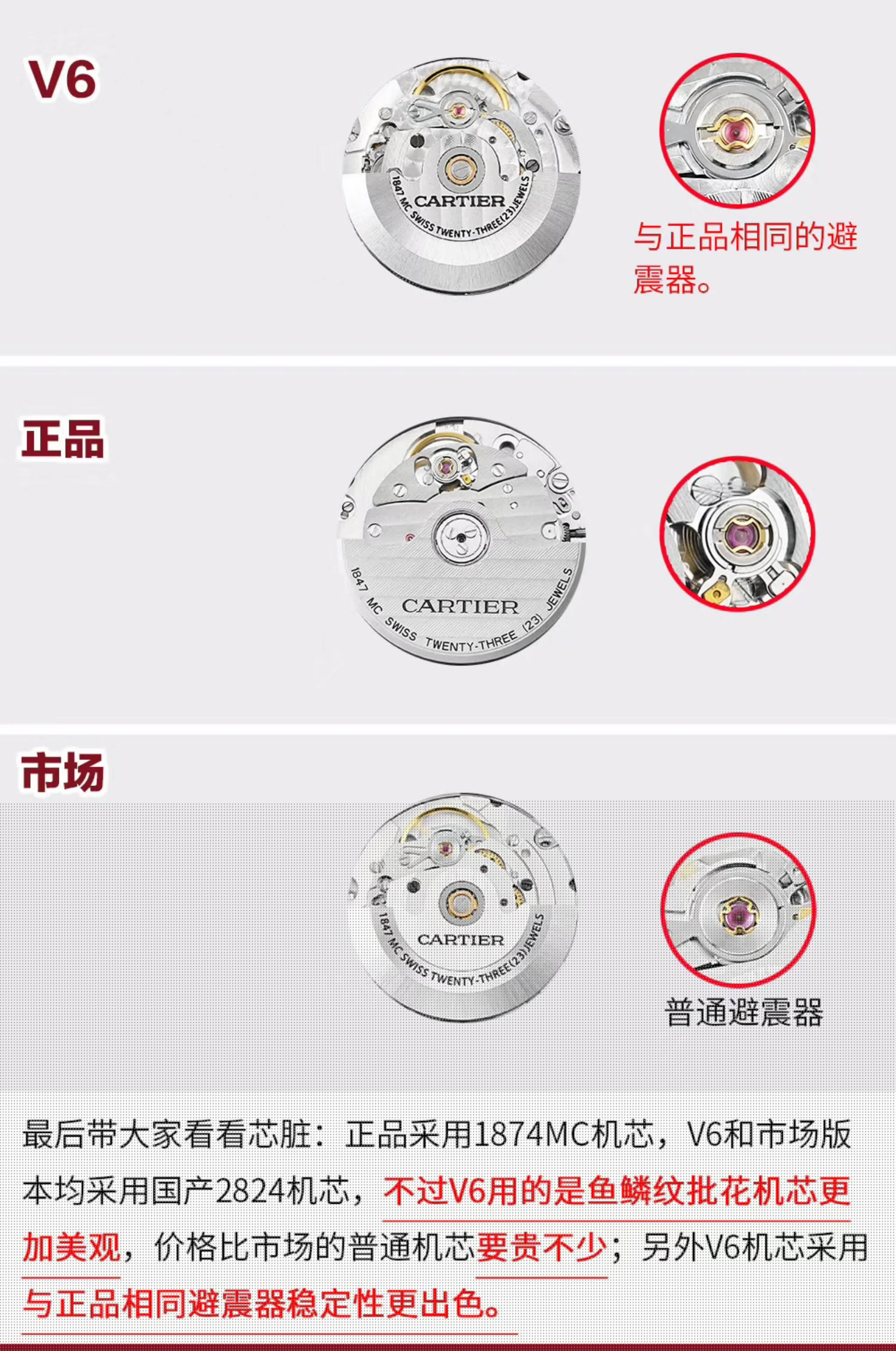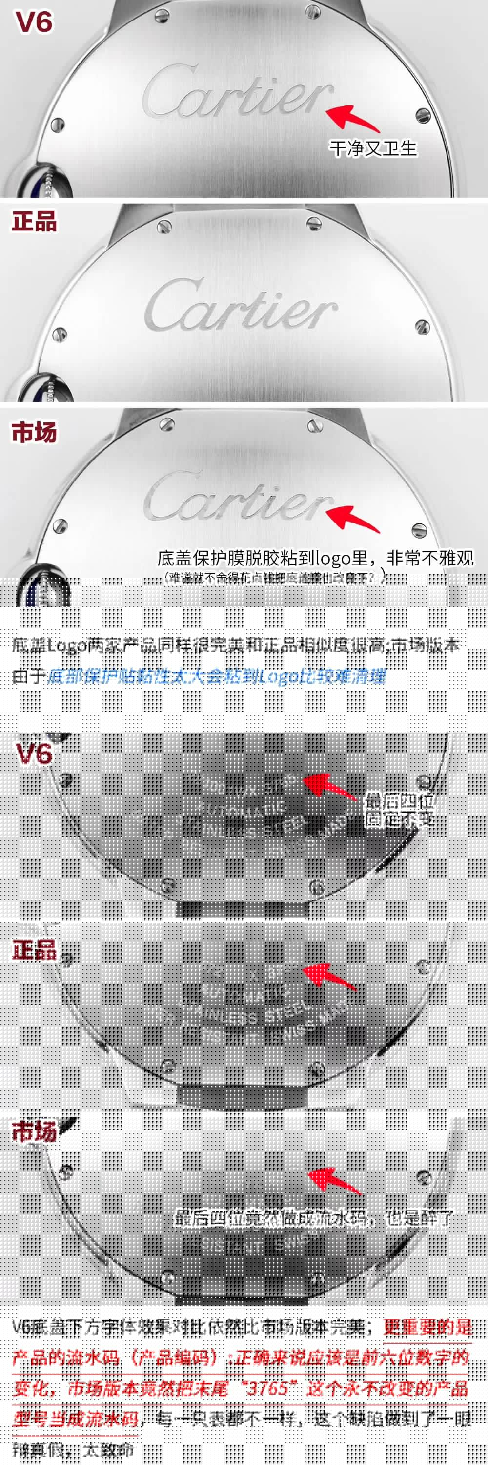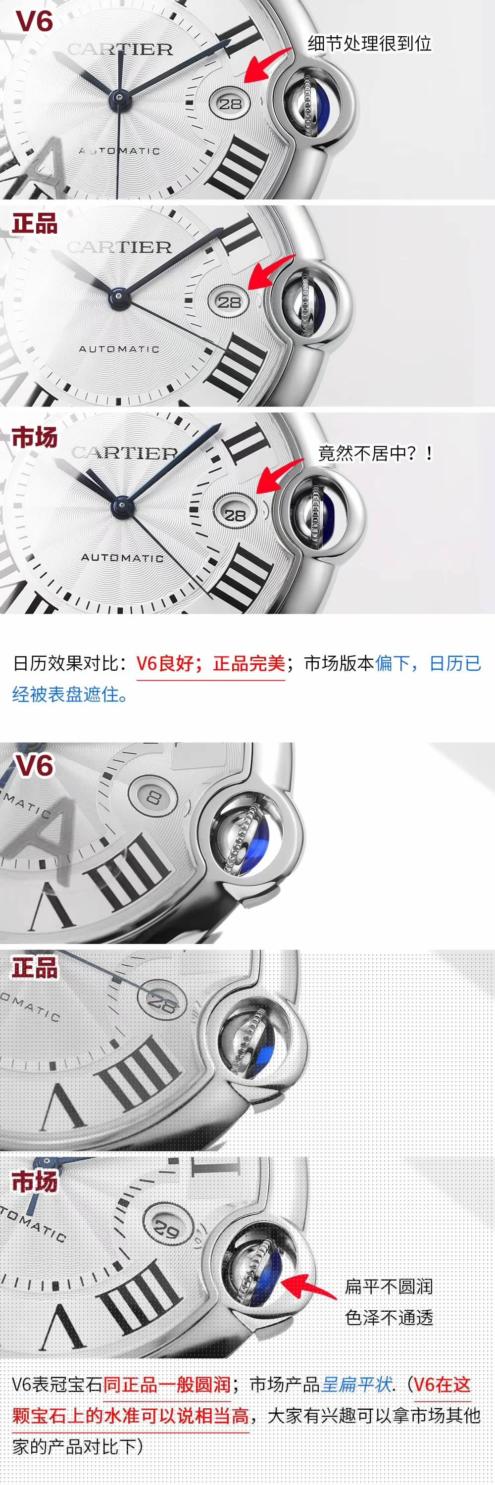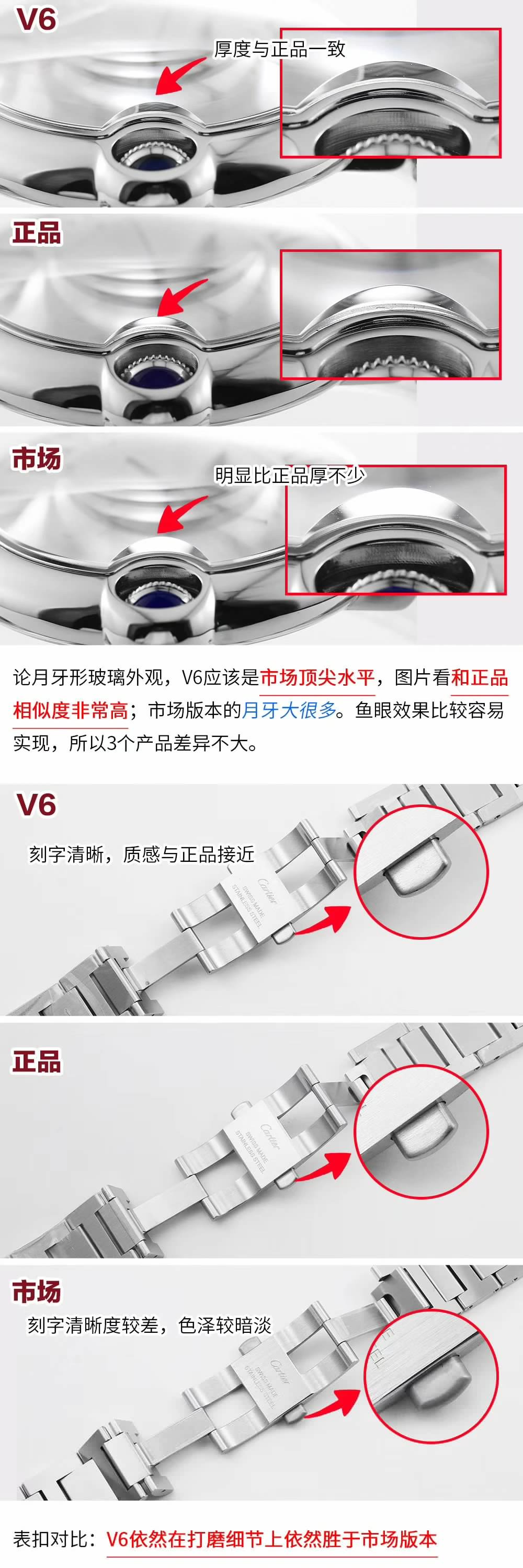 表殼鏡面:V6廠卡地亞藍氣球V4版本的鏡面一樣採用藍寶石鏡面,這一點在目前的