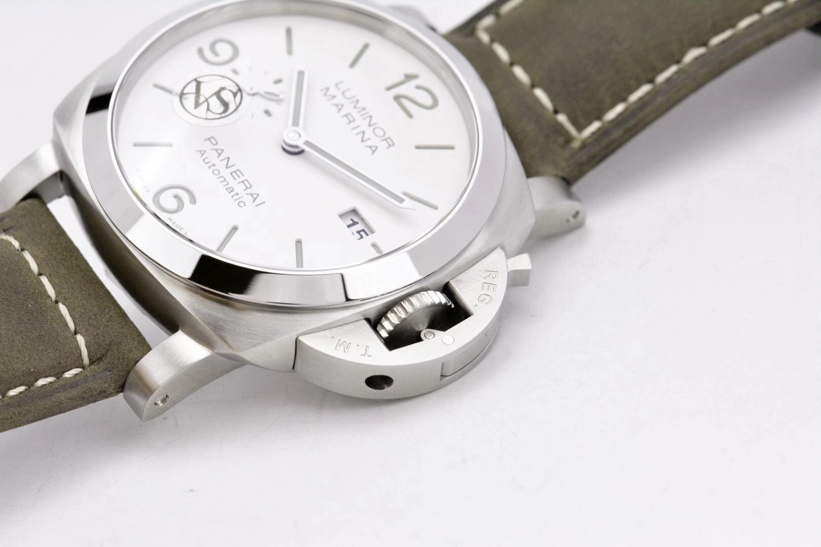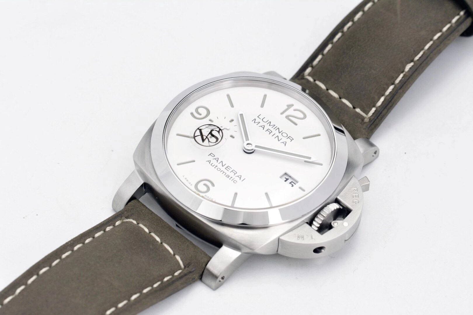 VS新品:沛呐海首款“白馬王子”44毫米PAM 1314 ,勞力有Daytona,沛呐海有1314,白色磨砂面盤,乾淨俐落!三文治錶盤綠色夜光讓人震驚的極簡主義。