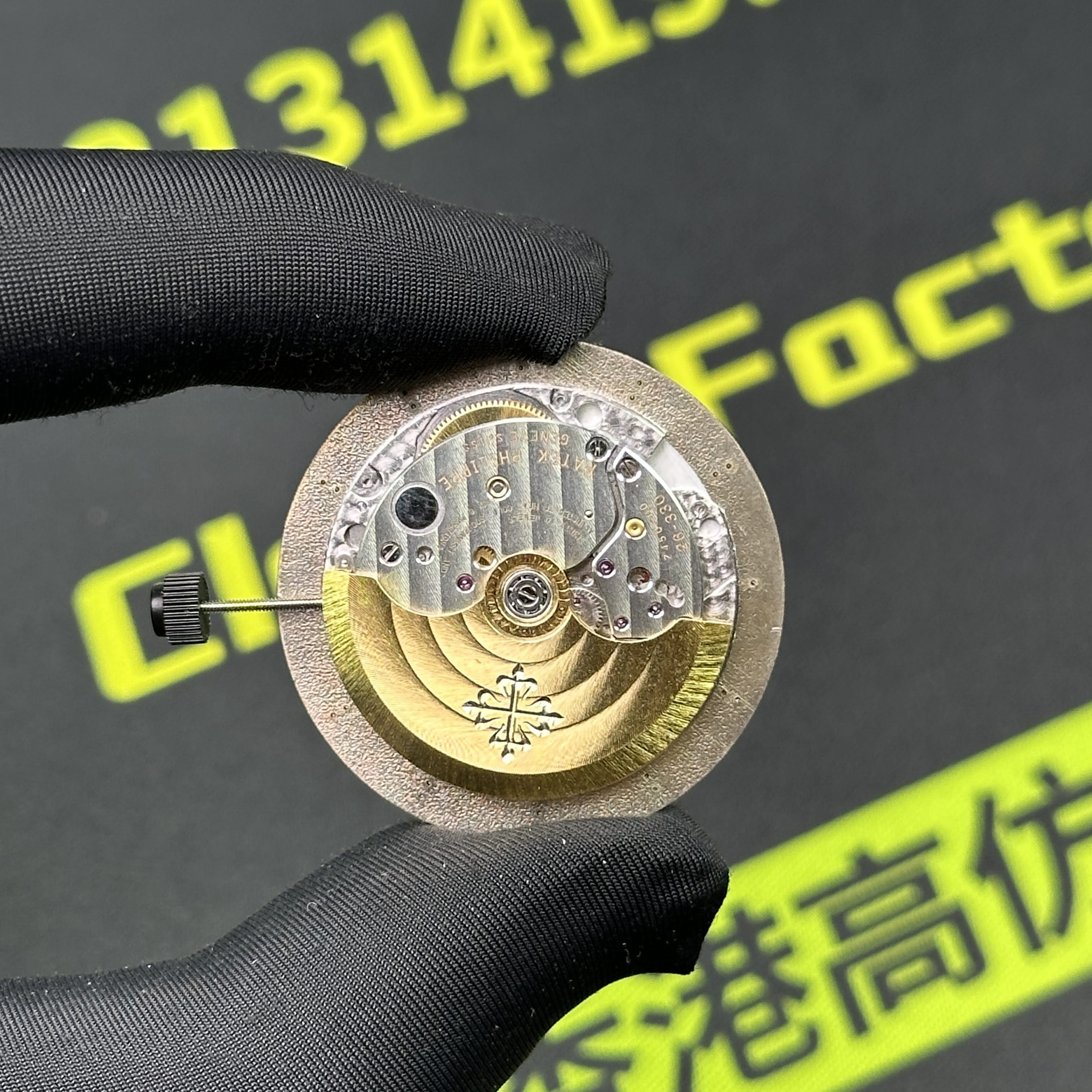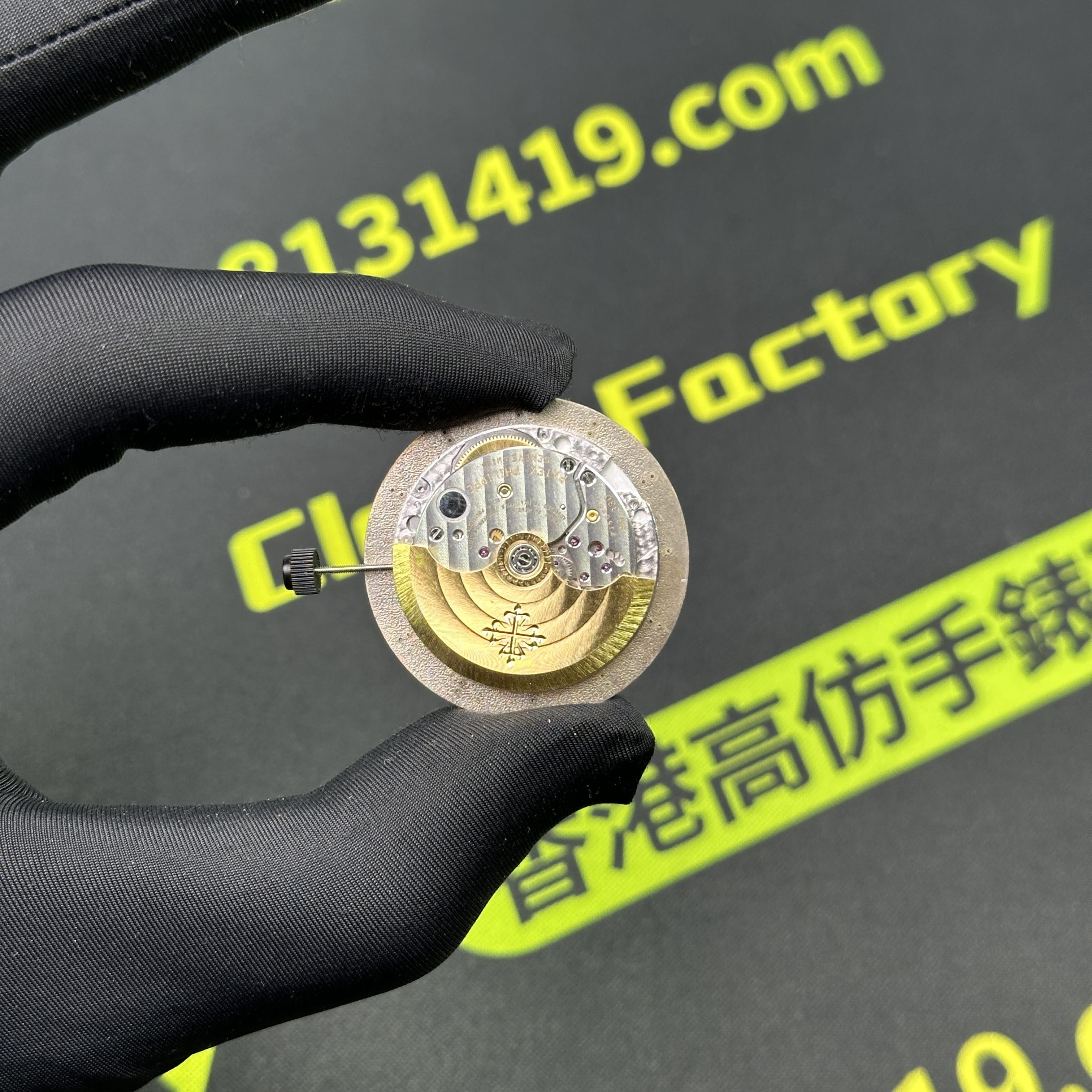 此次根據錶友的需求訂製的厚金工藝,以5層/50CC進行包金,做到對應的厚薄度以及對應的無色差白金效果.具有一定的閃度,同時佩戴出門以及社交應酬都不必擔心一眼假!原裝正品搭載了26-330機芯,因此3K廠後續也是升級了一體26-330機芯.只不過這一枚機芯甲板的刻度字體Patek Philippe以及相關字面都是激光打印,色澤比較淺,並且清晰度不夠!而我們很對3K廠5168私人訂製使用的一體26-330機芯是後期專業雕刻工藝,做到每一個字面,大小,深度,填充效果都是非常接近原版機芯甲板的刻度