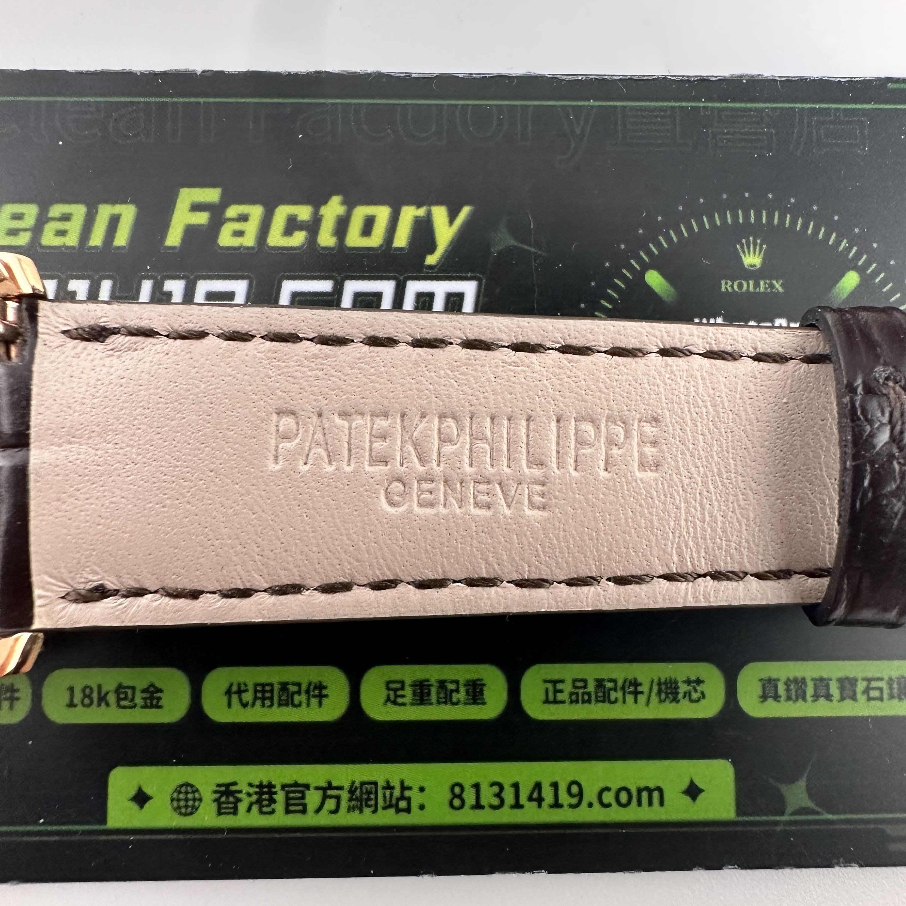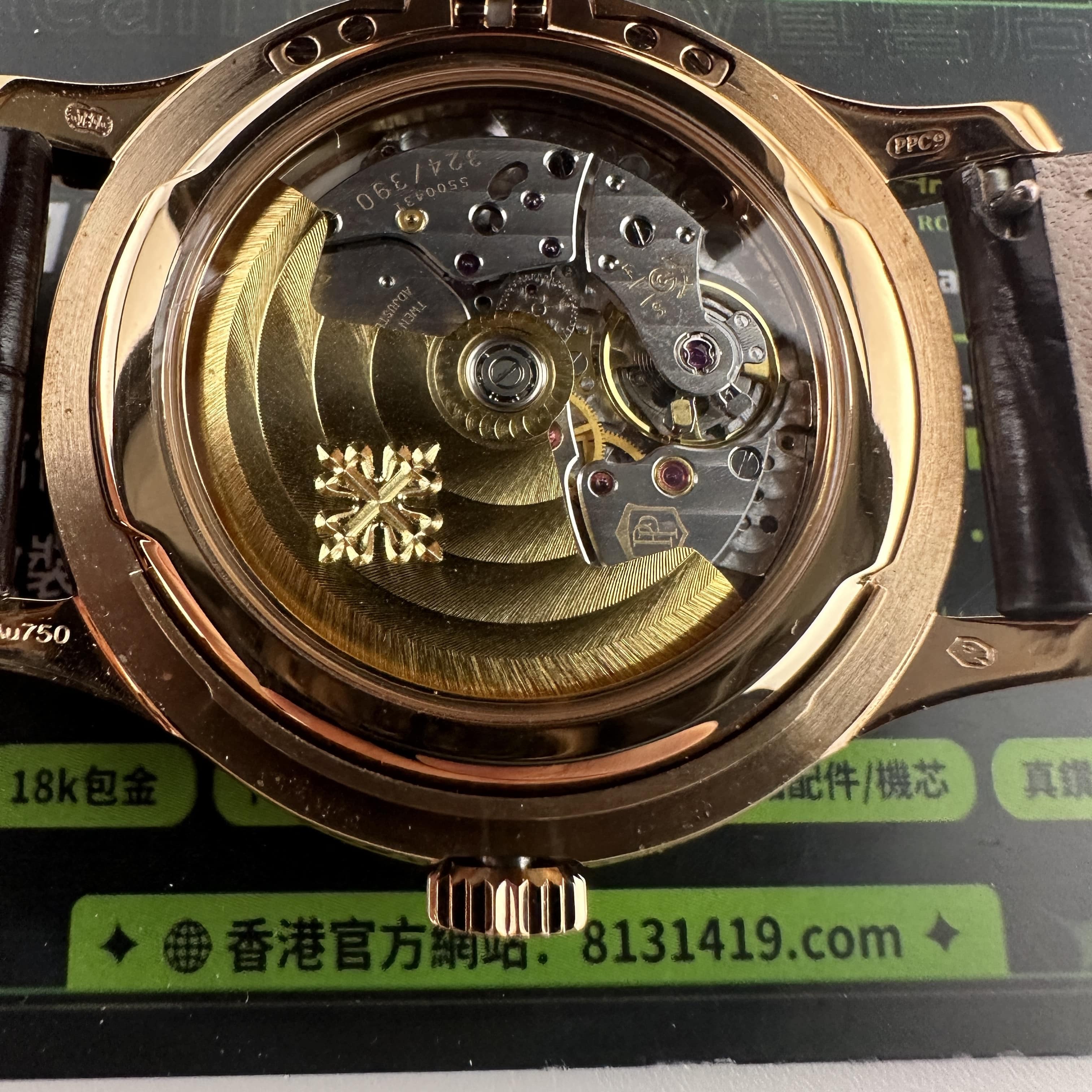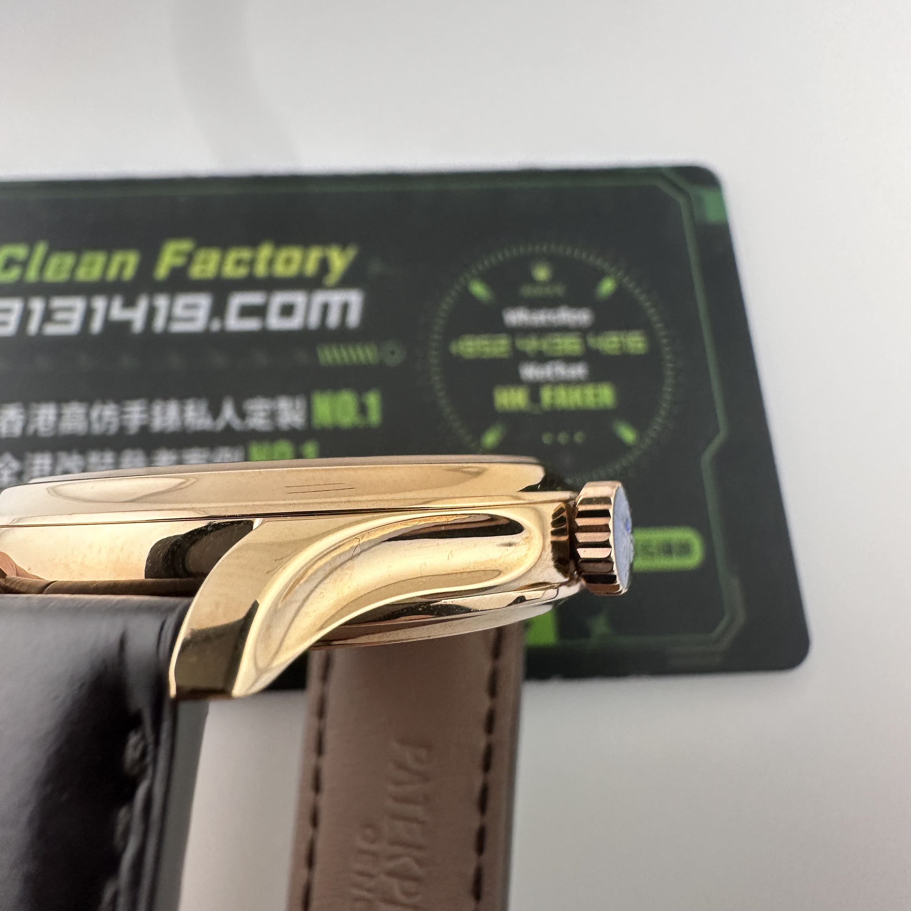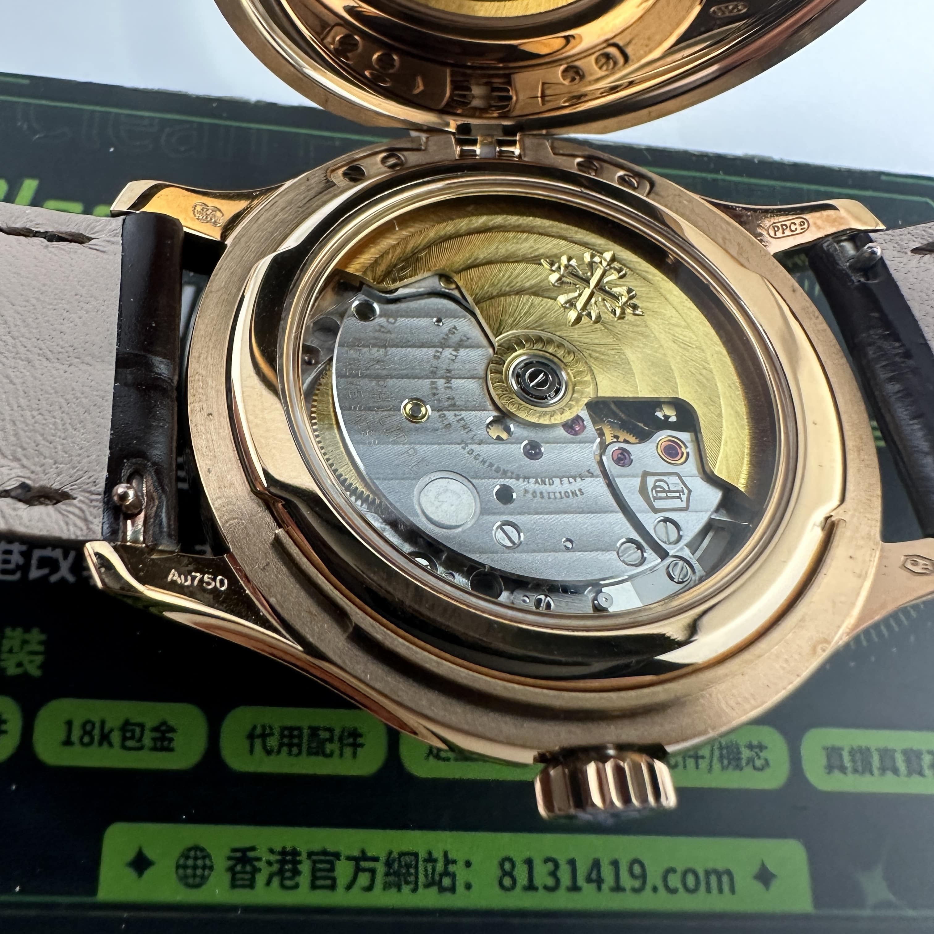 錶盤呈現米白,並非全白色效果,由於古典錶並未涉及到夜光塗層,盤面時間辨識是通過金屬條丁構造而成.每一個條丁3K廠PP5227均是獨立打磨,拋光,做到質感同步原版一致.其次是盤面並未涉及到複雜的功能,調校時間以及日曆.印刷字面居中,雙數單數都是符合原版品質需求.最後則是底蓋部分3K廠古典錶同步原版一致配置將軍蓋,精度神似一面鏡子,同時可以看到背透式的Cal.324機芯.