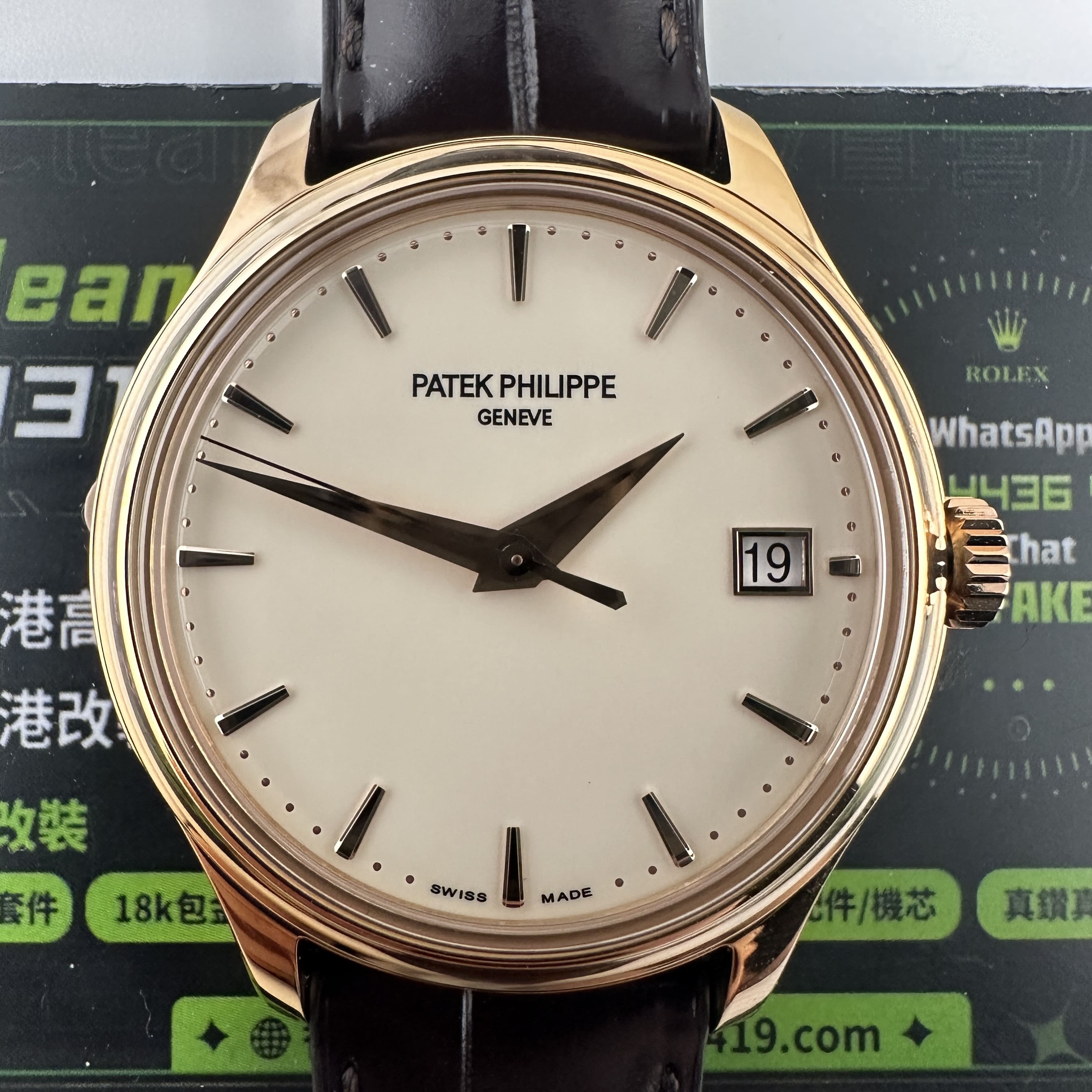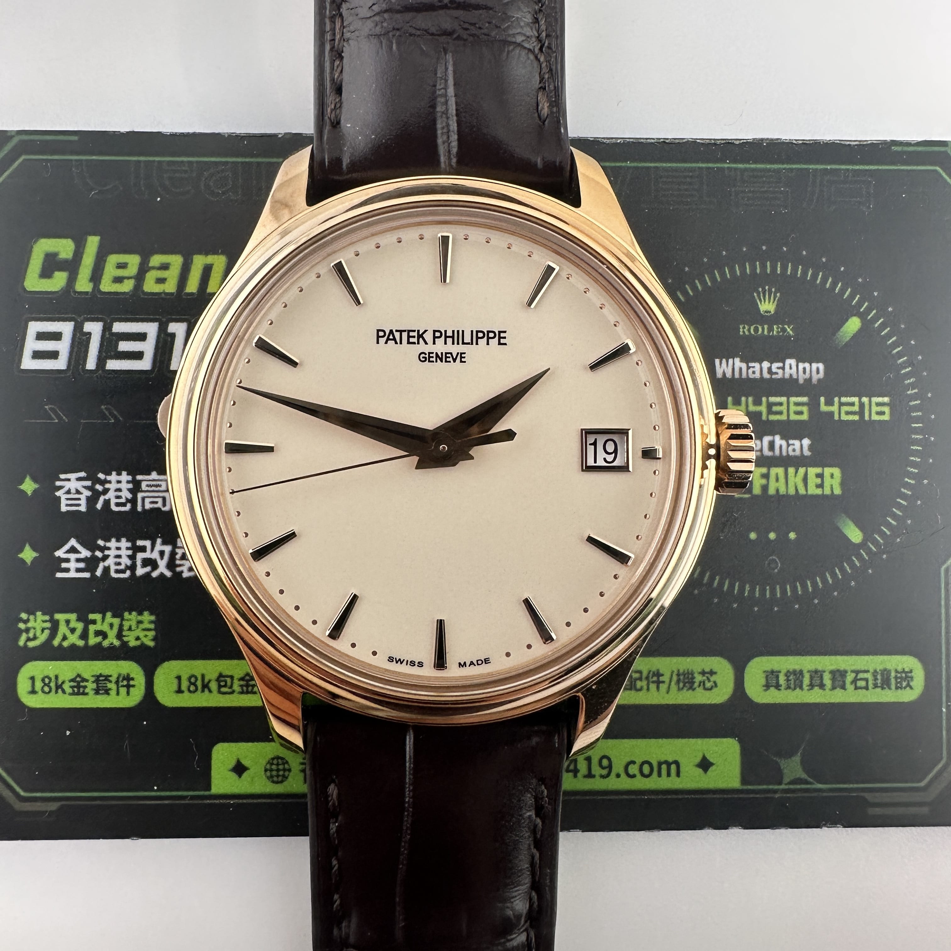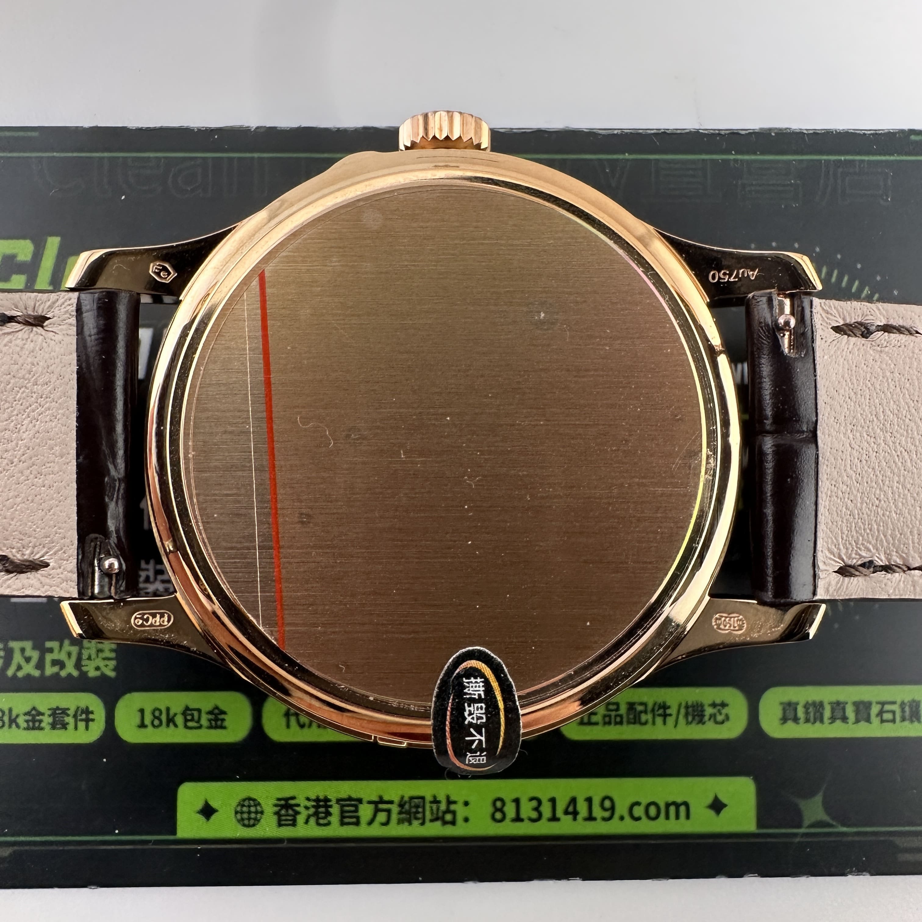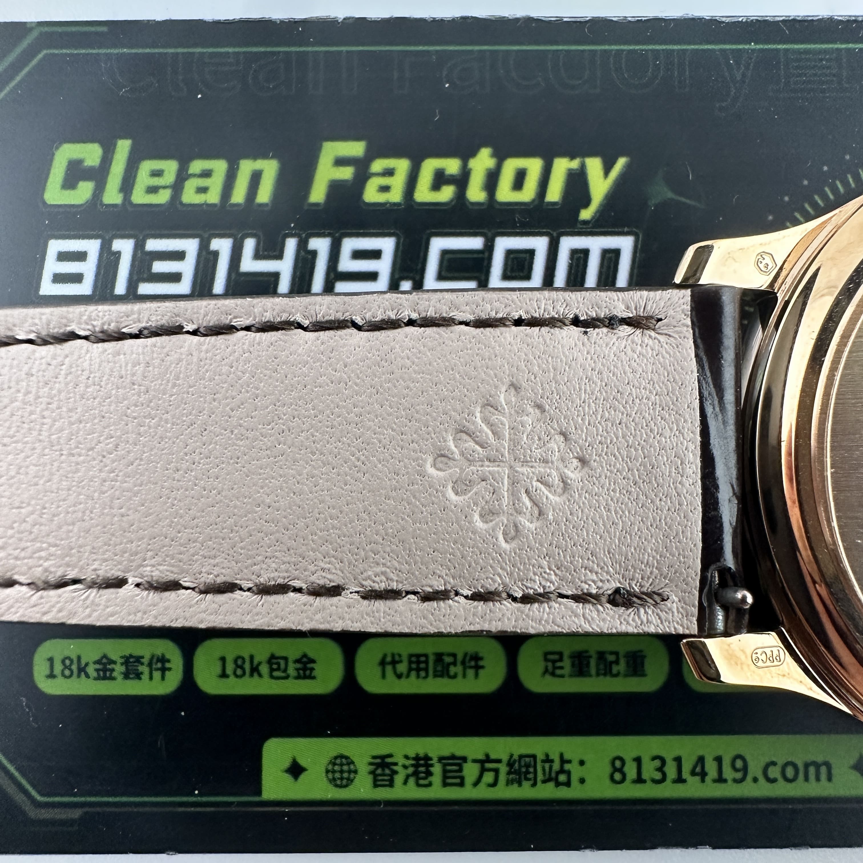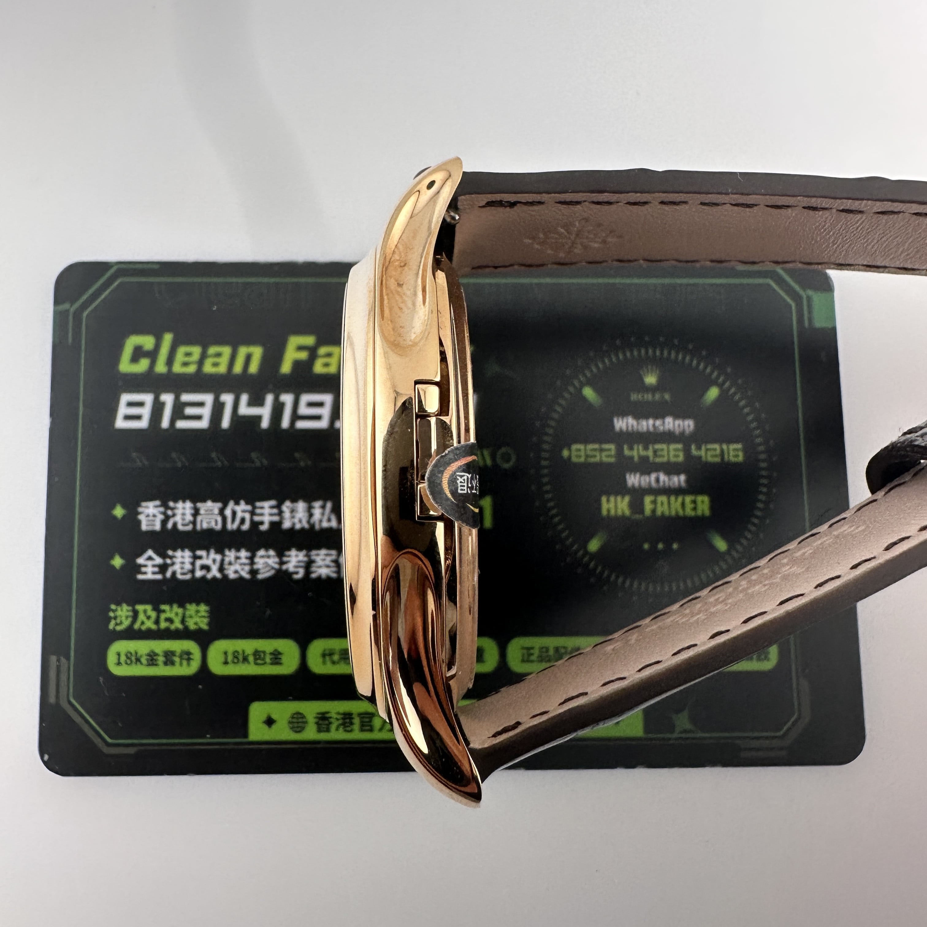 錶盤呈現米白,並非全白色效果,由於古典錶並未涉及到夜光塗層,盤面時間辨識是通過金屬條丁構造而成.每一個條丁3K廠PP5227均是獨立打磨,拋光,做到質感同步原版一致.其次是盤面並未涉及到複雜的功能,調校時間以及日曆.印刷字面居中,雙數單數都是符合原版品質需求.最後則是底蓋部分3K廠古典錶同步原版一致配置將軍蓋,精度神似一面鏡子,同時可以看到背透式的Cal.324機芯.
