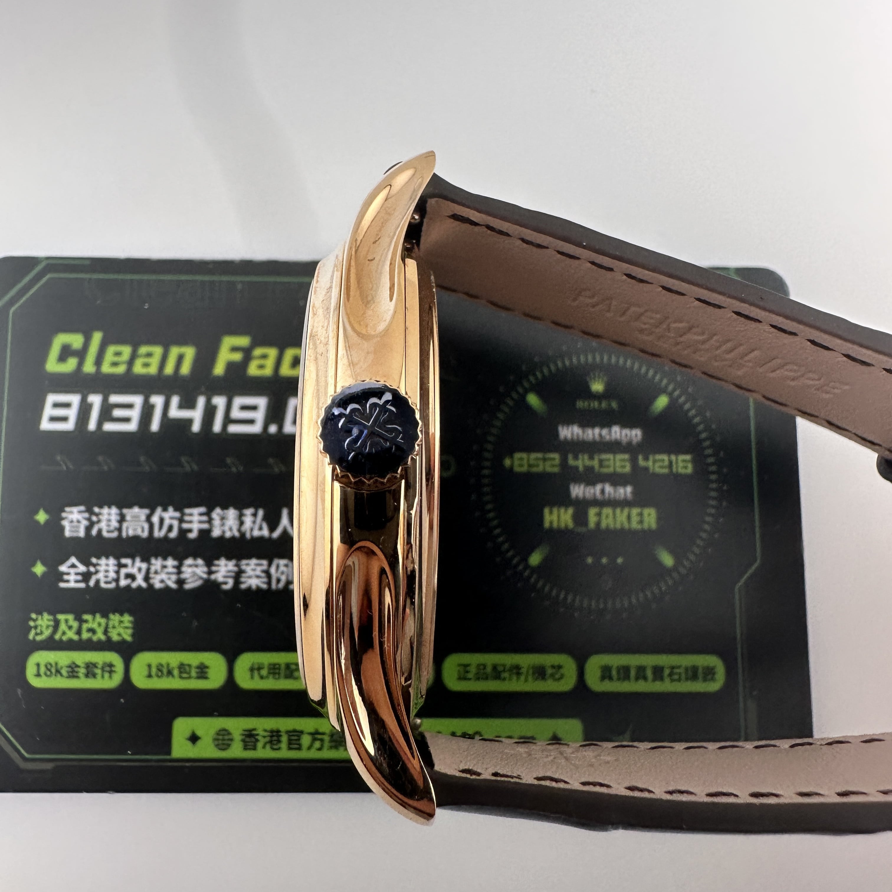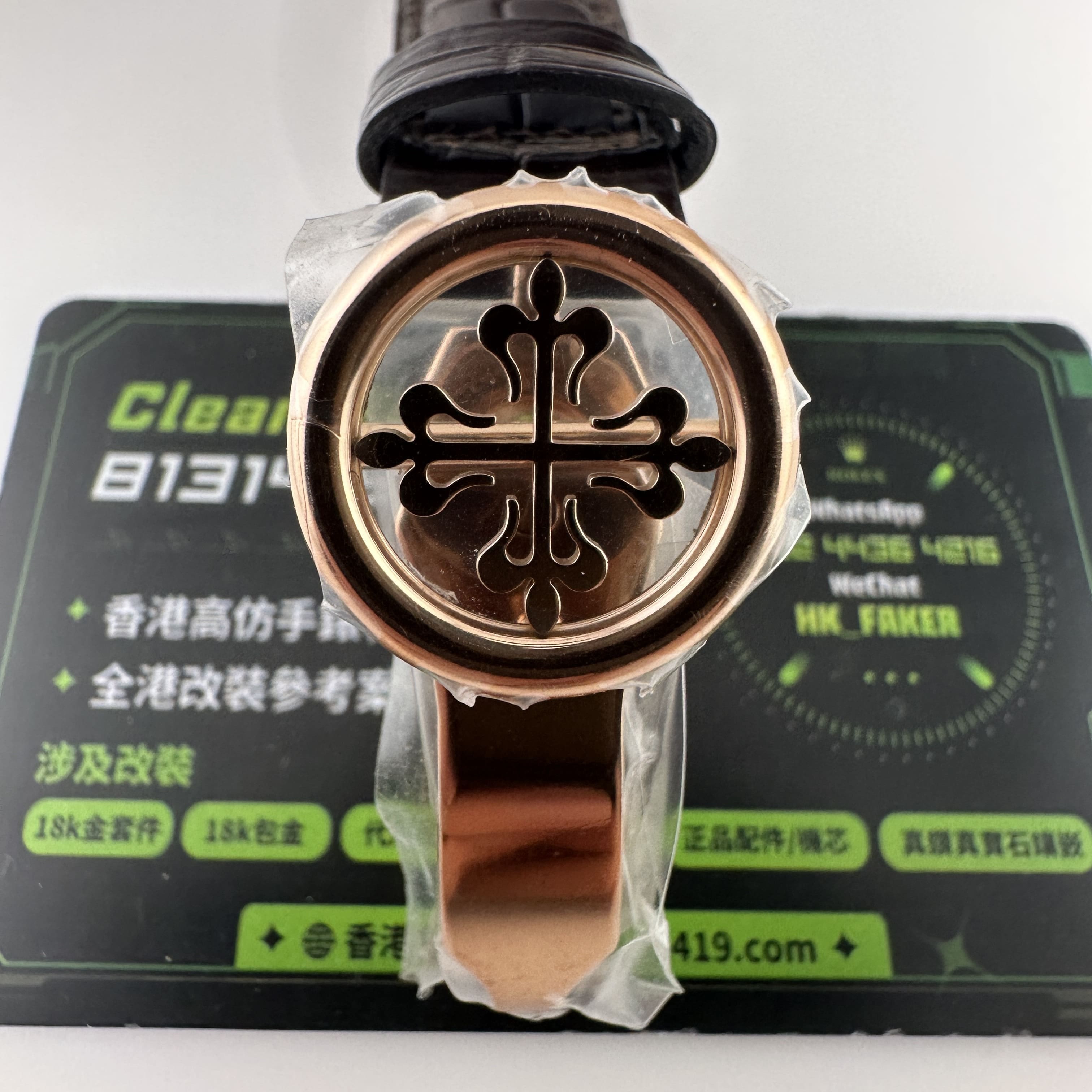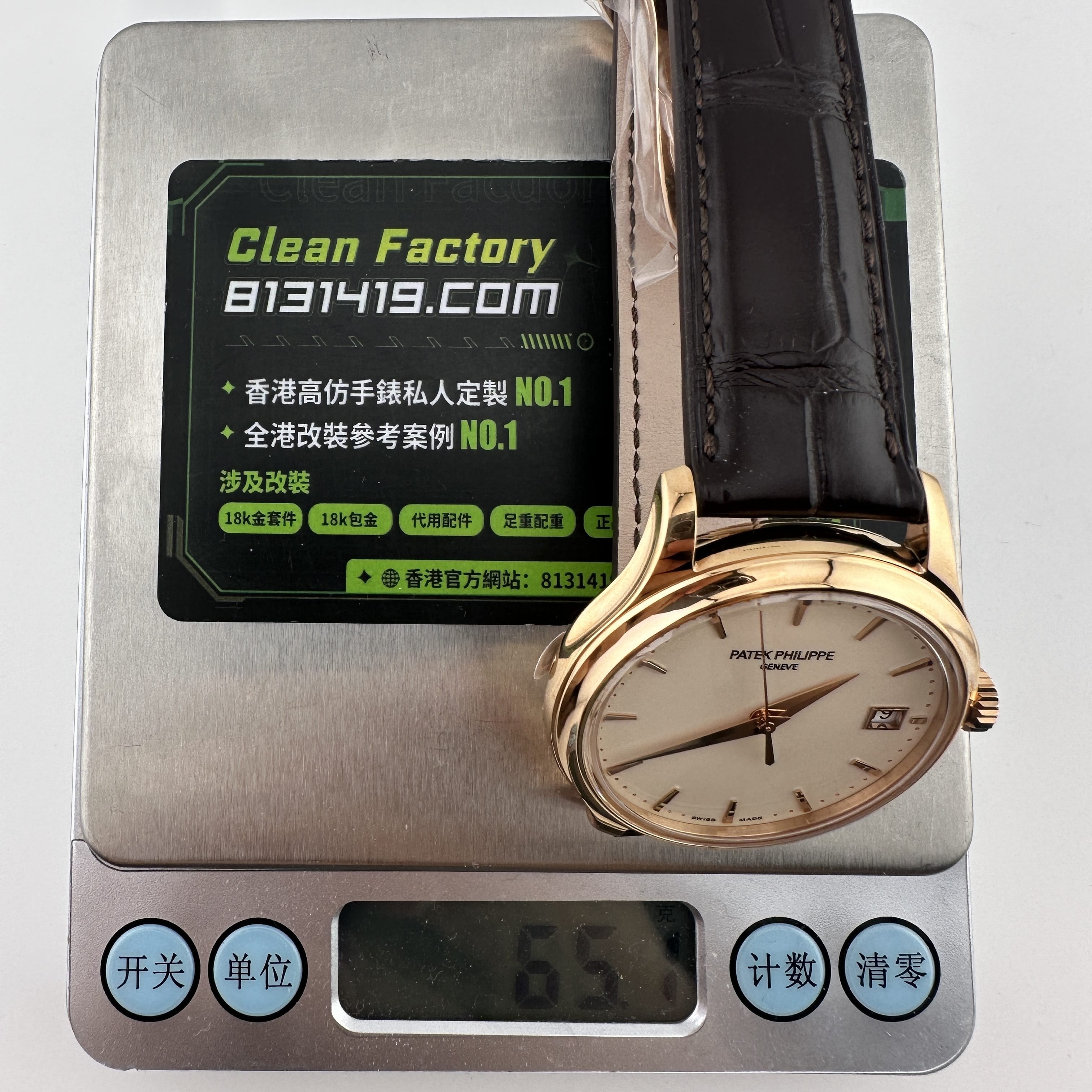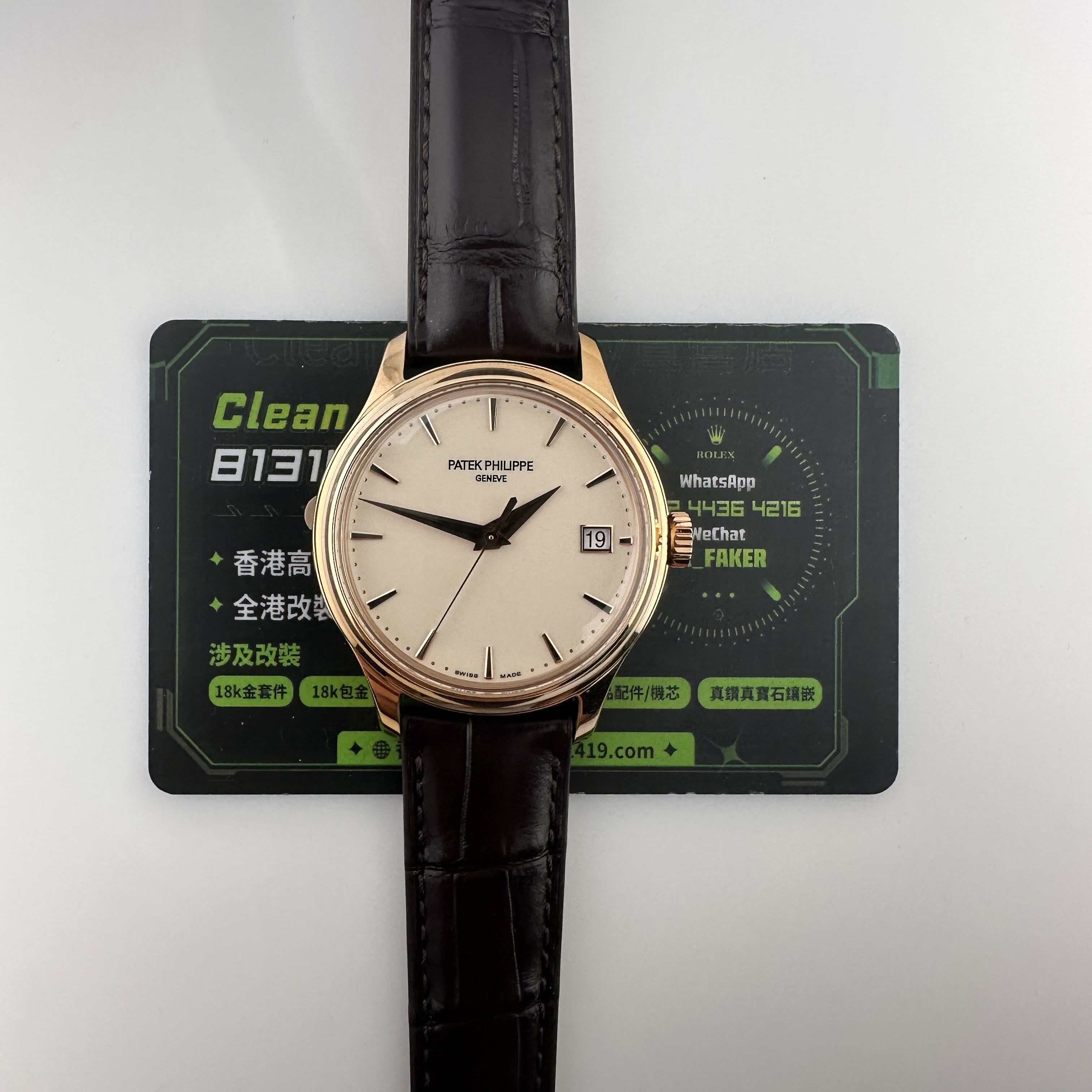 錶盤呈現米白,並非全白色效果,由於古典錶並未涉及到夜光塗層,盤面時間辨識是通過金屬條丁構造而成.每一個條丁3K廠PP5227均是獨立打磨,拋光,做到質感同步原版一致.其次是盤面並未涉及到複雜的功能,調校時間以及日曆.印刷字面居中,雙數單數都是符合原版品質需求.最後則是底蓋部分3K廠古典錶同步原版一致配置將軍蓋,精度神似一面鏡子,同時可以看到背透式的Cal.324機芯.
