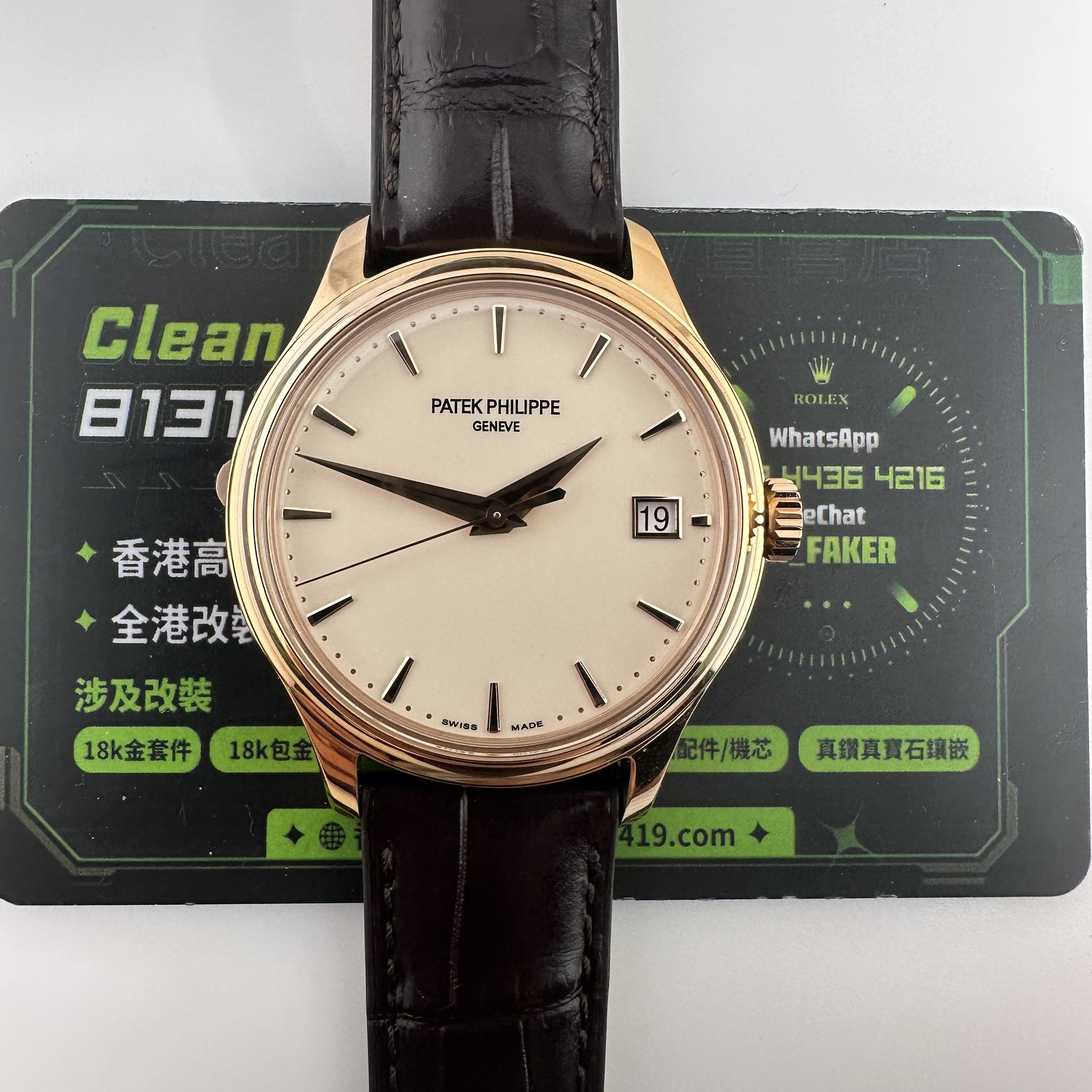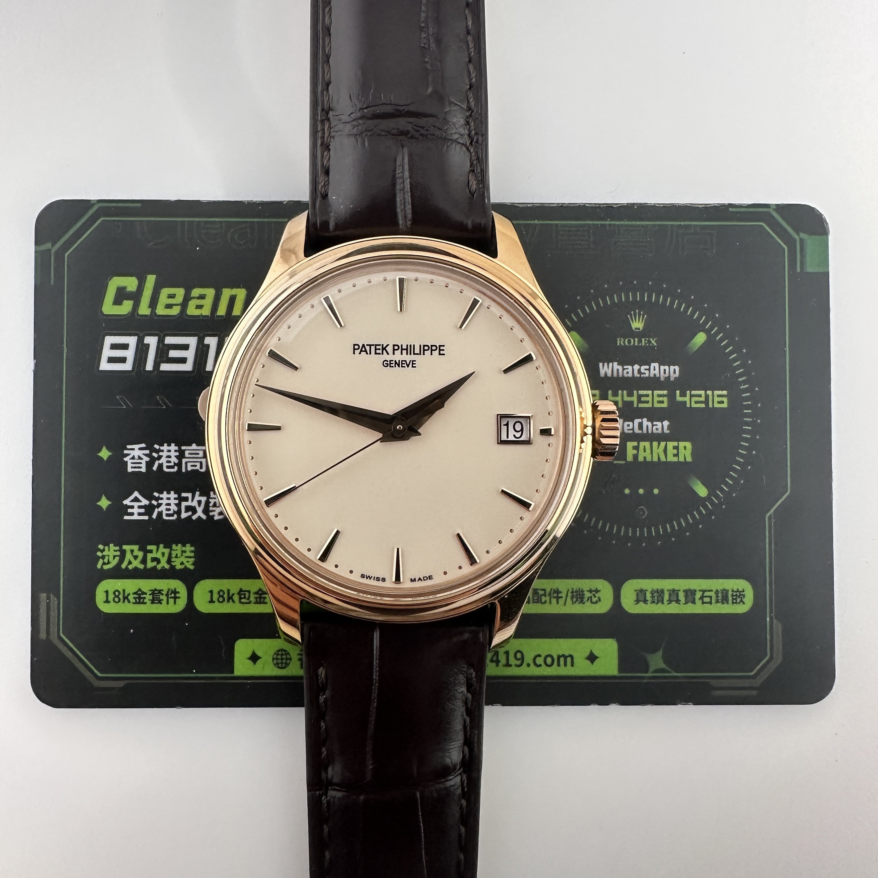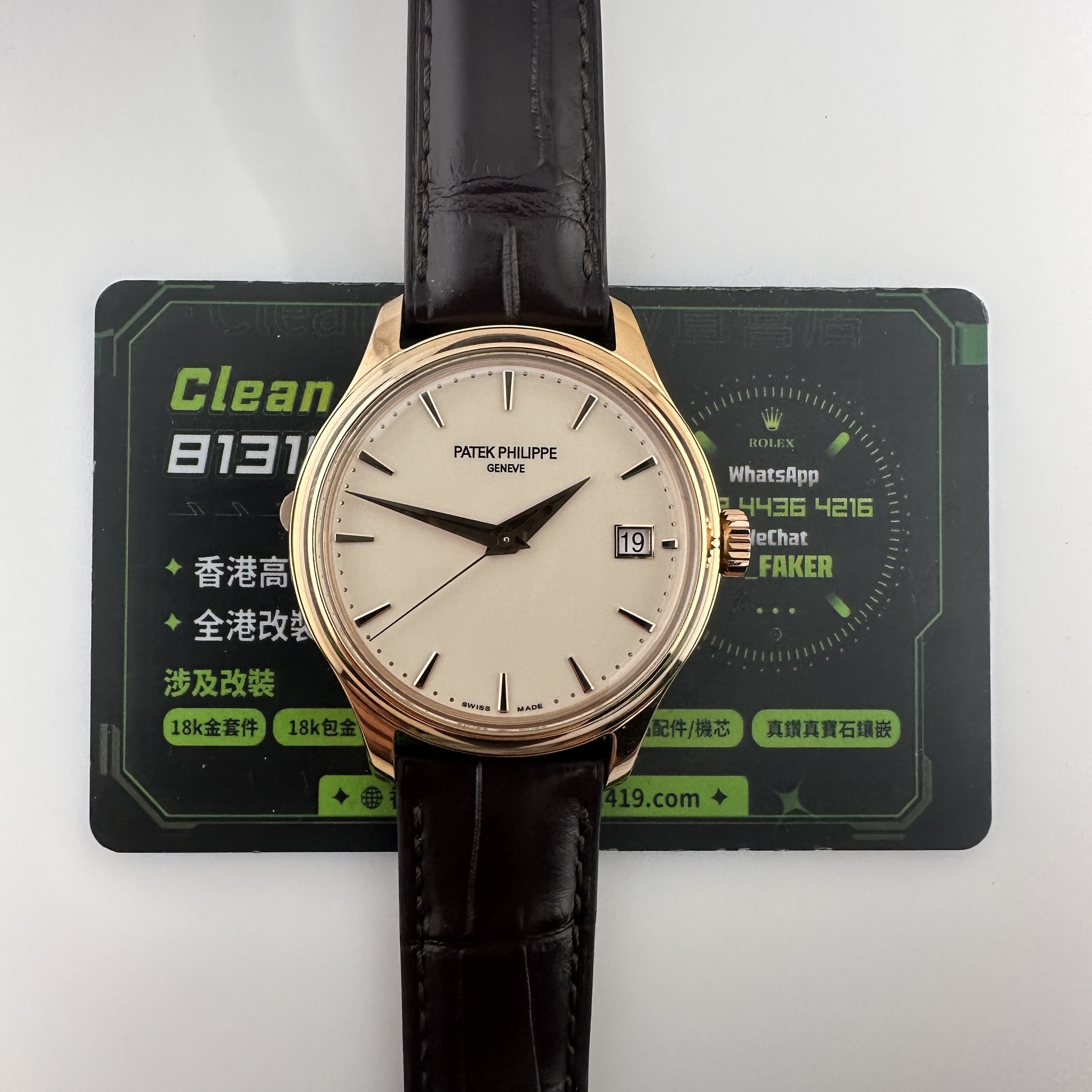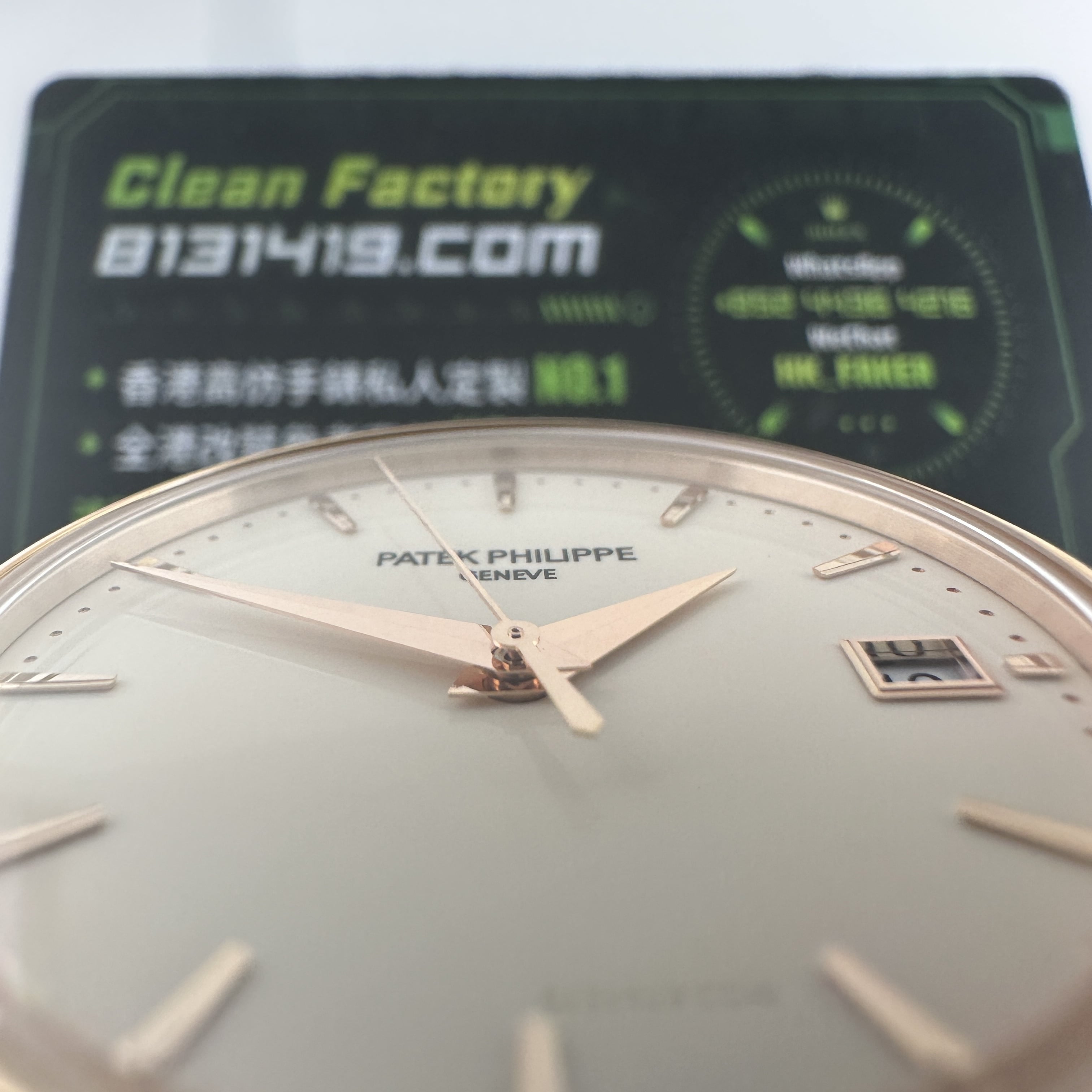 錶盤呈現米白,並非全白色效果,由於古典錶並未涉及到夜光塗層,盤面時間辨識是通過金屬條丁構造而成.每一個條丁3K廠PP5227均是獨立打磨,拋光,做到質感同步原版一致.其次是盤面並未涉及到複雜的功能,調校時間以及日曆.印刷字面居中,雙數單數都是符合原版品質需求.最後則是底蓋部分3K廠古典錶同步原版一致配置將軍蓋,精度神似一面鏡子,同時可以看到背透式的Cal.324機芯.