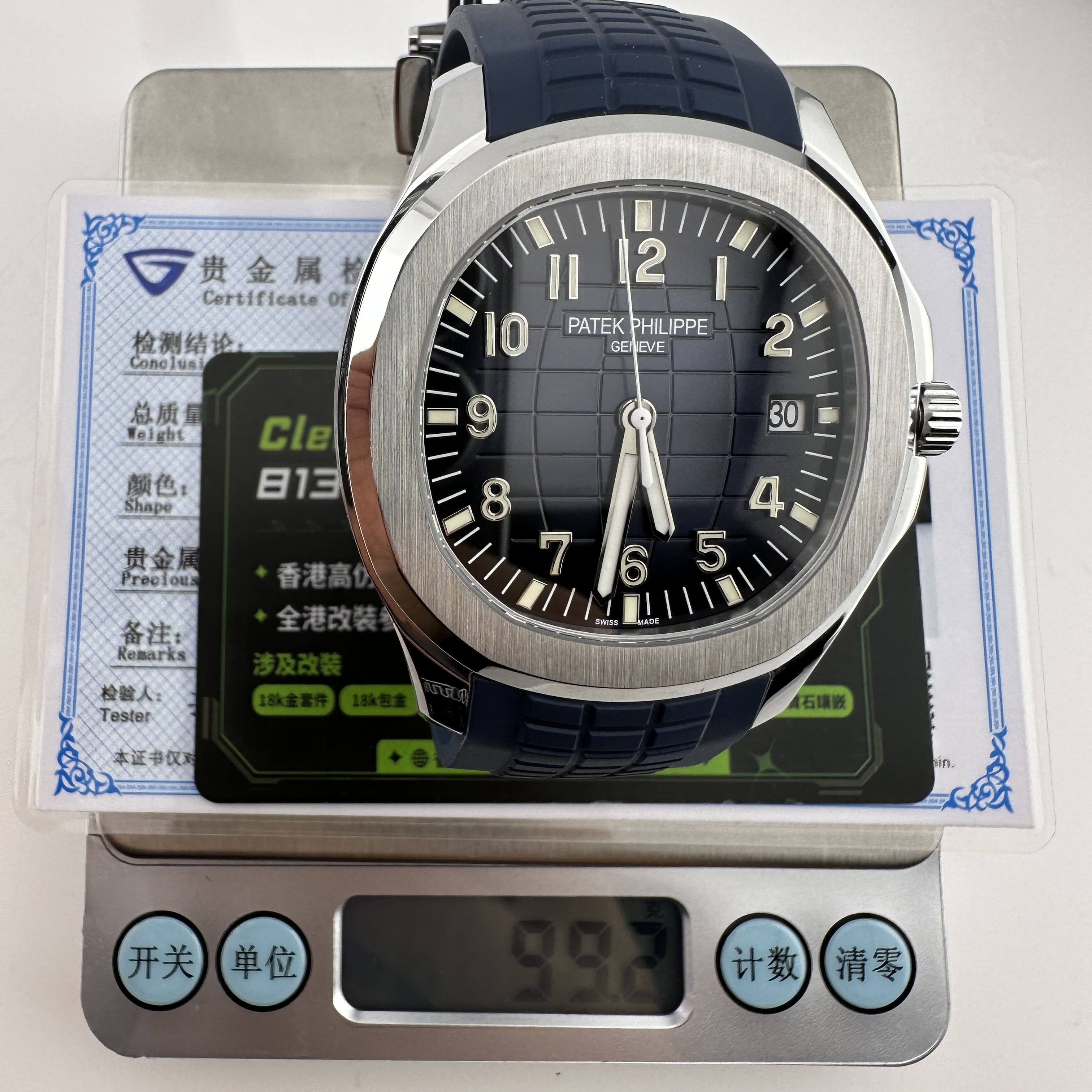 3K廠百達翡麗PP5168G-001白金藍手雷滿配改裝升級18K包金案例,整錶尺寸42.2mm.在高仿市面上重新定義一隻頂級"手雷"的像真度是需要通過後期改裝升級才可以達到接近原版的品質.其實高仿手錶改裝並不是"百分百還原",只是在原有的基礎上做到最極致的還原度,最起碼是達到非專業人士無法辨別真假情況下,才是頂級特征,而"一眼假"往往出自廠貨未涉及改裝前,這也是整個高仿市面上存在的"弊端".