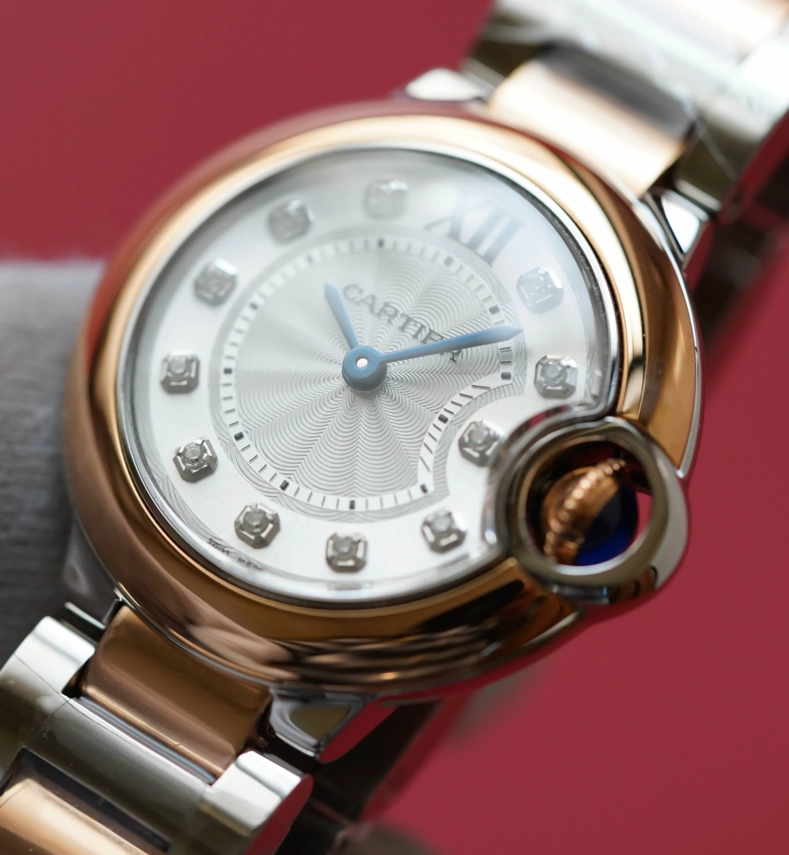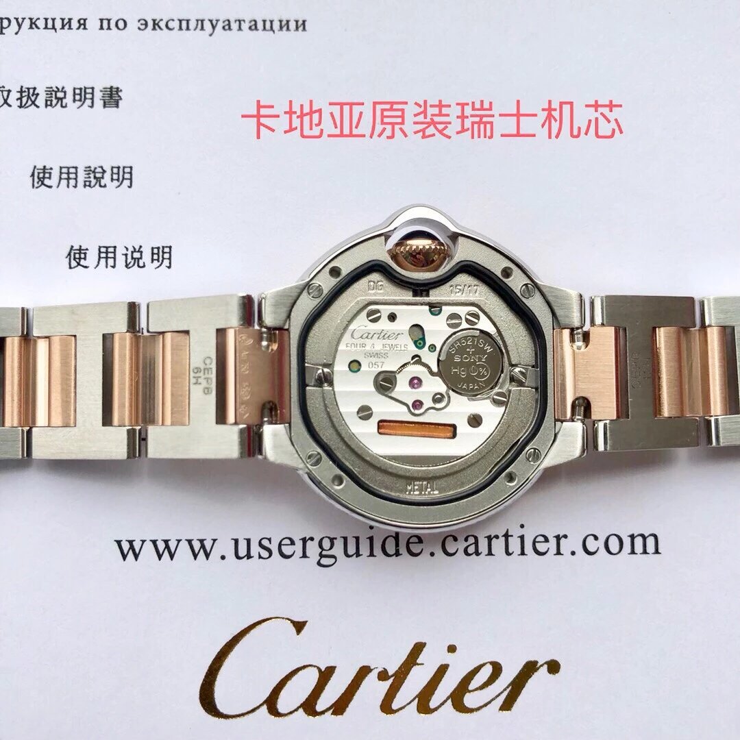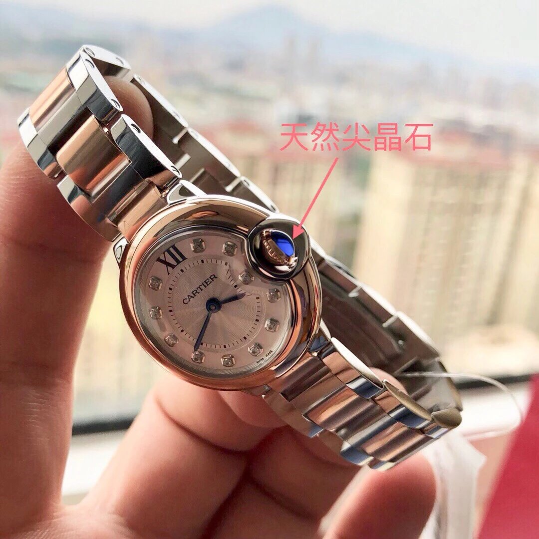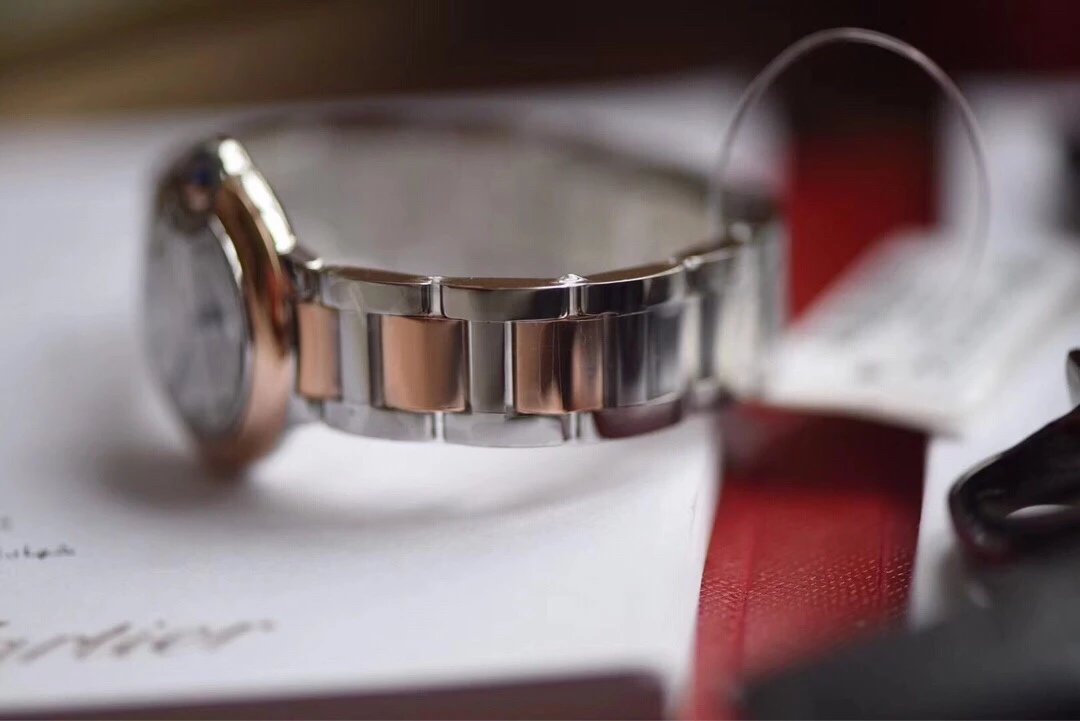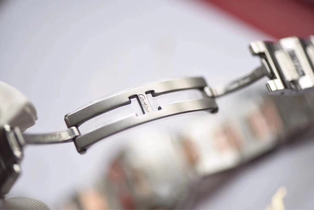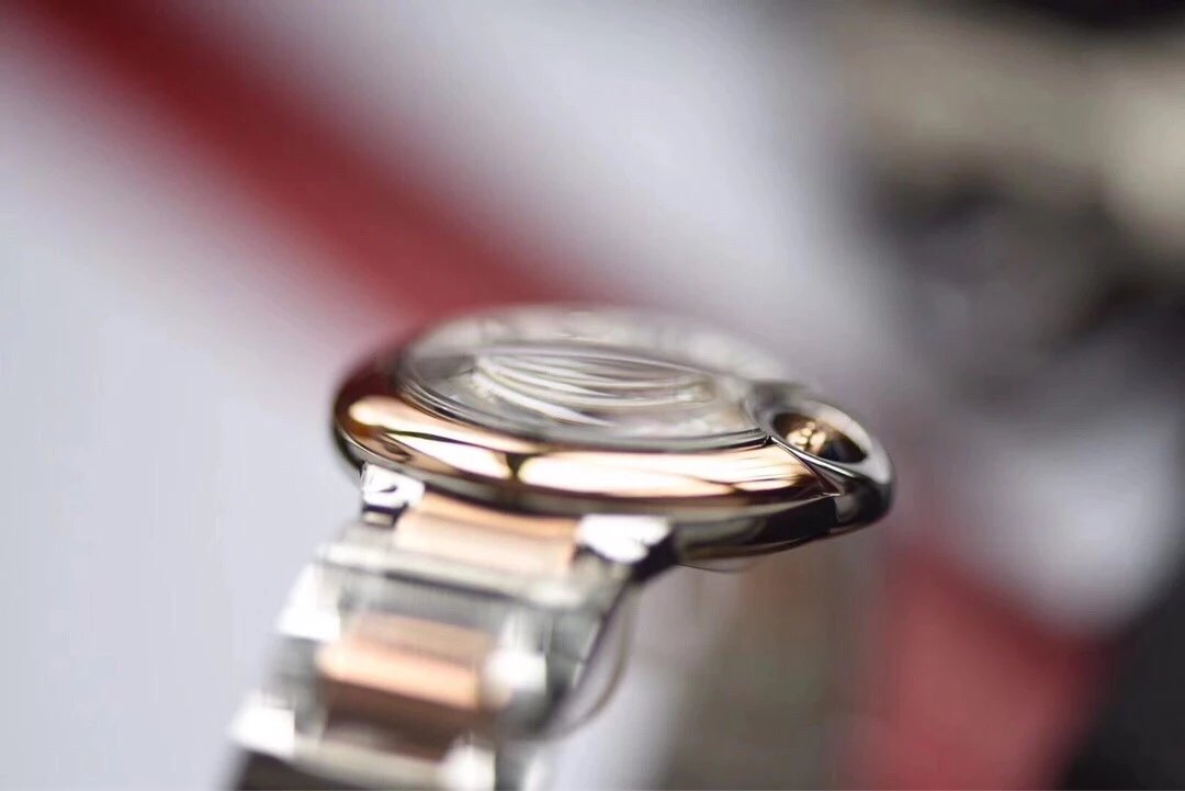 表殼鏡面:V6廠卡地亞藍氣球V5版本的鏡面一樣採用藍寶石鏡面,這一點在目前的複刻表上已經得到廣泛的應用,原因在於藍寶石鏡面具有極高的通透性,以及僅次於鑽石的硬度,耐磨耐劃的性能沒的說。這裏要強調的是,藍寶石鏡面的魚眼紋效果也是極高的還原了原裝。
