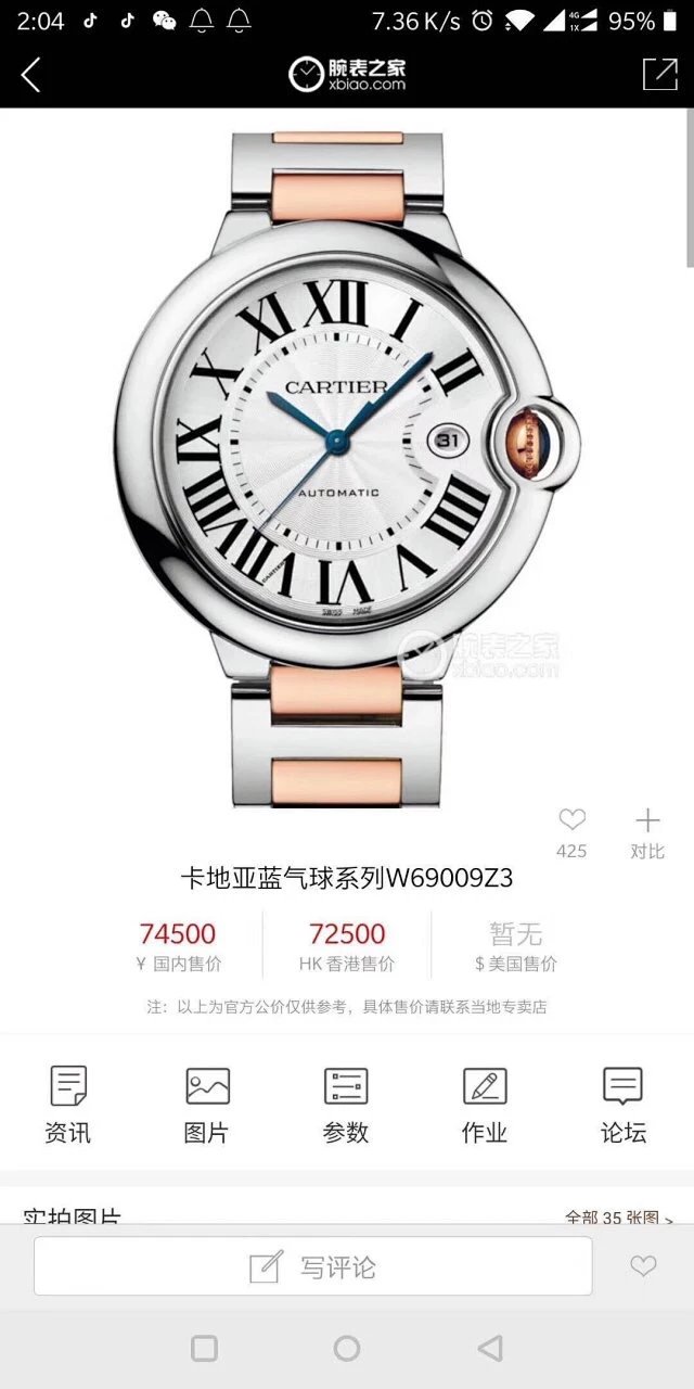 V9廠卡地亞藍氣球系列W69009Z3包金玫瑰金鋼帶男士機械表