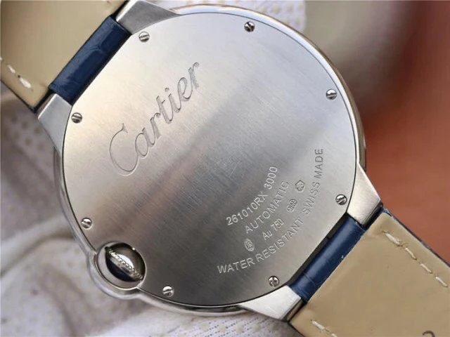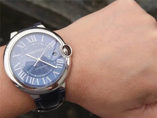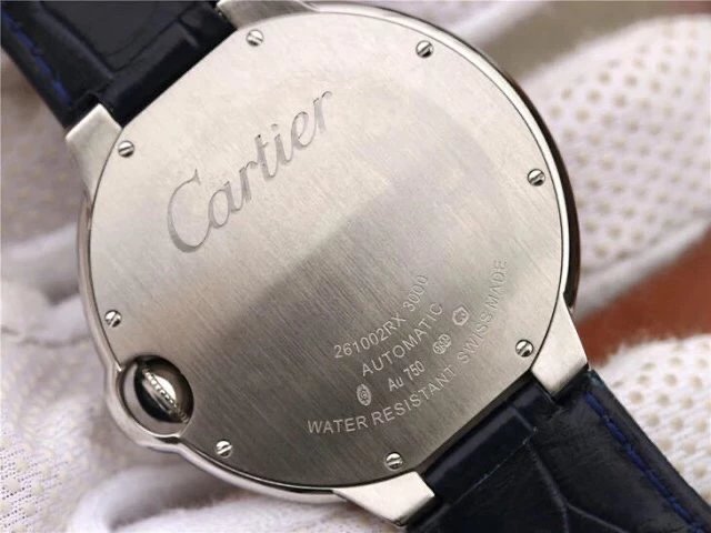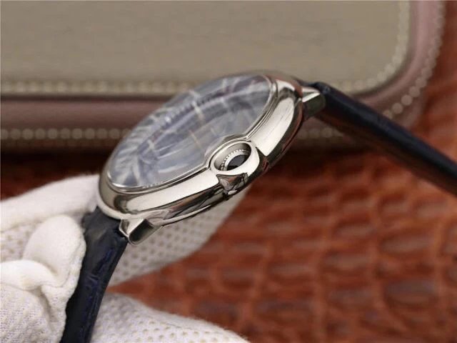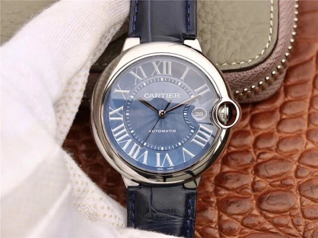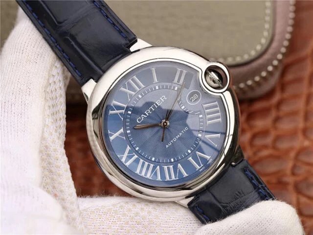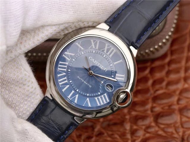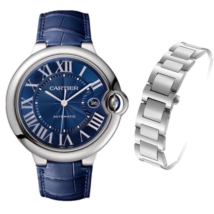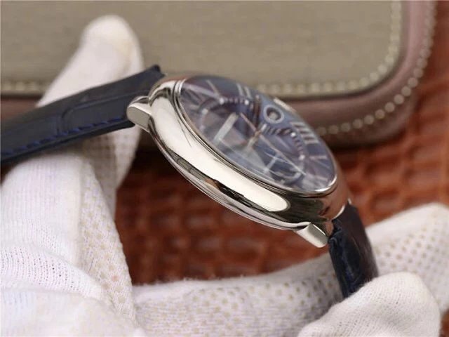 V9廠卡地亞藍氣球系列白金藍盤鱷魚皮錶帶男士機械手表