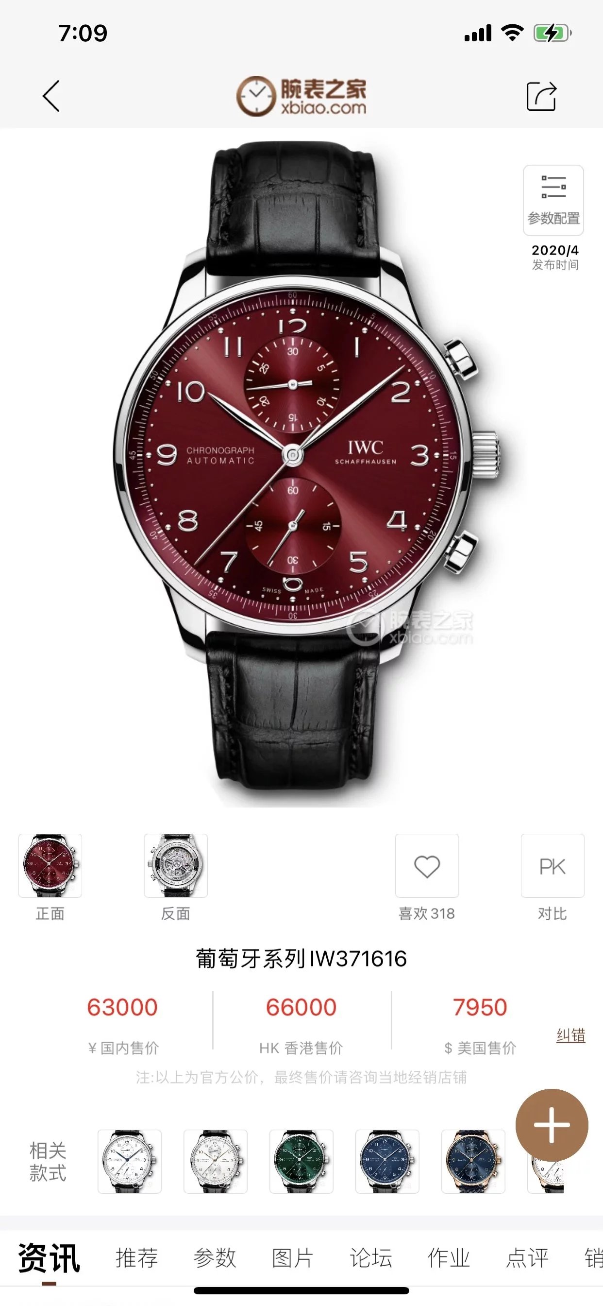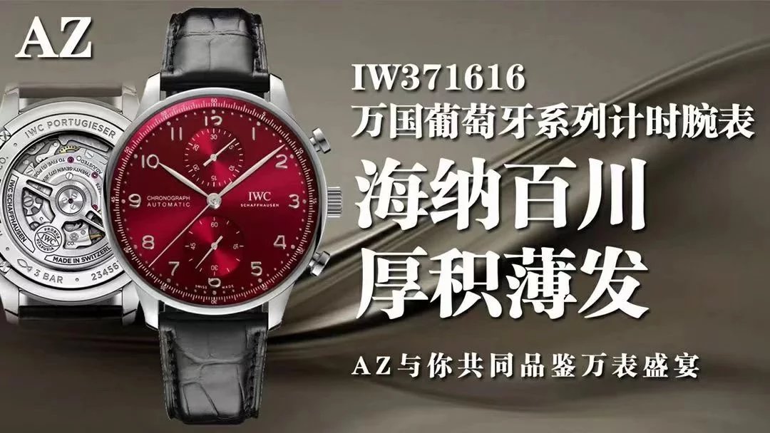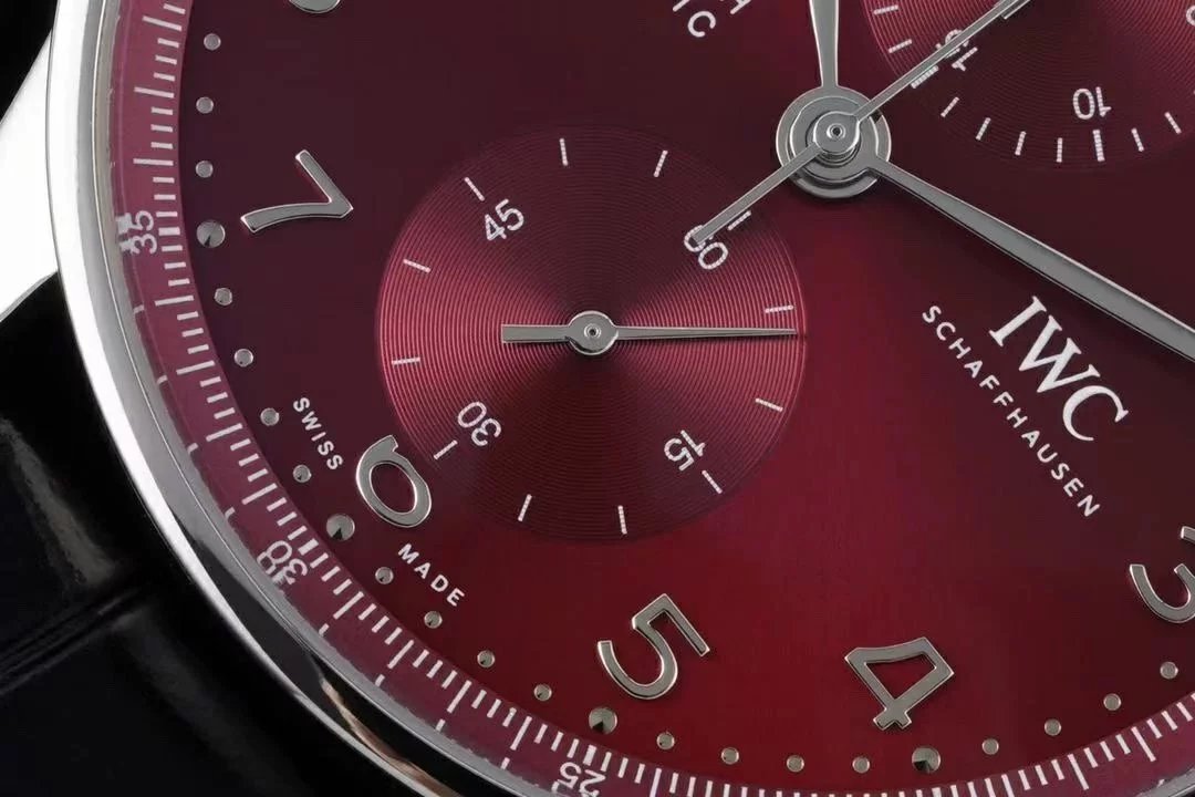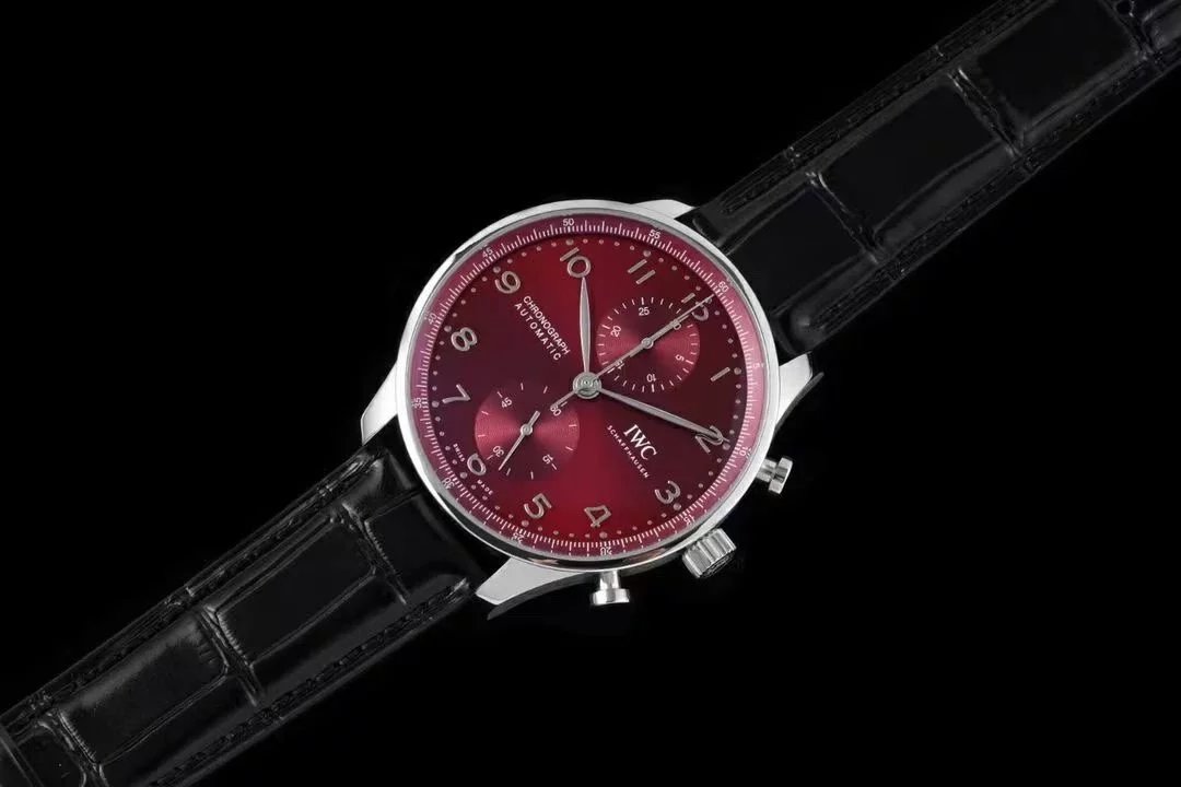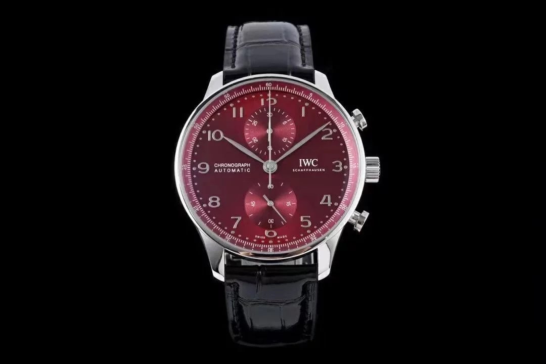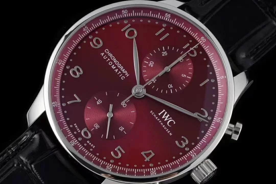 萬國葡萄牙系列葡計iw371616桃紅背透皮帶男士計時機械手表 萬國新款