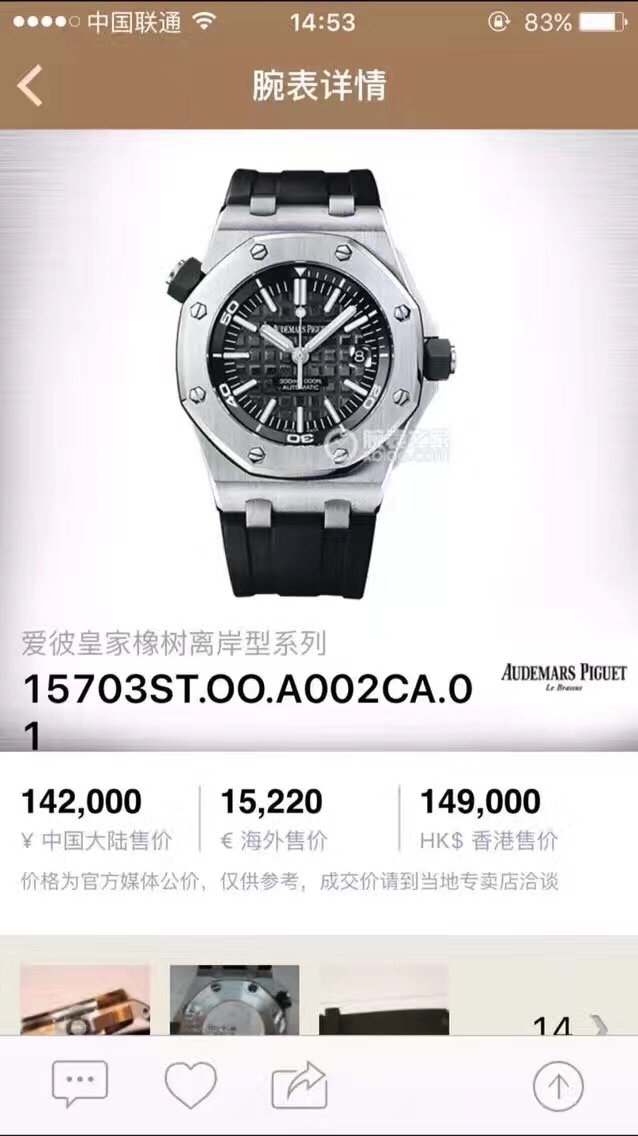 皇家橡樹離岸型 ?ap diver AP15703 ?V10歷史上最成功的還原 集合幾大優點 走時最穩定 防水最牛逼!放大鏡還有藍光防炫玻璃!真正的牛貨!