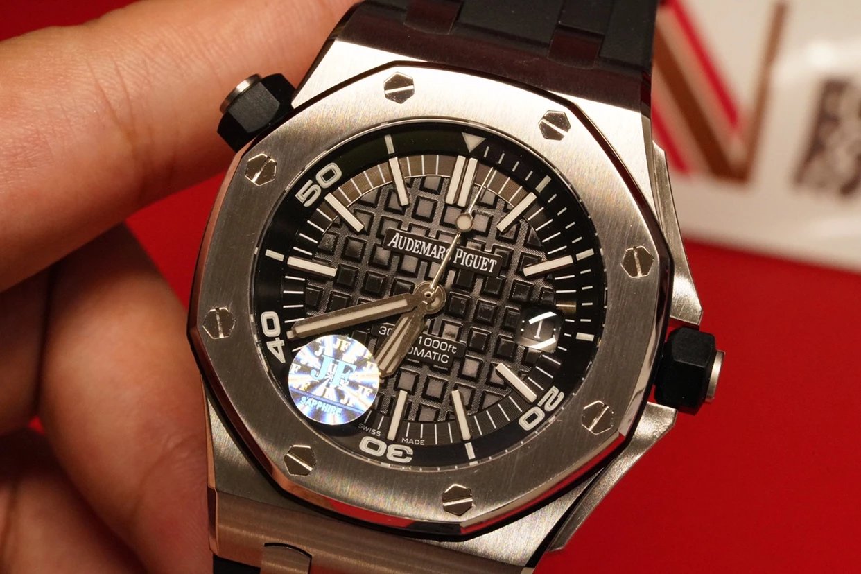 15703做為JF廠的標杆利器,此次無論是日曆字體的修正還是升級頭粒可動,都是可以看出JF廠製錶師傅的用心,而且這次JF廠也推出了消失已久的鋼帶款,更是給表友們多一個選擇。V10版的ap15703無論是從外觀的做工,抑或是機芯的穩定性,都是非常不錯的。如果您缺一塊潛水表,那顏值爆表的15703不失為一個不錯的選擇。