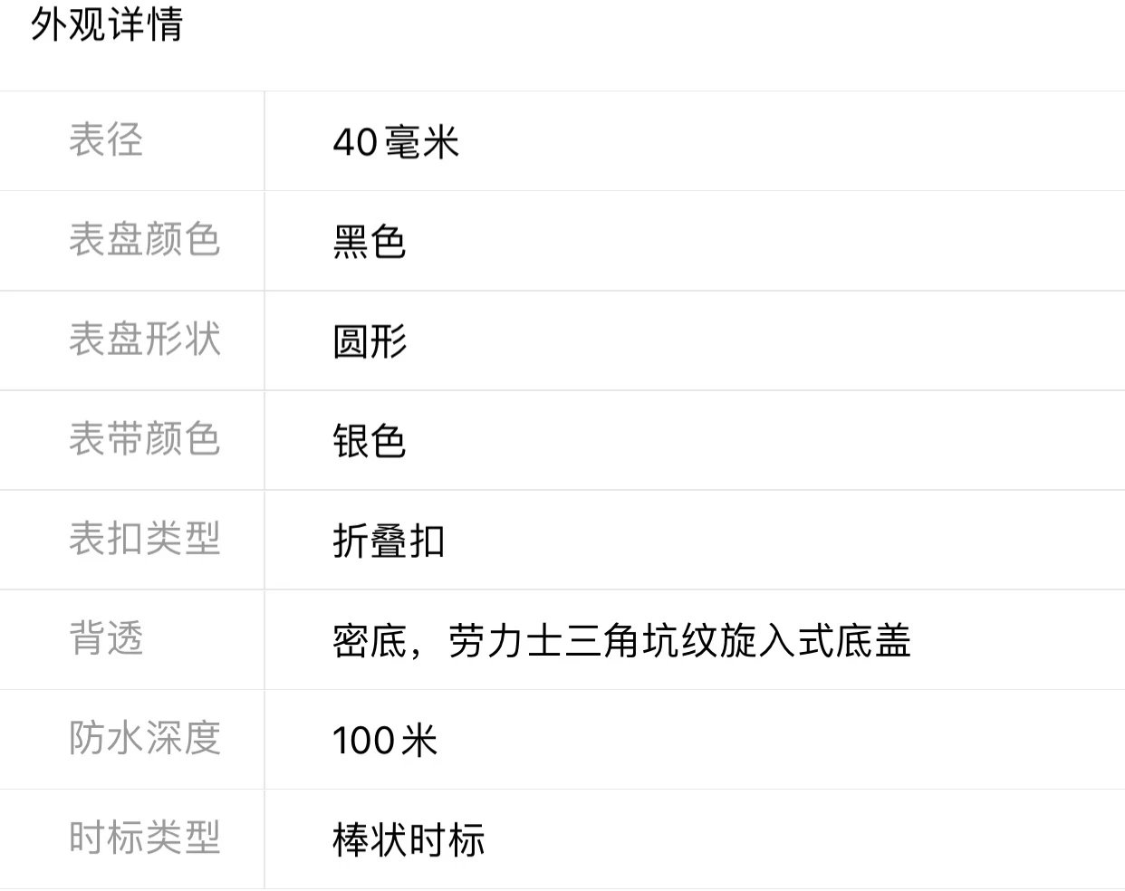 | [手錶直徑] | 40毫米 |