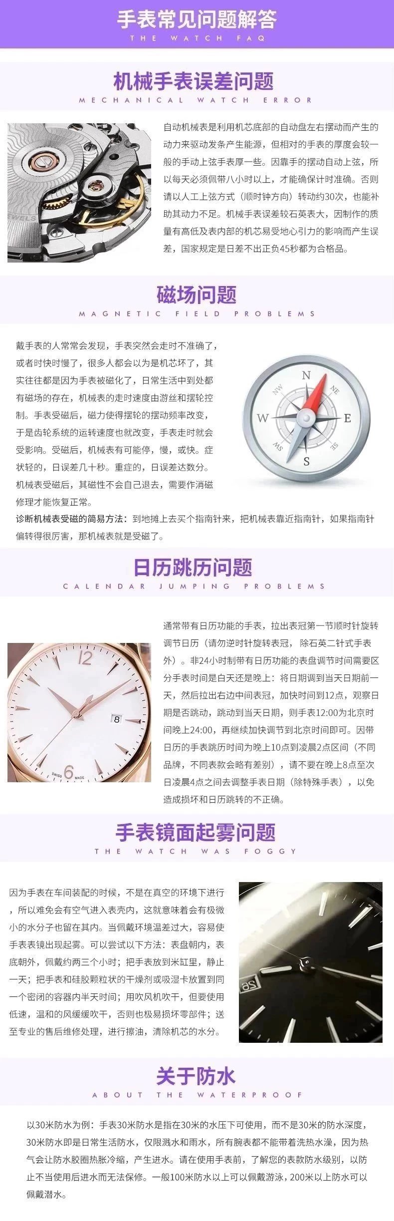 我們機芯終身免費保修有問題直接聯繫我們(石英十年免費更換電池)