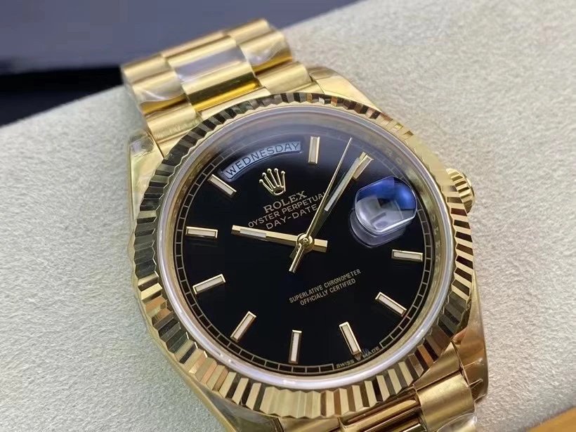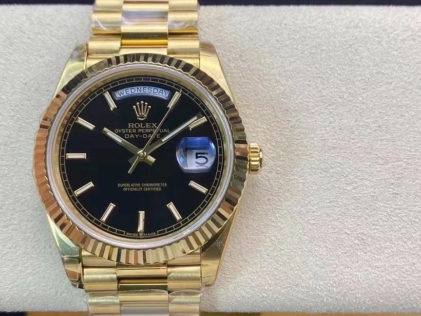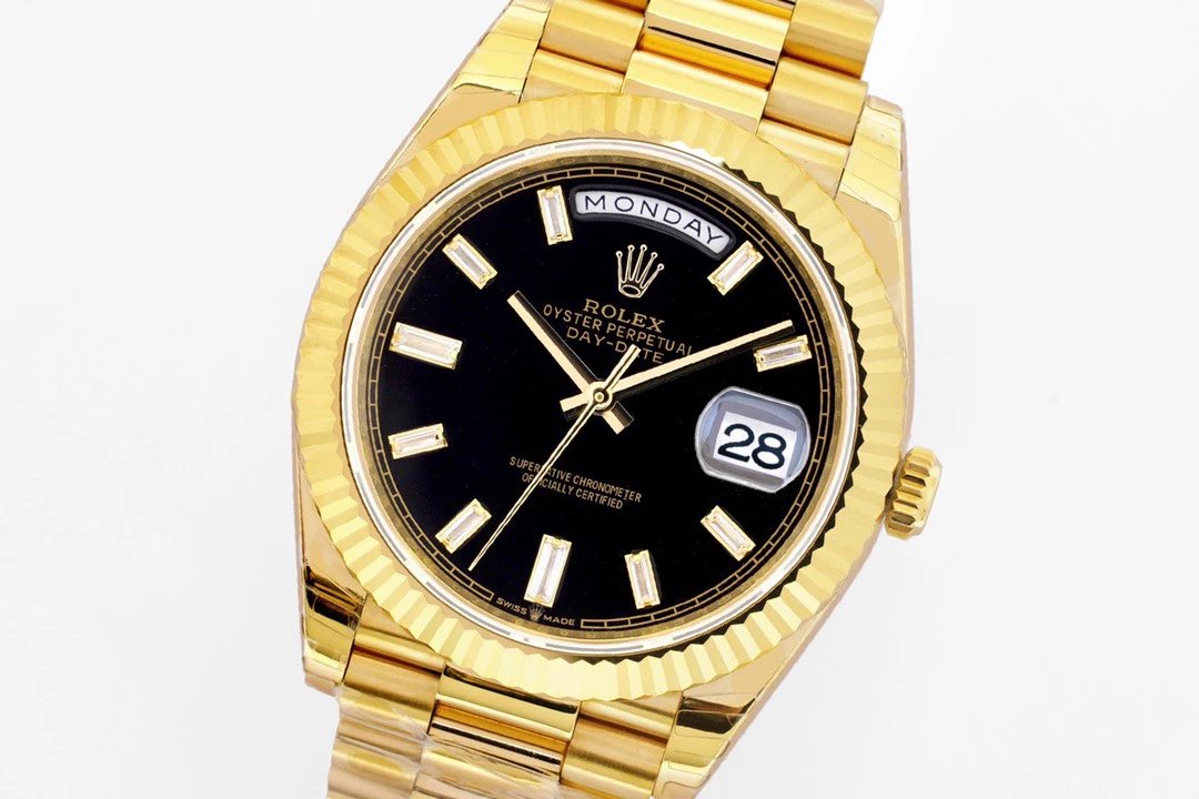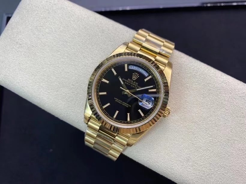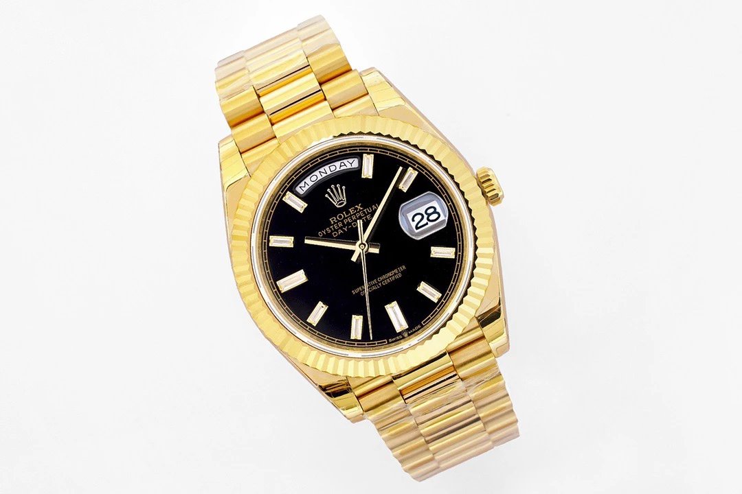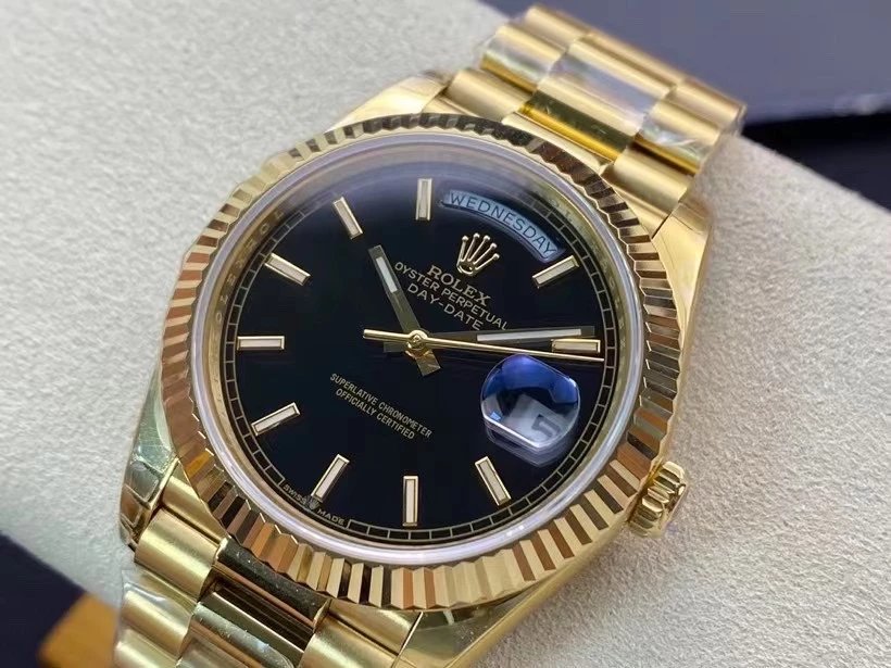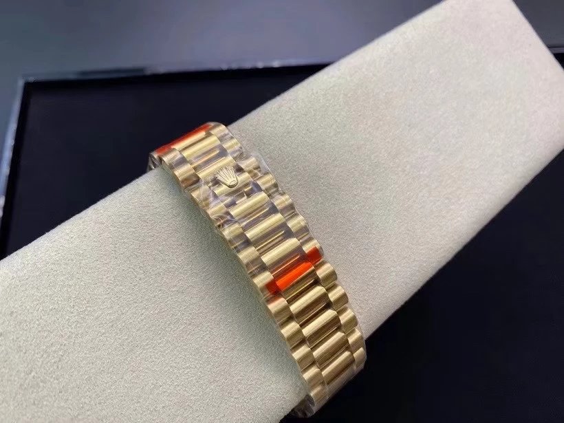 EW Factory力作V2升級版 勞Rolex星期日志型40mm終極版 搭載原版3255自動機械機芯228239系列腕表,40毫米直徑,研發耗時16個月!原版1比1開模。 重點升級了以下幾個要點: 1.表殼直徑與2019最新版3255型系列一致40毫米。 2.錶帶頭粒與原裝一致,5件拼裝,難度非常高,錶帶與表殼交錯型無縫連結。 3.把頭皇冠處下方修改為與原版一致的兩個圓點。 4.表扣與原版一致裏面加裝了彈簧,字體大小工藝和原裝一致。5.表殼側面與原版一致增加二維碼防偽、底蓋有驗貨二維碼。6.表殼與錶帶連接處的殼身刻有與原版一致的型號數字228239。7.表的內影圈刻上了與保修卡一致的產品流水數字, 8.(市面上真正的原裝一比一星期日曆型)EW誠意之作 歡迎各路表友品鑒!