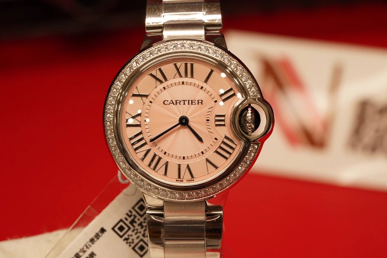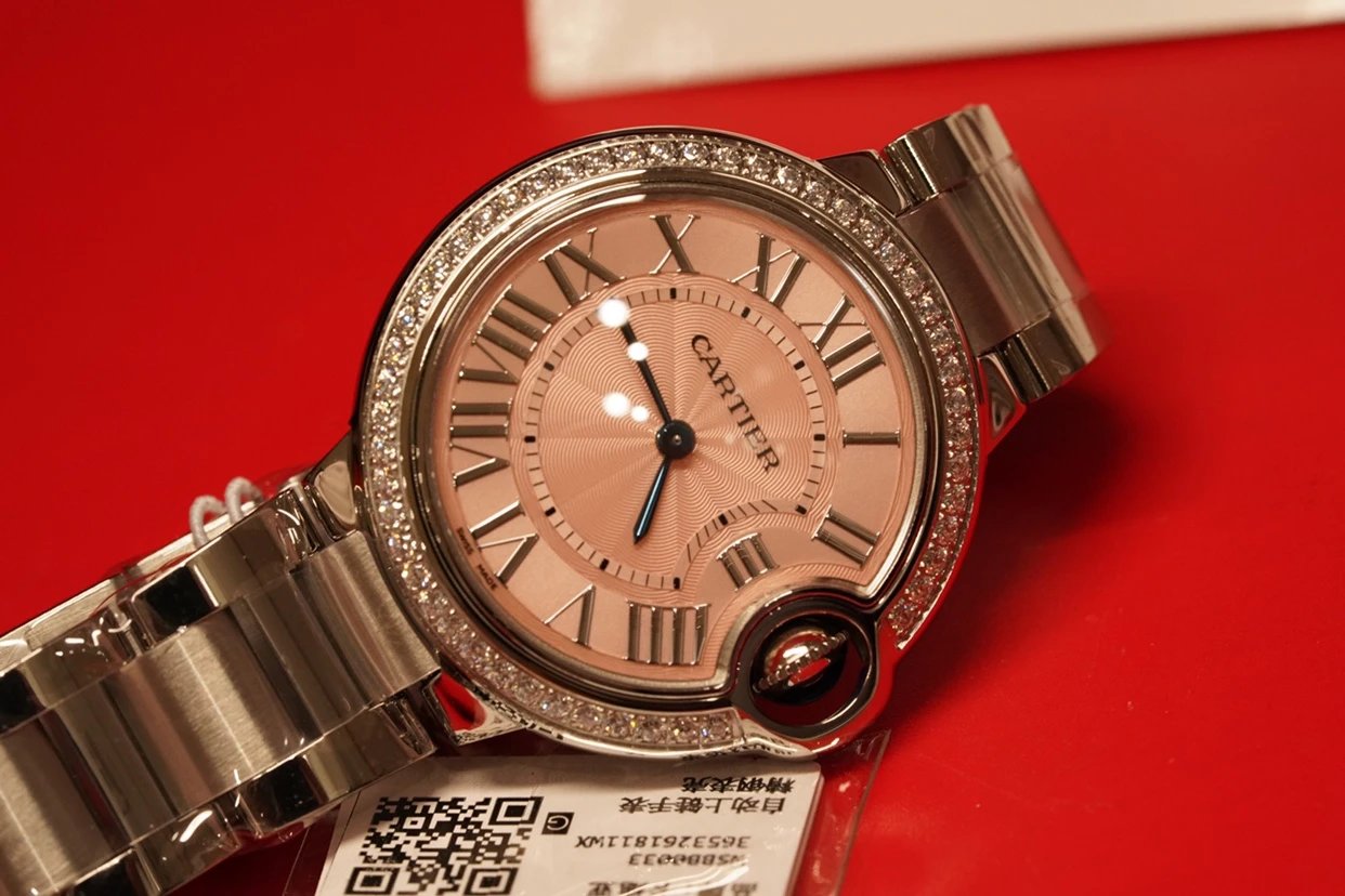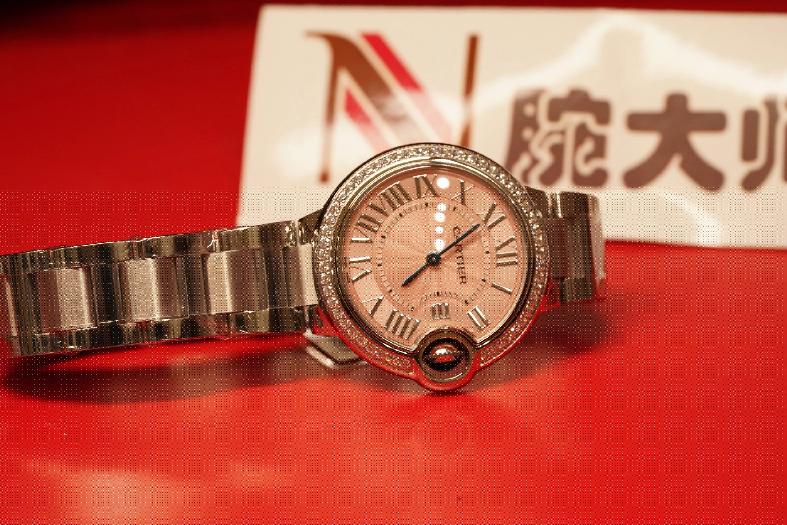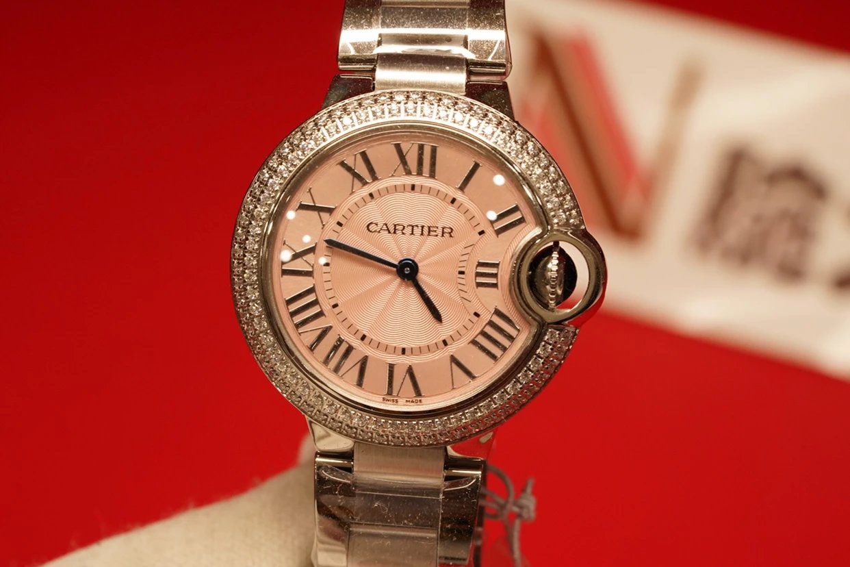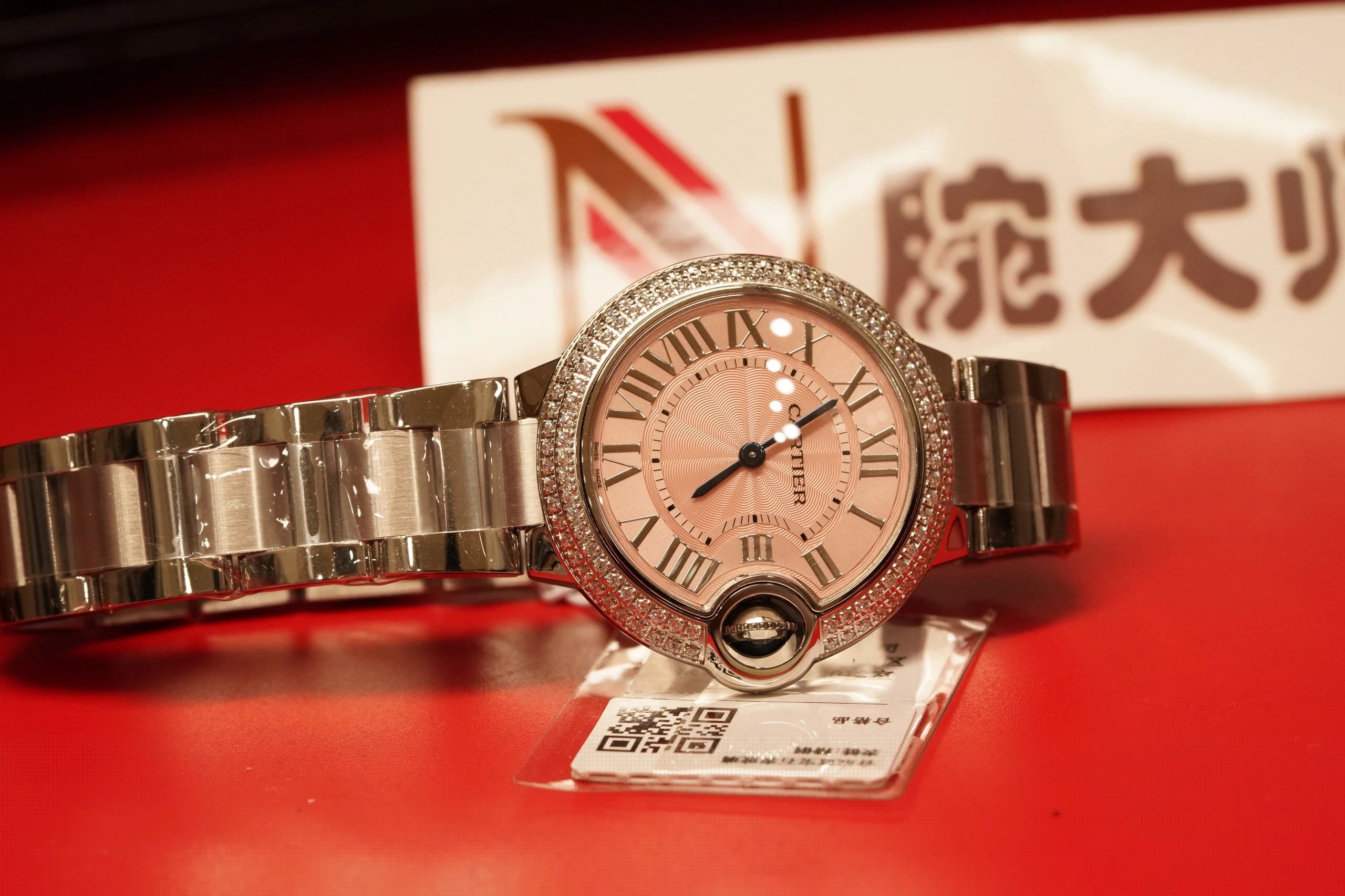 V6臻品:最高版本稀有卡家藍氣球系列wsbb0047腕表(精鋼-粉色錶盤手工鑲嵌美鑽-鍍銀珠光扭索雕紋錶盤,劍形藍鋼指針,石英,33毫米)鑽石材質是鋯石